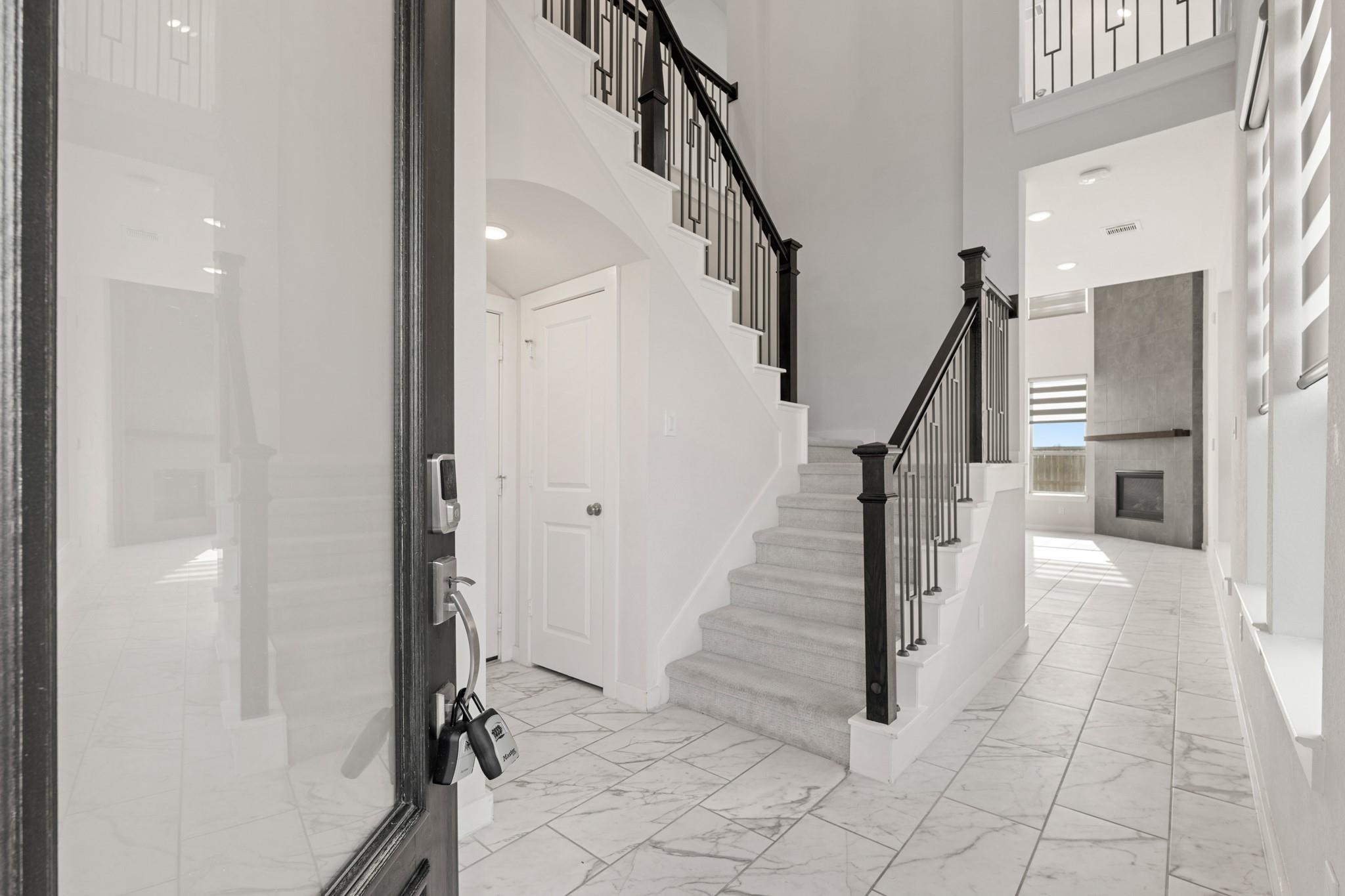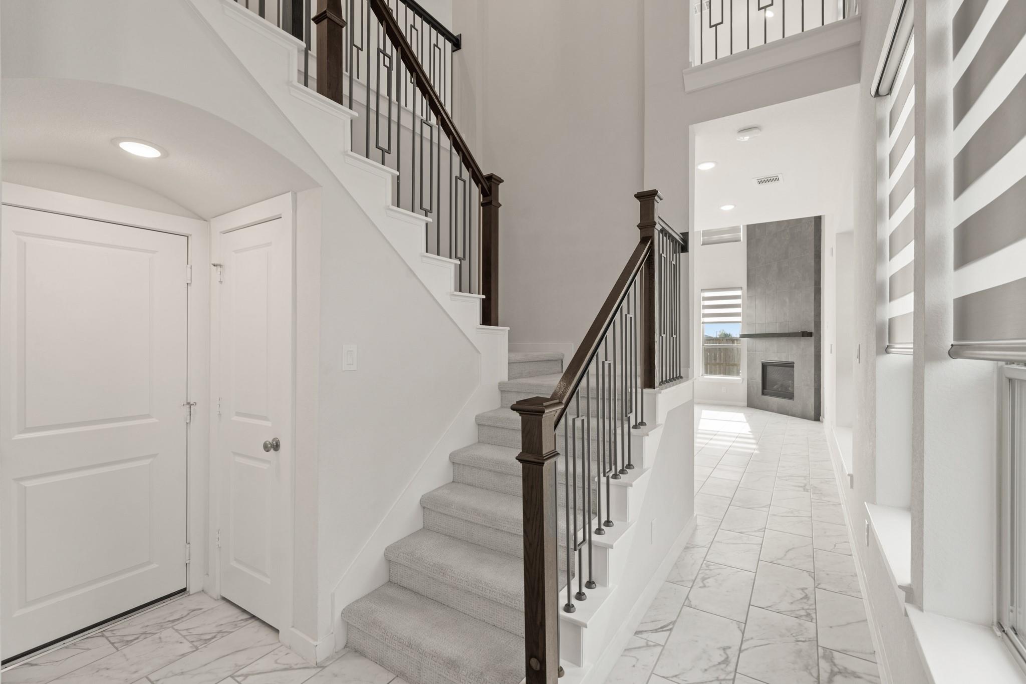 InteriorFireplace:1/Electric FireplaceFloors:Carpet,TileCountertop:quartzBedroom Desc:1 Bedroom Down - Not Primary BR,2 Bedrooms Up,3 Bedrooms Up,Primary Bed - 2nd FloorHeating:Central GasCooling:Central ElectricRange:Gas CooktopIce Maker:NoOven:Convection OvenMicrowave:YesCompactor:NoDisposal:YesDishwasher:YesInterior:Fire/Smoke Alarm,High Ceiling,Prewired for Alarm System