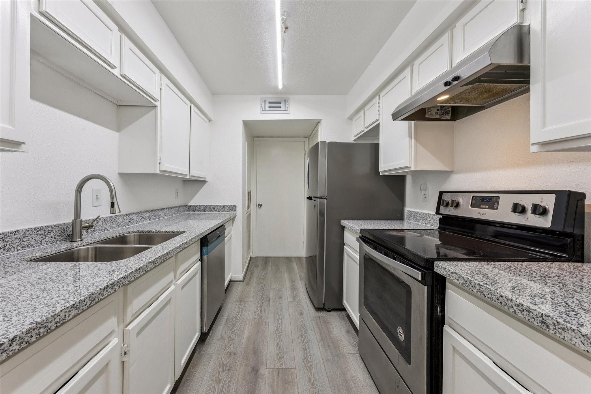 Imagine coming home to a peaceful, gated community where everything you need is at your fingertips. This beautifully updated 2-bed, 2-bath condo offers a warm and inviting living space with fresh paint, brand new flooring, and a cozy fireplace perfect for relaxing evenings. The upgraded kitchen with granite countertops and modern finishes makes cooking and entertaining effortless, while the split floor plan ensures privacy for both residents and guests. Step onto your balcony to enjoy mornings with coffee. With quick access to 59, Beltway 8, and Westpark, you will be just minutes from the Galleria, Medical Center, and Downtown, making your commute simple and weekends full of possibilities. You can move right in and start enjoying the lifestyle this home offers with appliances included. Whether you are a first-time buyer, downsizer, or investor, this condo is more than just a home; it is a lifestyle upgrade in a prime Houston location.