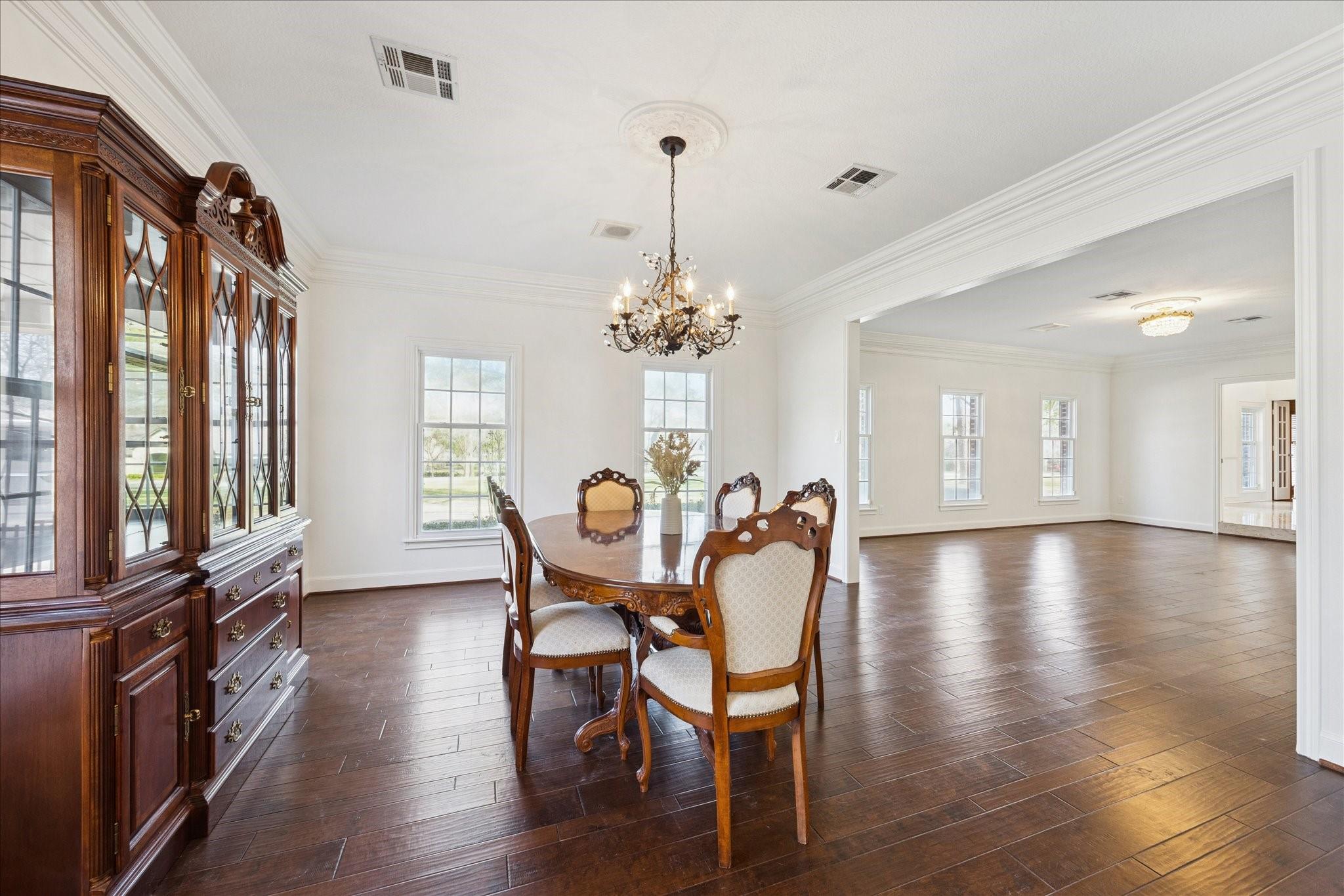 Welcome to this exquisite Georgian estate in Richmond's coveted Rolling Oaks! Boasting nearly 6000 sq ft of living space on 1.88 wooded acres, this custom home is filled with charm and character. From the two-story stone floor entry to the custom woodwork throughout, every detail exudes elegance. Enjoy sunset views from the two-story family room, relax by the oversized pool/spa, or practice your swing on the putting green. With 5+ bedrooms, 5.5 bathrooms, including a private guest quarters, there is ample space for everyone. This home is a rare find, offering a private escape with modern updates and southern charm. You'll only be minutes from Westpark Tollway and Grand Parkway for an easy commute as well.
