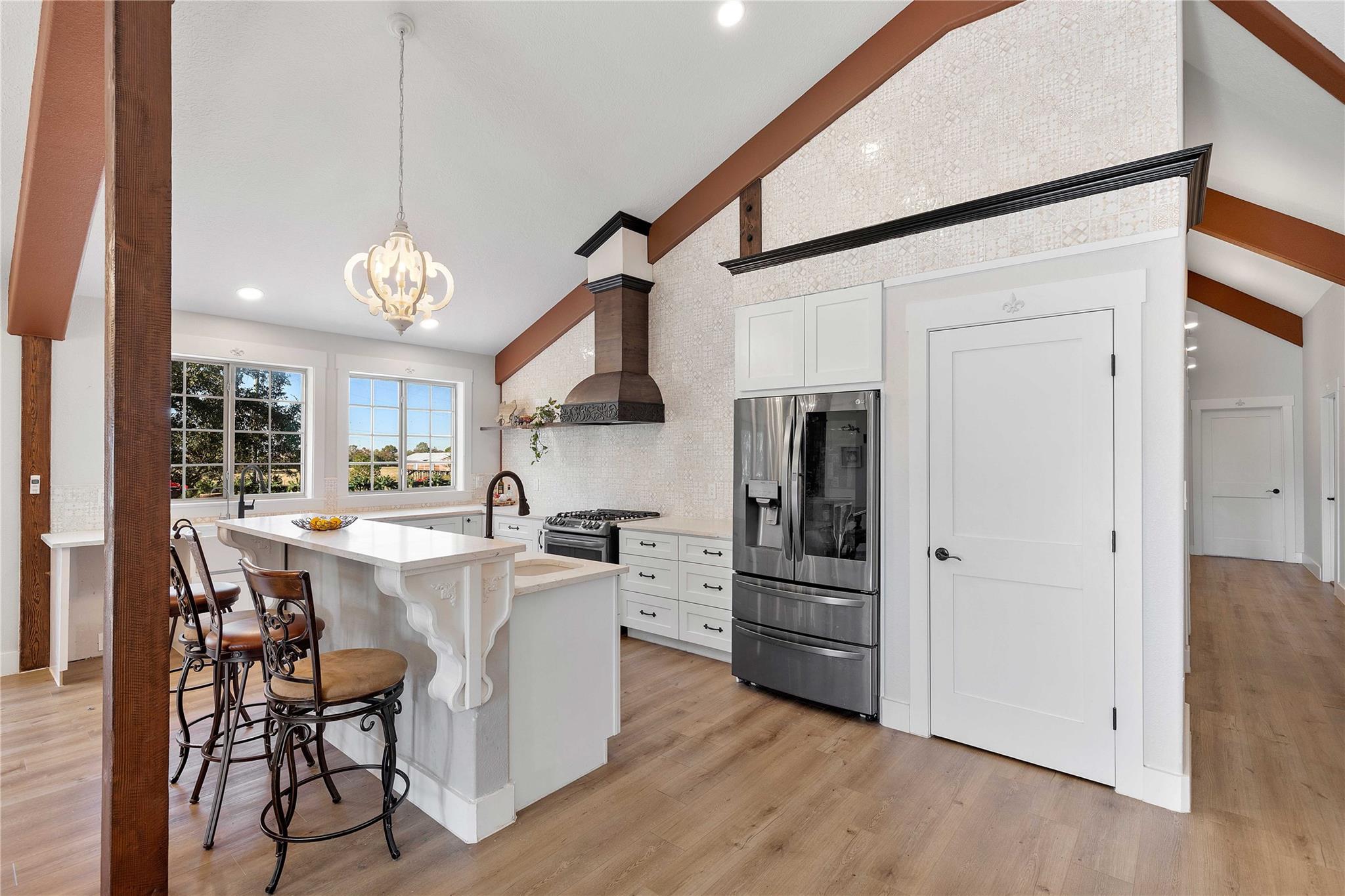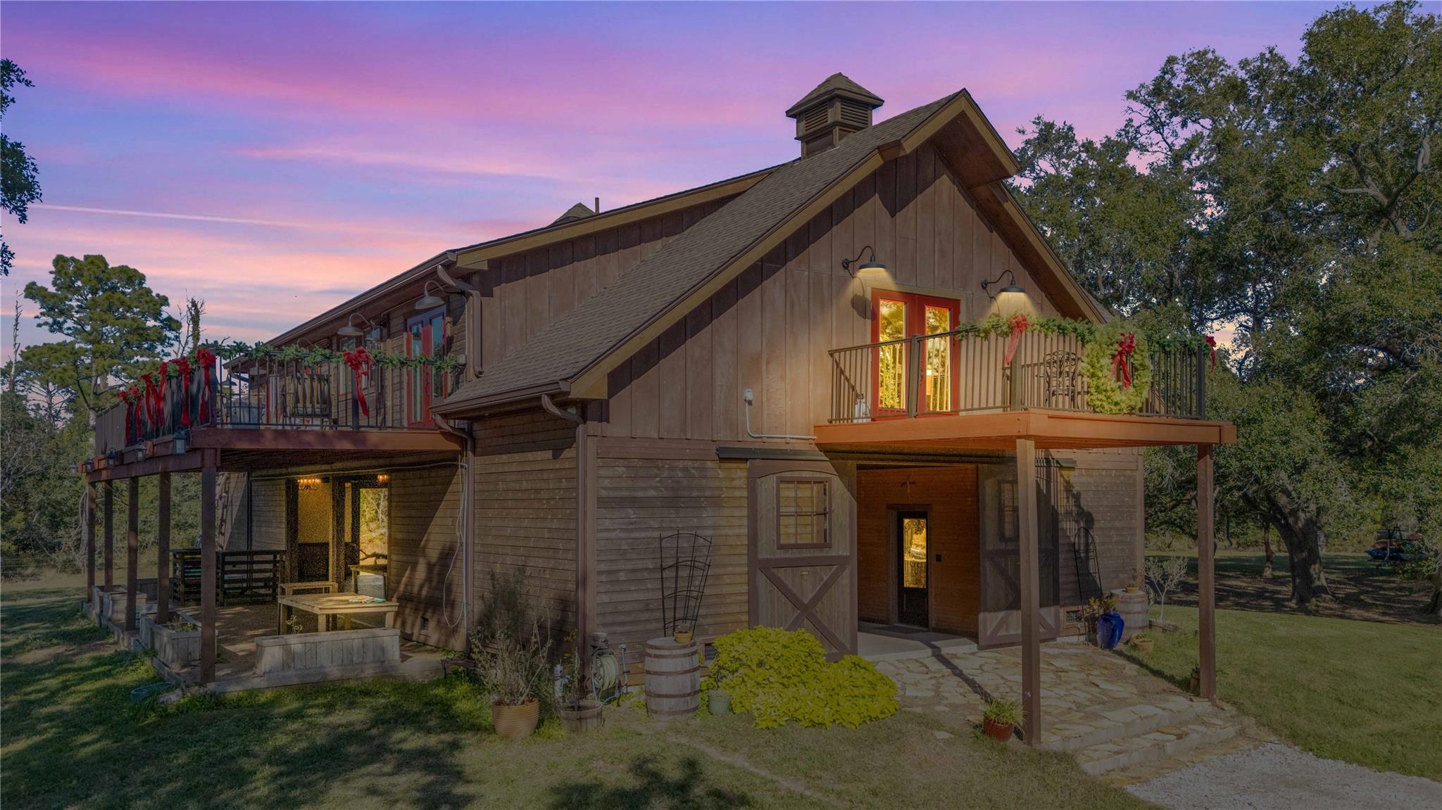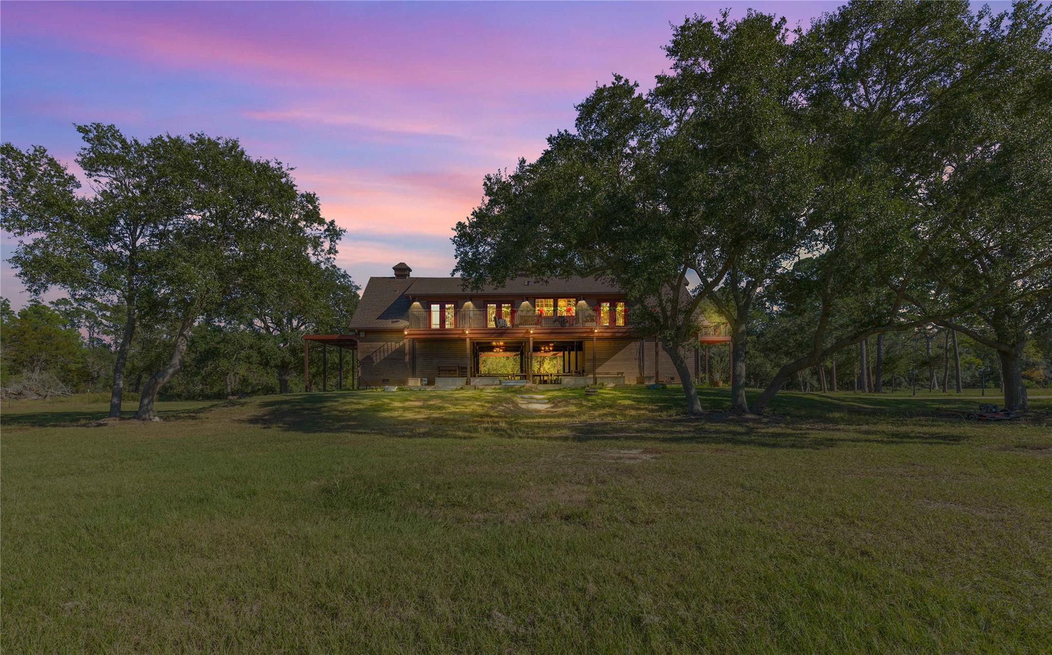Remarkable property offering rare frontage along Double Bayou, with a private, homesite tucked well back from the entrance. Custom-built residence designed with all primary living spaces on the second level featuring five bedrooms, one currently used as a study, and 2 1/2 bathrooms. Thoughtful architectural details throughout. French doors open from the kitchen/dining area, primary suite, and one of the guest bedrooms to a balcony that is nearly the width of the home. A second more intimate balcony is accessible from the living space. Ground level is equally impressive, featuring a grand open view living and entertainment space inviting the outdoors in for the best of natural light, bayou breezes and scenic views. Two half bathrooms are located at ground level as well. Whether hosting gatherings or simply relaxing, this level offers uninterrupted views of the bayou and surrounding acreage, creating a true indoor-outdoor lifestyle.