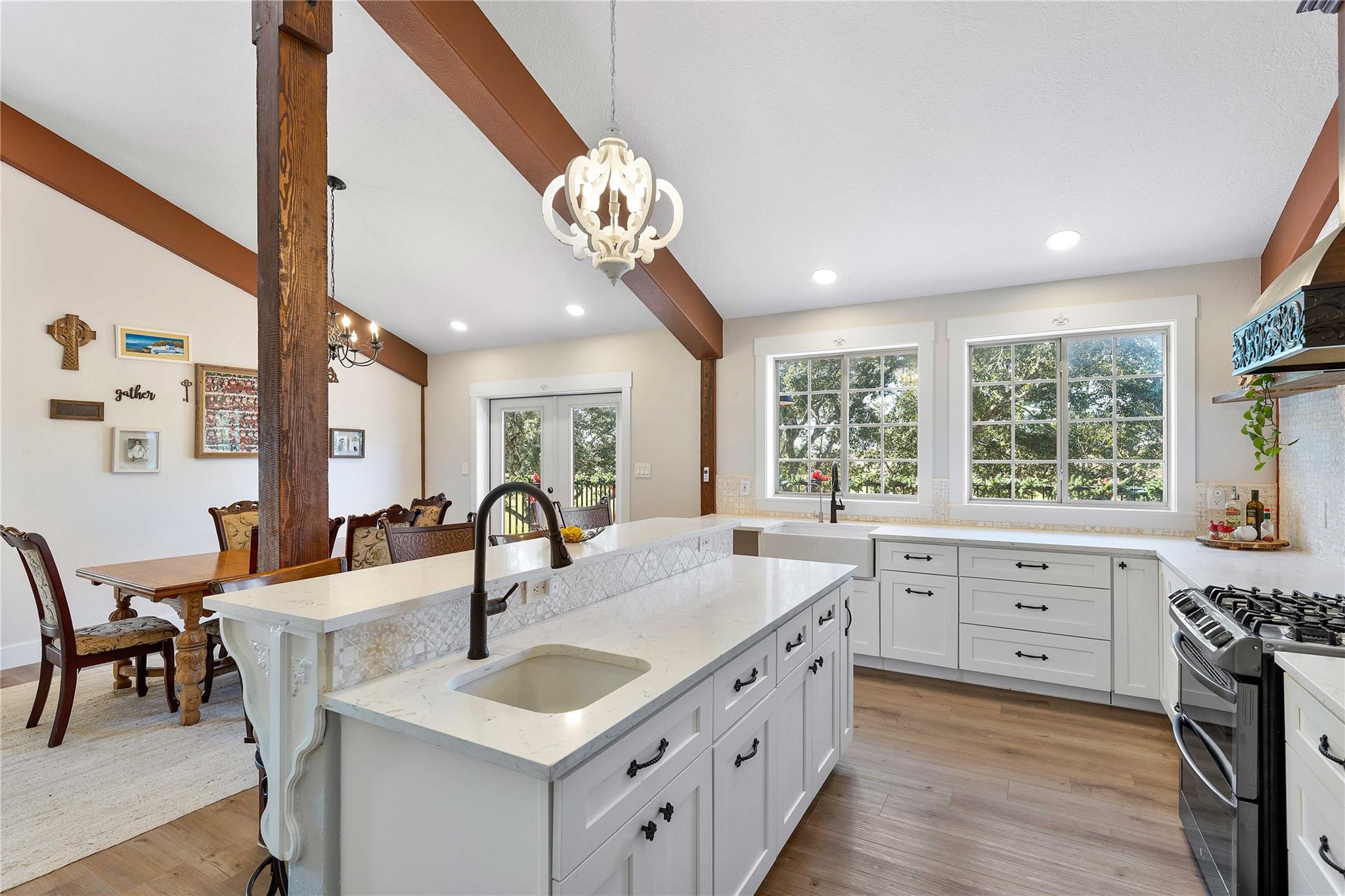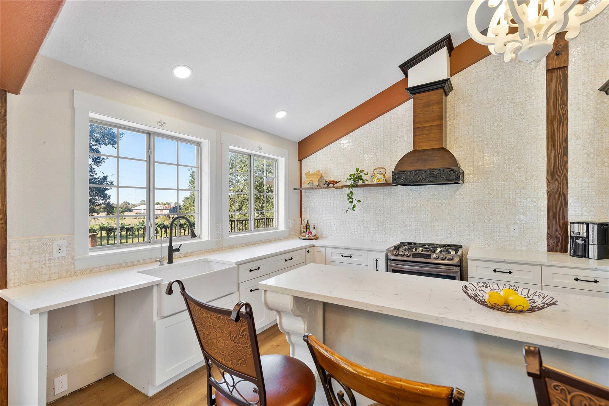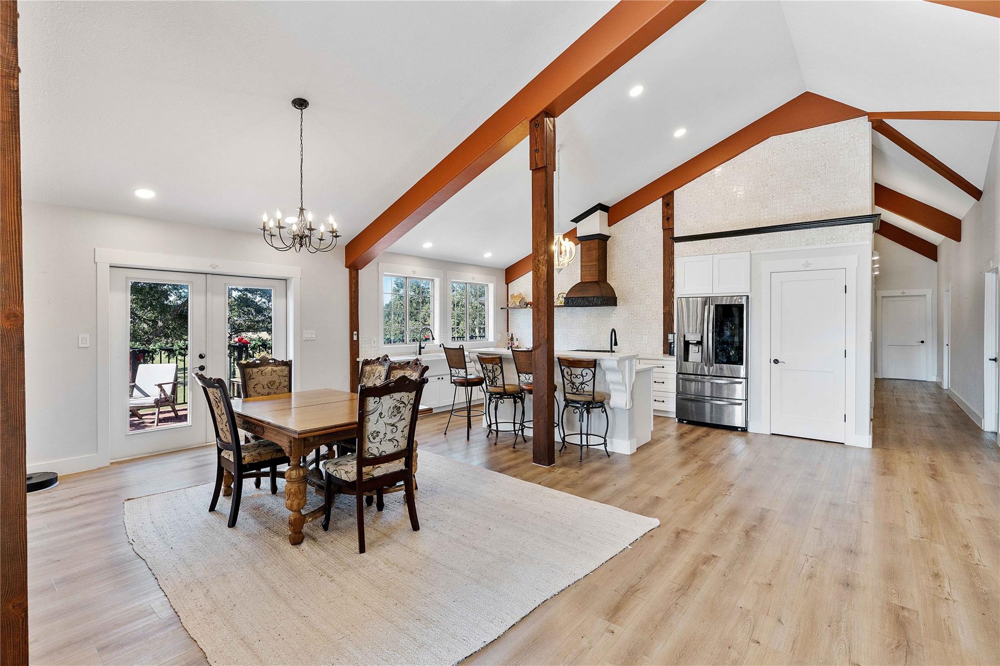 Remarkable property offering rare frontage along Double Bayou, with a private, homesite tucked well back from the entrance. Custom-built residence designed with all primary living spaces on the second level featuring five bedrooms, one currently used as a study, and 2 1/2 bathrooms. Thoughtful architectural details throughout. French doors open from the kitchen/dining area, primary suite, and one of the guest bedrooms to a balcony that is nearly the width of the home. A second more intimate balcony is accessible from the living space. Ground level is equally impressive, featuring a grand open view living and entertainment space inviting the outdoors in for the best of natural light, bayou breezes and scenic views. Two half bathrooms are located at ground level as well. Whether hosting gatherings or simply relaxing, this level offers uninterrupted views of the bayou and surrounding acreage, creating a true indoor-outdoor lifestyle.