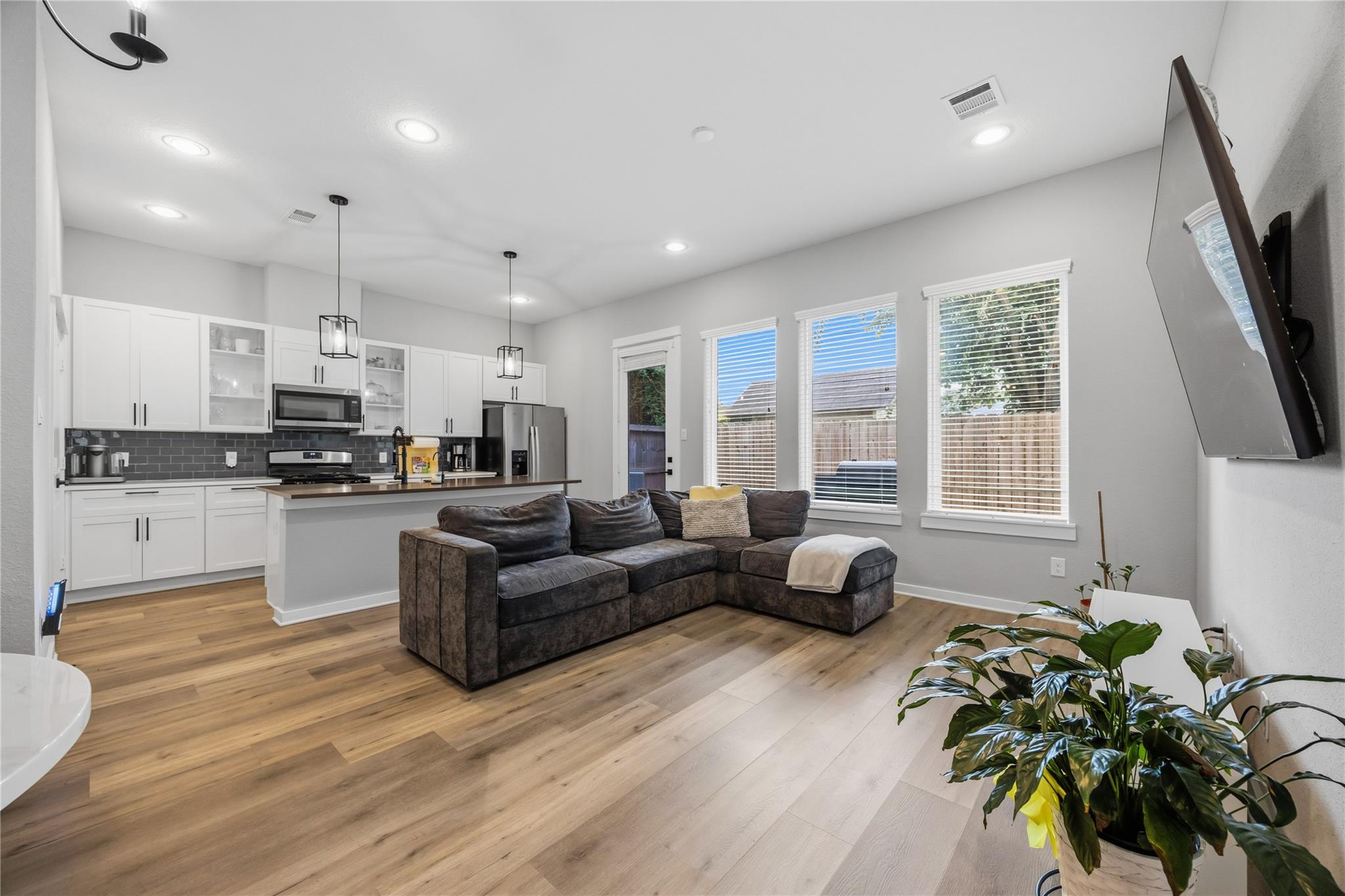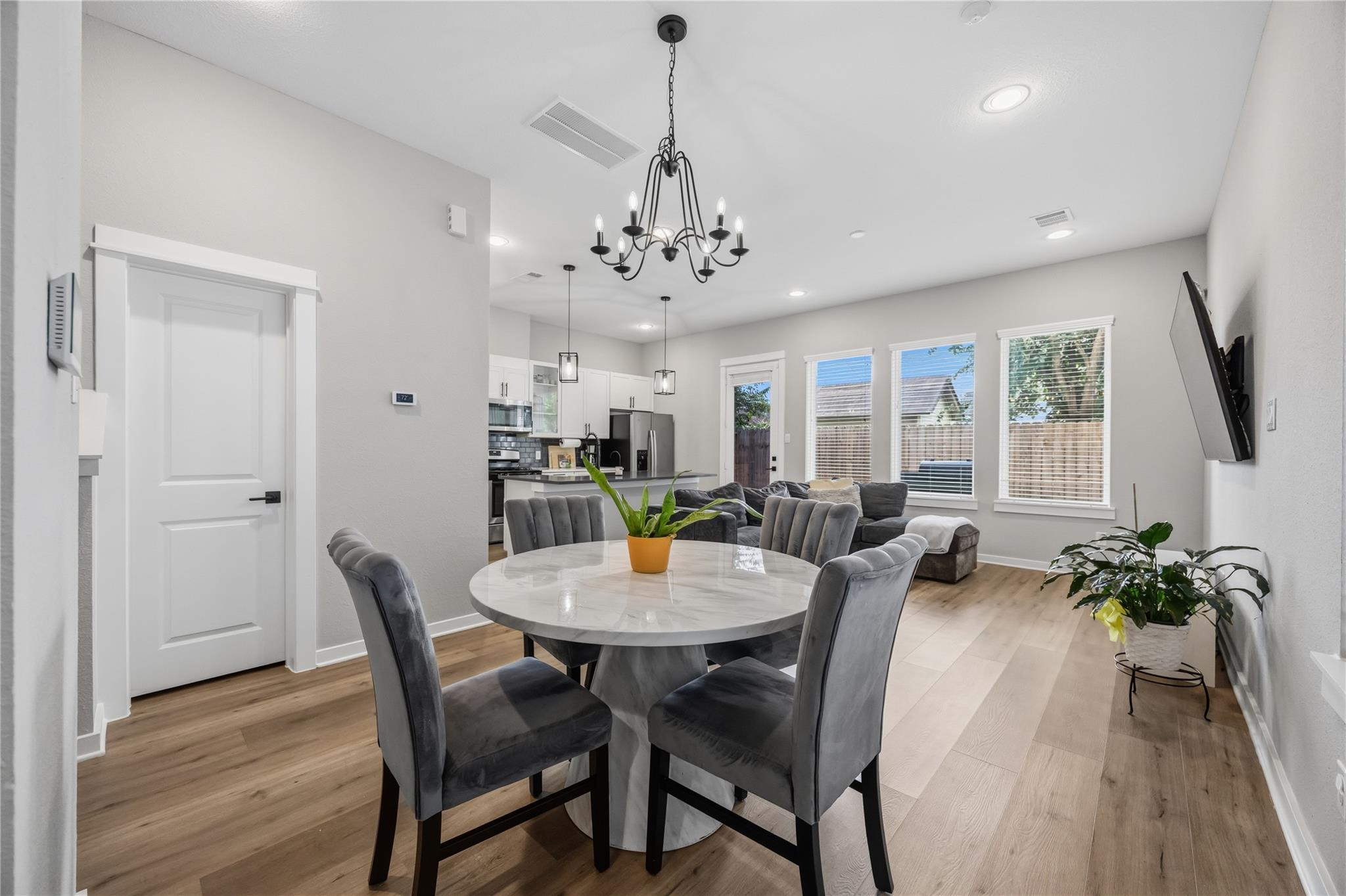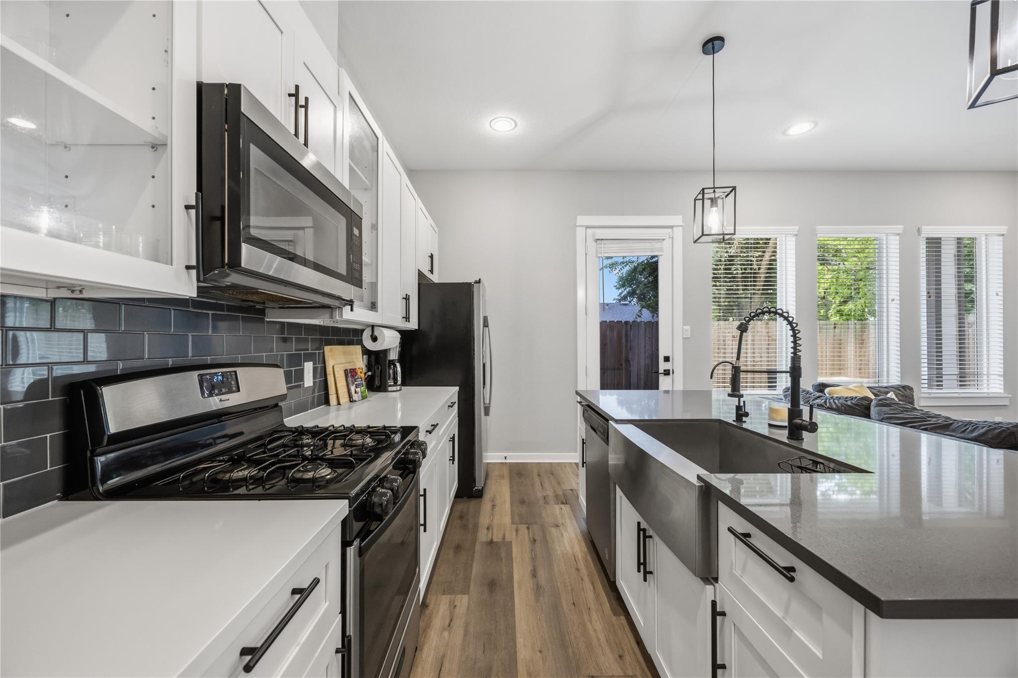 Come check out this gated community! This 3 story home has 4 bedrooms and 2.5 baths with a modern feel throughout. The first floor is an open concept with a kitchen which includes a farmhouse sink, a kitchen island with quartz countertops, and shaker cabinets. Throughout the home you will see stunning hardware to add to that modern look and feel. The master suite is located on the second floor with an expansive walk-in closet. The master bath includes a beautiful semi frameless standing glass shower and a soaking tub. The third-floor flex space offers endless possibilities to fit your lifestyle, create the perfect home office, game room, media room, fitness area, or private retreat.