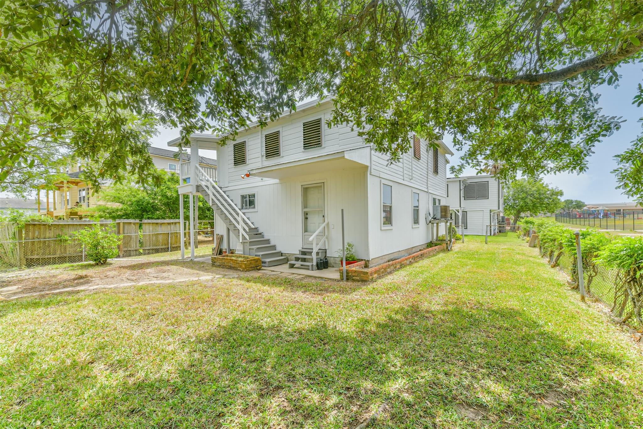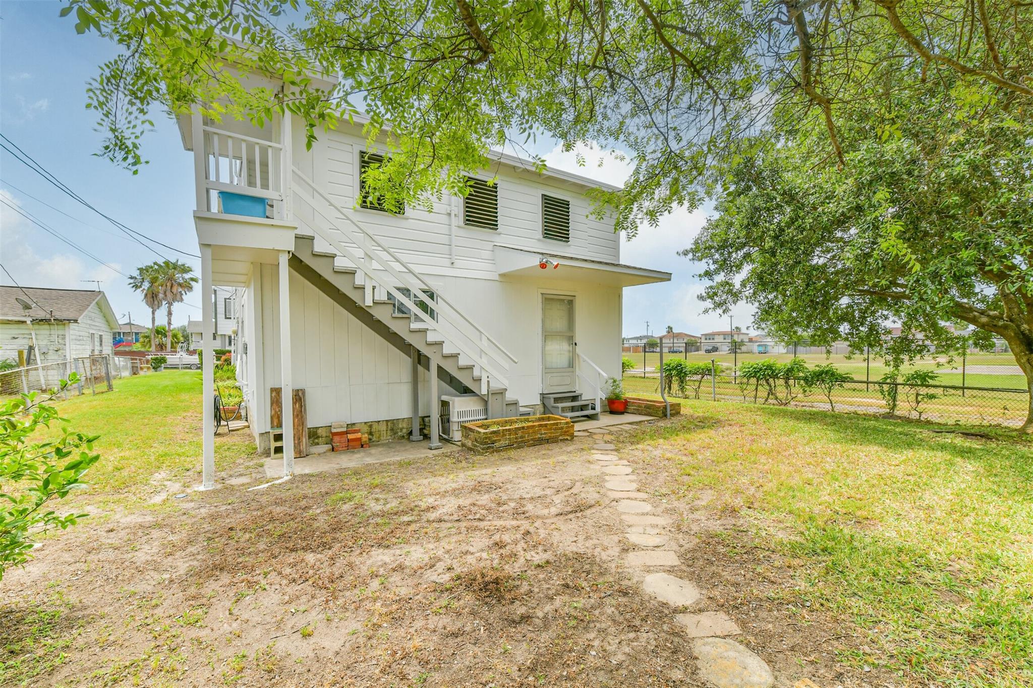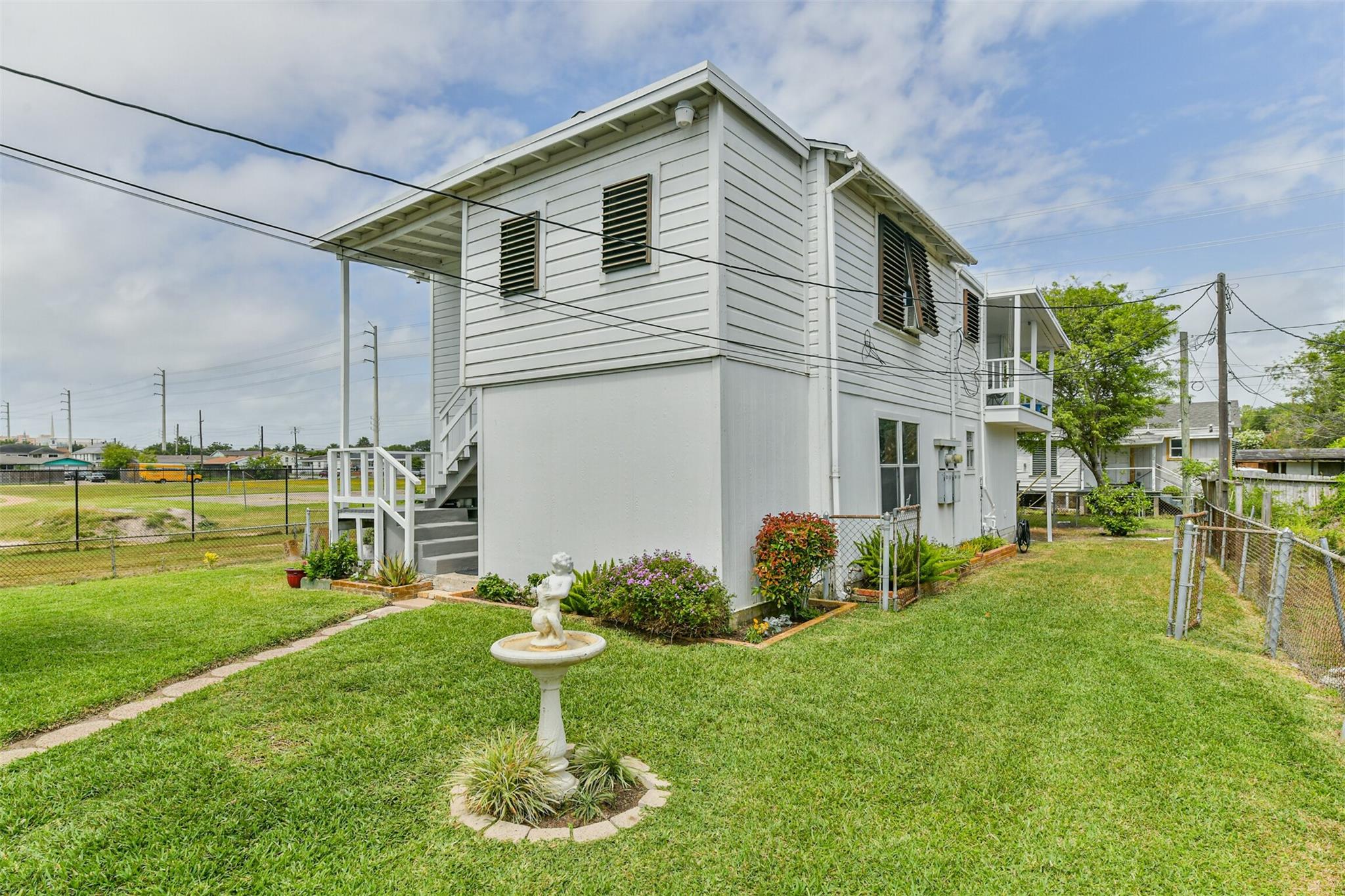 Nestled in Galveston's midtown, this meticulously cared for property offers versatile living options. The front house features 3 bedrooms, 1.5 bathrooms, and a flexible downstairs space for extra income potential. The back house includes 2 bedrooms, 1 bathroom, and the possibility to expand the lower level for more living space or a workshop. Convenient alley access is available for the back house, adding to the property's appeal for multi-generational living or rental income. Ideal for those seeking a well-maintained property with endless possibilities in a prime location.