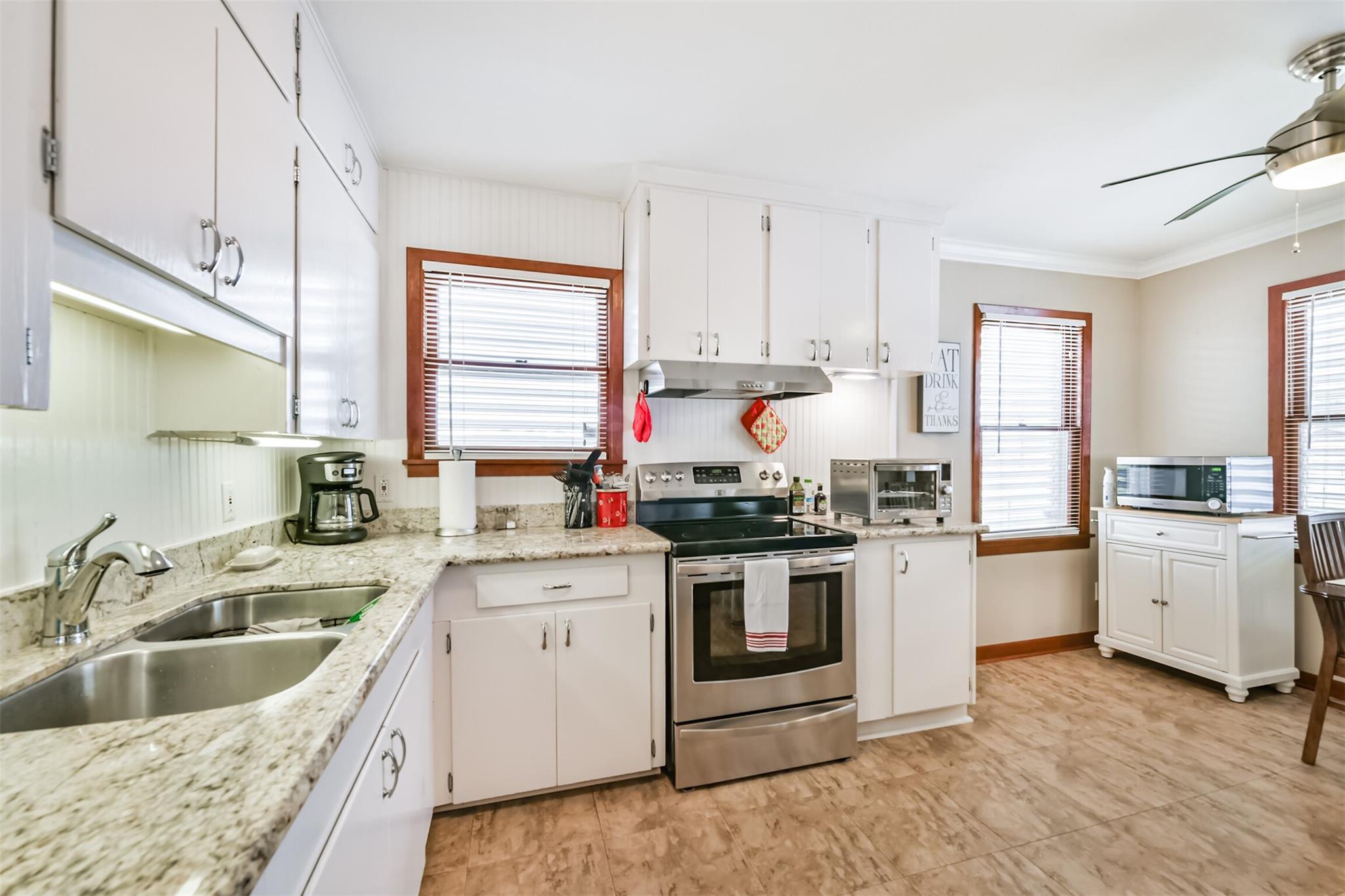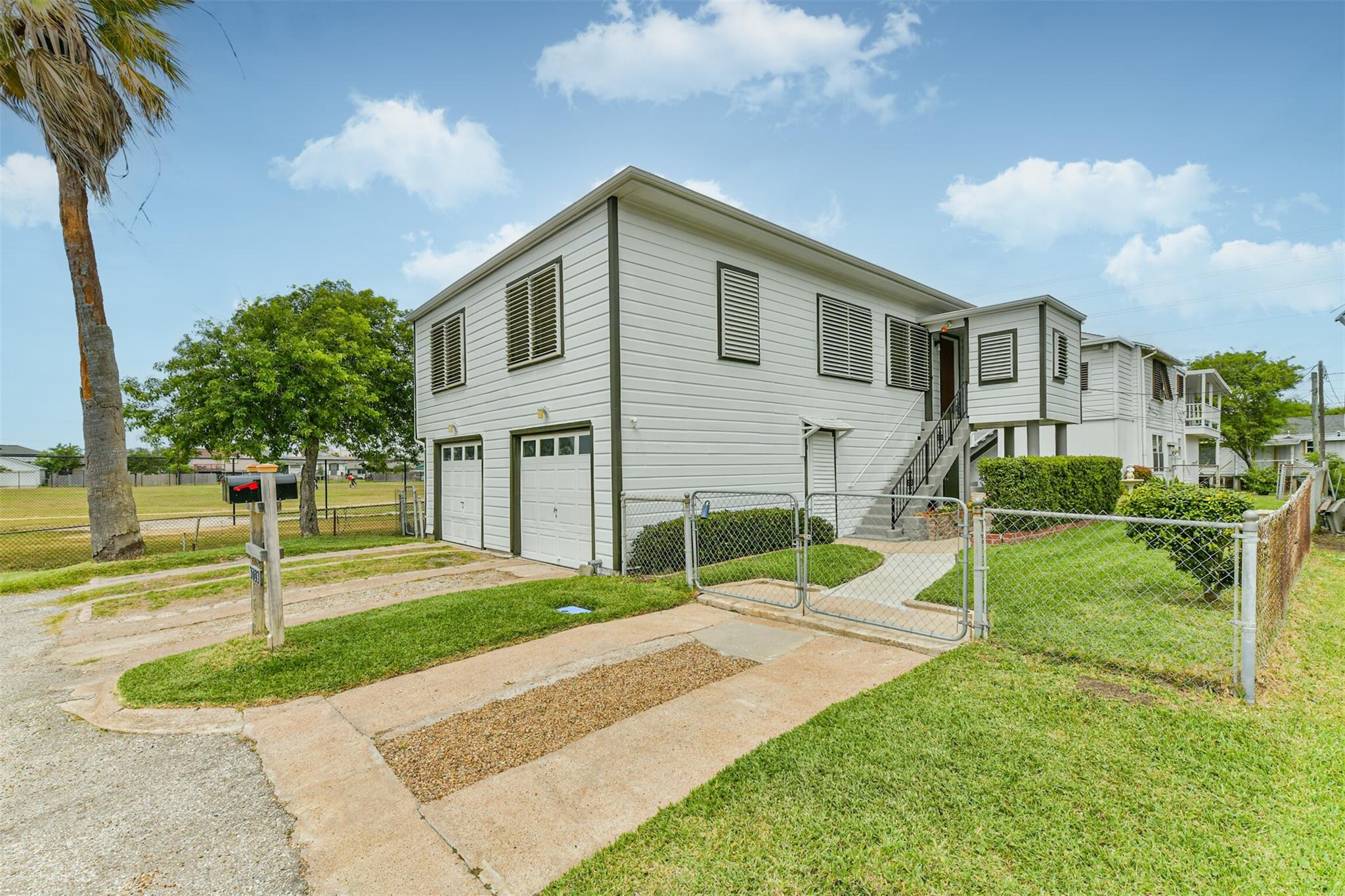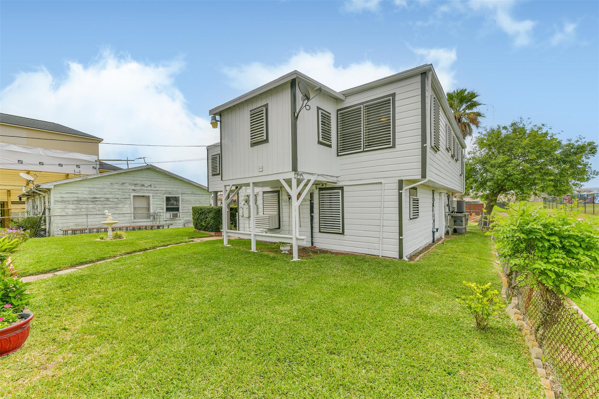 Nestled in Galveston's midtown, this meticulously cared for property offers versatile living options. The front house features 3 bedrooms, 1.5 bathrooms, and a flexible downstairs space for extra income potential. The back house includes 2 bedrooms, 1 bathroom, and the possibility to expand the lower level for more living space or a workshop. Convenient alley access is available for the back house, adding to the property's appeal for multi-generational living or rental income. Ideal for those seeking a well-maintained property with endless possibilities in a prime location.