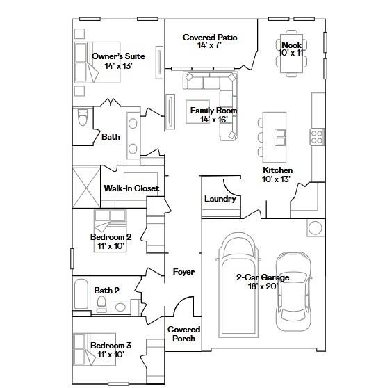 First FloorFamily Room:14x16Dining:10x11Kitchen:10x13Primary Bedroom:14x13Bedroom:11x10Bedroom 2:11x10