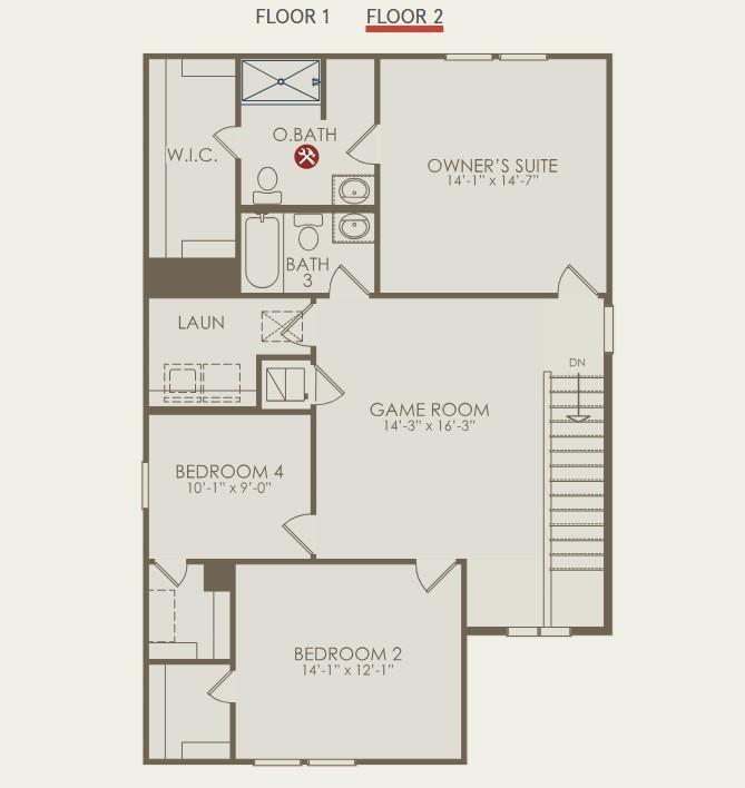 Second FloorPrimary Bedroom:14'-1" x 14'-7"Bedroom:14'-1"x 12'-1"Bedroom 2:10'-1" x 9'-0"Game Room:14'-3" x 16'-3"