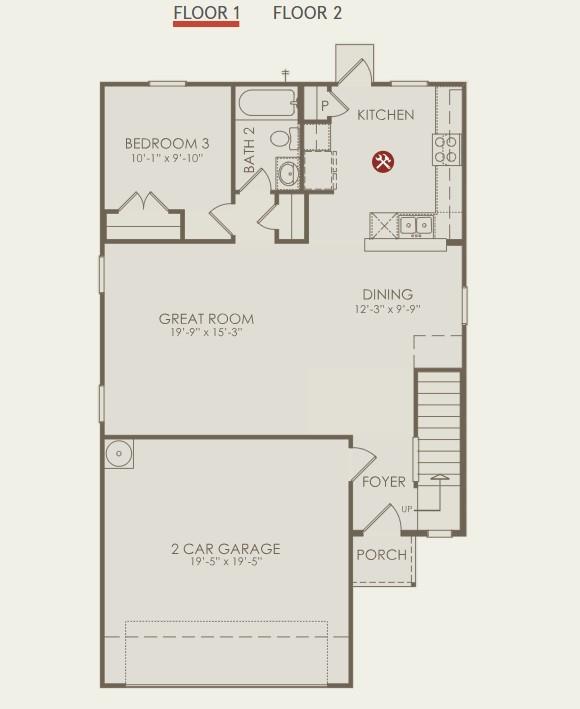 First FloorLiving:19'-9" X 15'-3"Dining:12'-3" x 9'-9"Bedroom:10'-1" x 9'10"