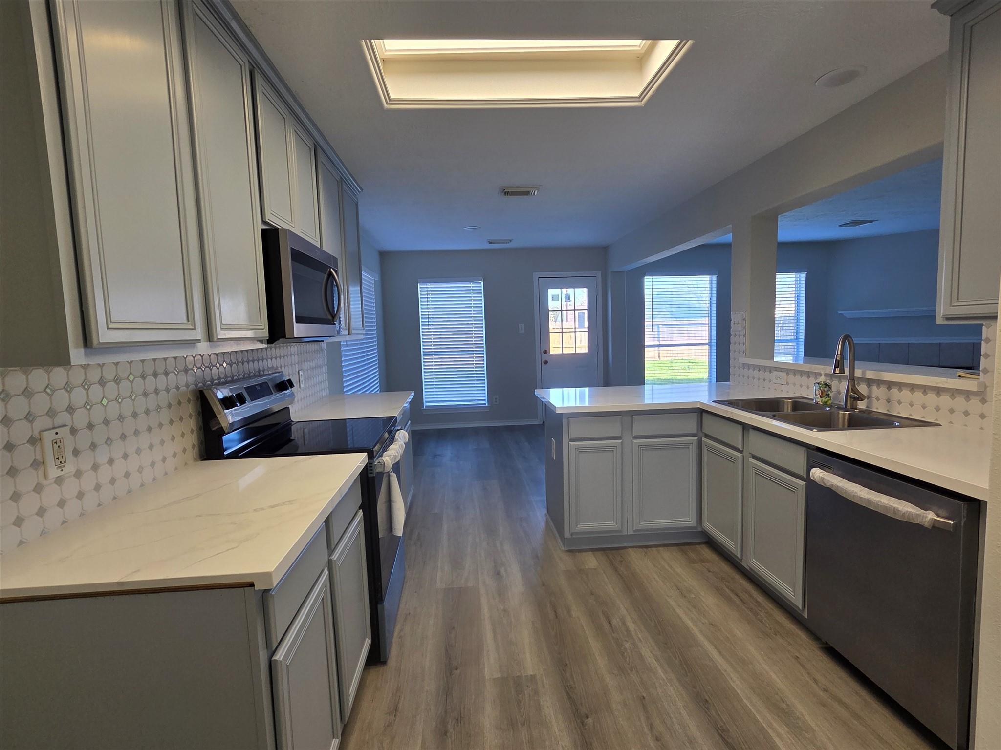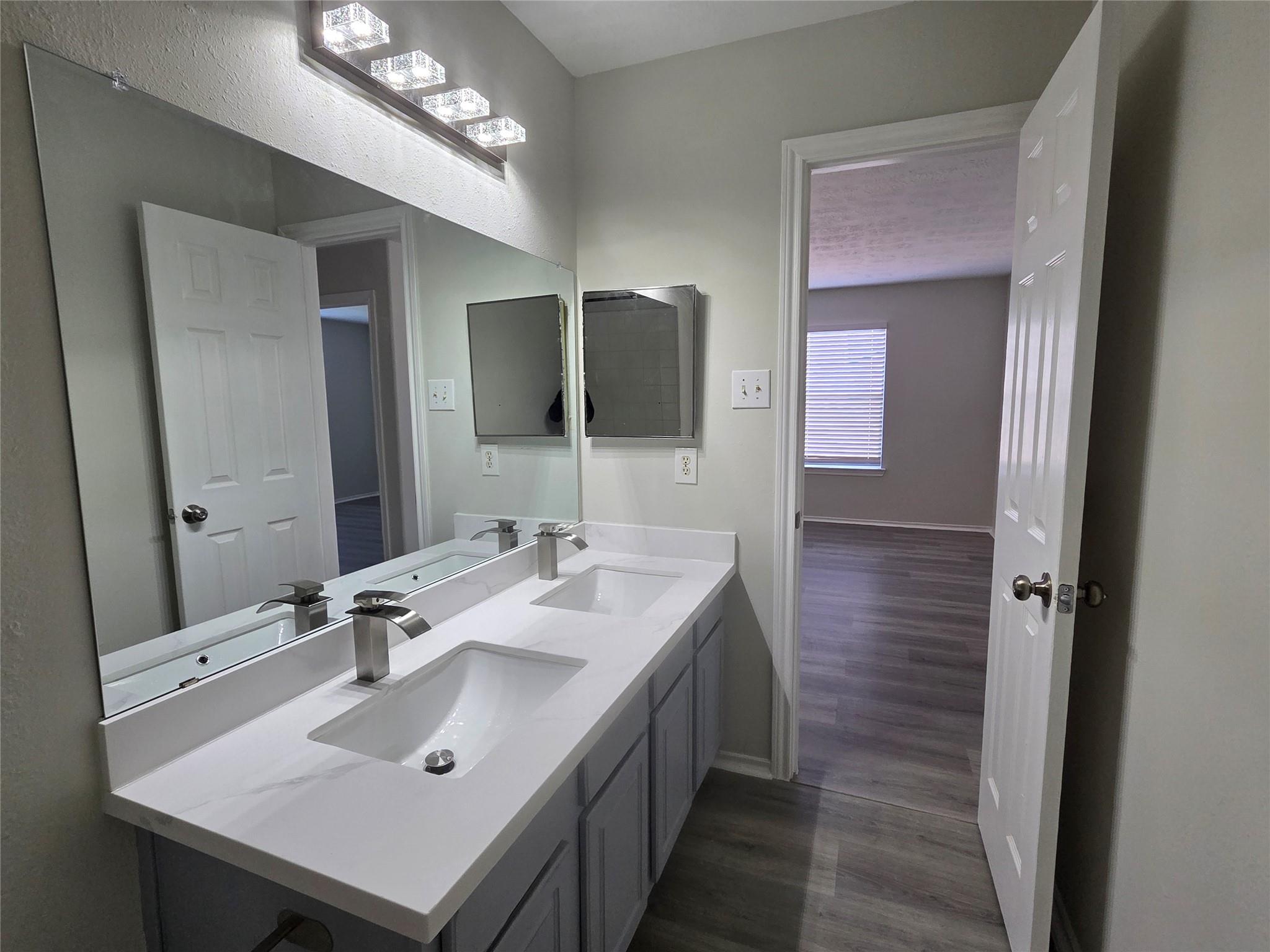 Welcome to this completely remodeled 2-stories home in desirable Great Oaks community of Houston. This home features 4 Bedrooms, 2-1/2 baths, spacious living area with high ceilings, a corner fireplace, & lots of natural light. Major updates include fresh interior paints, new luxury vinyl plank flooring through out the house & new tiles in the bathrooms. New fixtures & faucets, plus a newly renovated kitchen with quartz countertops, stainless appliances, updated bathrooms with new quartz countertops. This home is finished and ready for its new owner! The location has quick access to HW6, I-10 West, Toll roads and HW 59. Dinings, entertainment, supermarkets, parks and schools are minutes of drive. Additional highlights include a low tax rate, making this an affordable & attractive choice in the heart of Southwest Houston. Call to make your appt today!