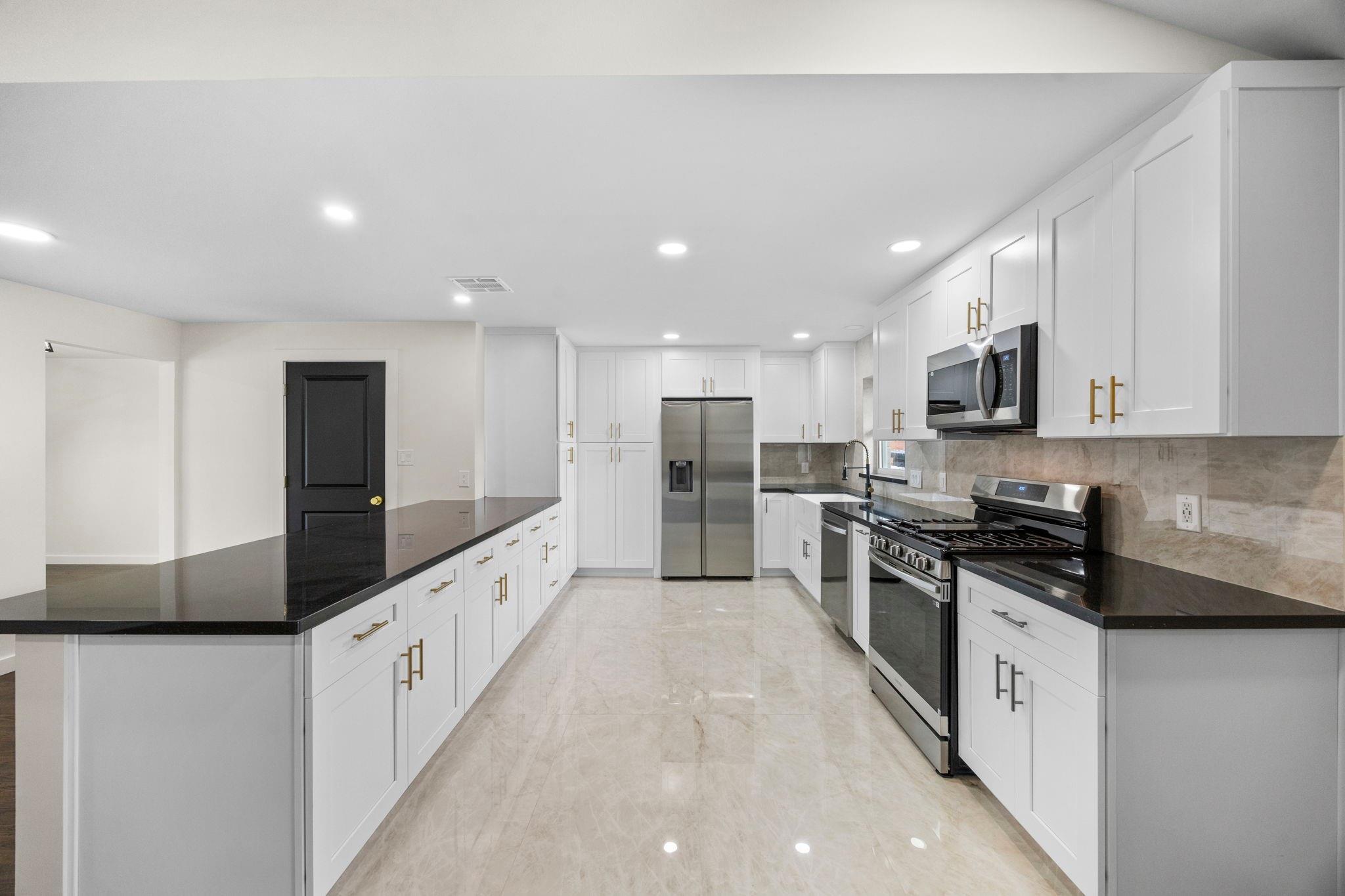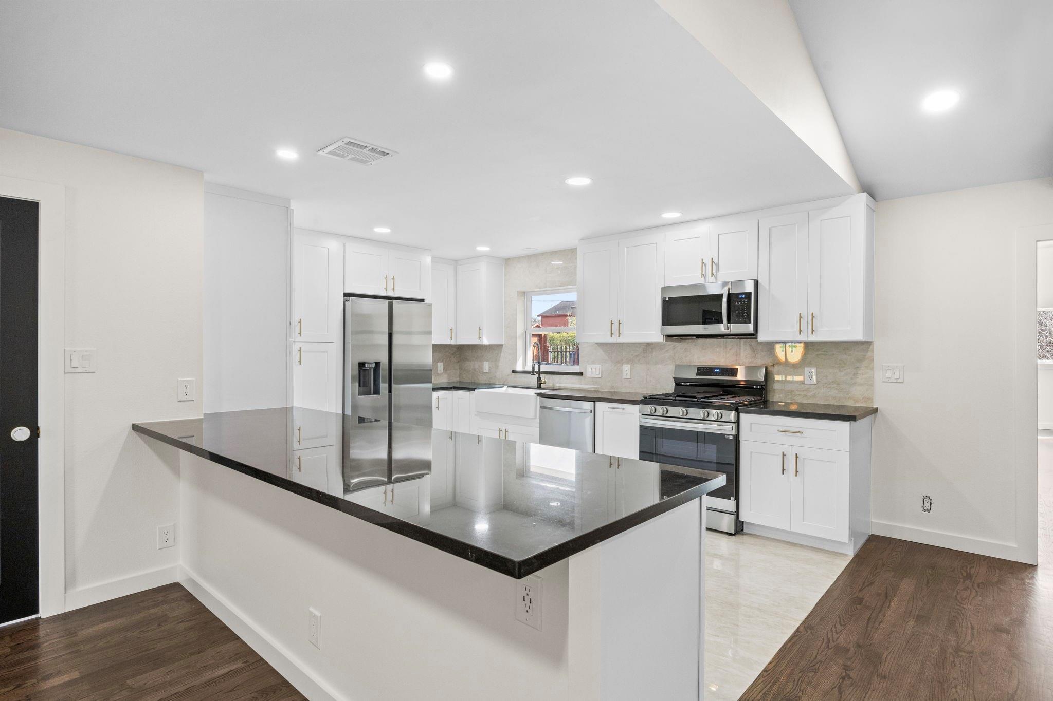WELCOME to this beautifully renovated home, perfect for large families! 6934 Heron is a 6-bedroom ranch-style home sitting on an oversized lot in a quiet, well-established neighborhood. This home features modern finishes with classic charm. Step into bright, open living spaces with newly installed windows and lighting, newly installed plumbing throughout the house, refinished hardwood floors, and a stunning vaulted living room with exposed beams. The fully updated kitchen features white shaker soft close cabinets and drawers, an oversized countertop in sleek black, and stainless steel appliances. The primary suite boasts a designer bathroom with frameless glass shower, dual sinks, and stylish tile work. Spacious secondary rooms, updated baths, and a refreshed laundry room add convenience throughout. Enjoy a large fenced in backyard and detached garage, perfect for outdoor living or future enhancements. Room dimensions are estimates, buyers do own due diligence on room dimensions.