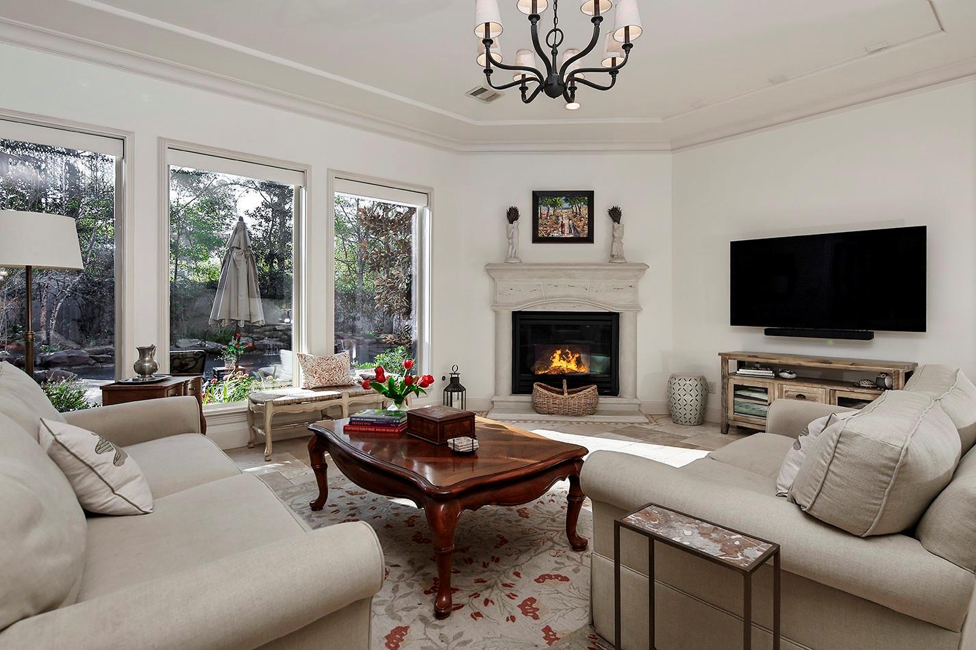 Nestled within the prestigious Player Manor community, this extraordinary home offers refined luxury, timeless elegance & thoughtful design. Enjoy 5 generous bedrooms, 4 full & 2 half baths plus split 3-car garage. The highly coveted floorplan features a serene main-level primary suite & a private guest suite. The open family room & well-appointed kitchen are ideal for gatherings. Upstairs, a spacious game room & media room provide elevated spaces for entertaining. Discover a secluded backyard retreat set on an oversized, private lot, curated for resort-style living. Highlights include a sparkling pool w/tranquil spa, stone slide, covered living area w/fireplace, outdoor kitchen & lush landscaping. Recent upgrades enhance both efficiency & peace of mind, including A/C units, furnaces, water heaters, upgraded impact-resistant roof & fresh exterior paint. Recent pool enhancements include the heater, vacuum, LED lighting & main pump. Prime location near schools/shopping/dining/recreation.