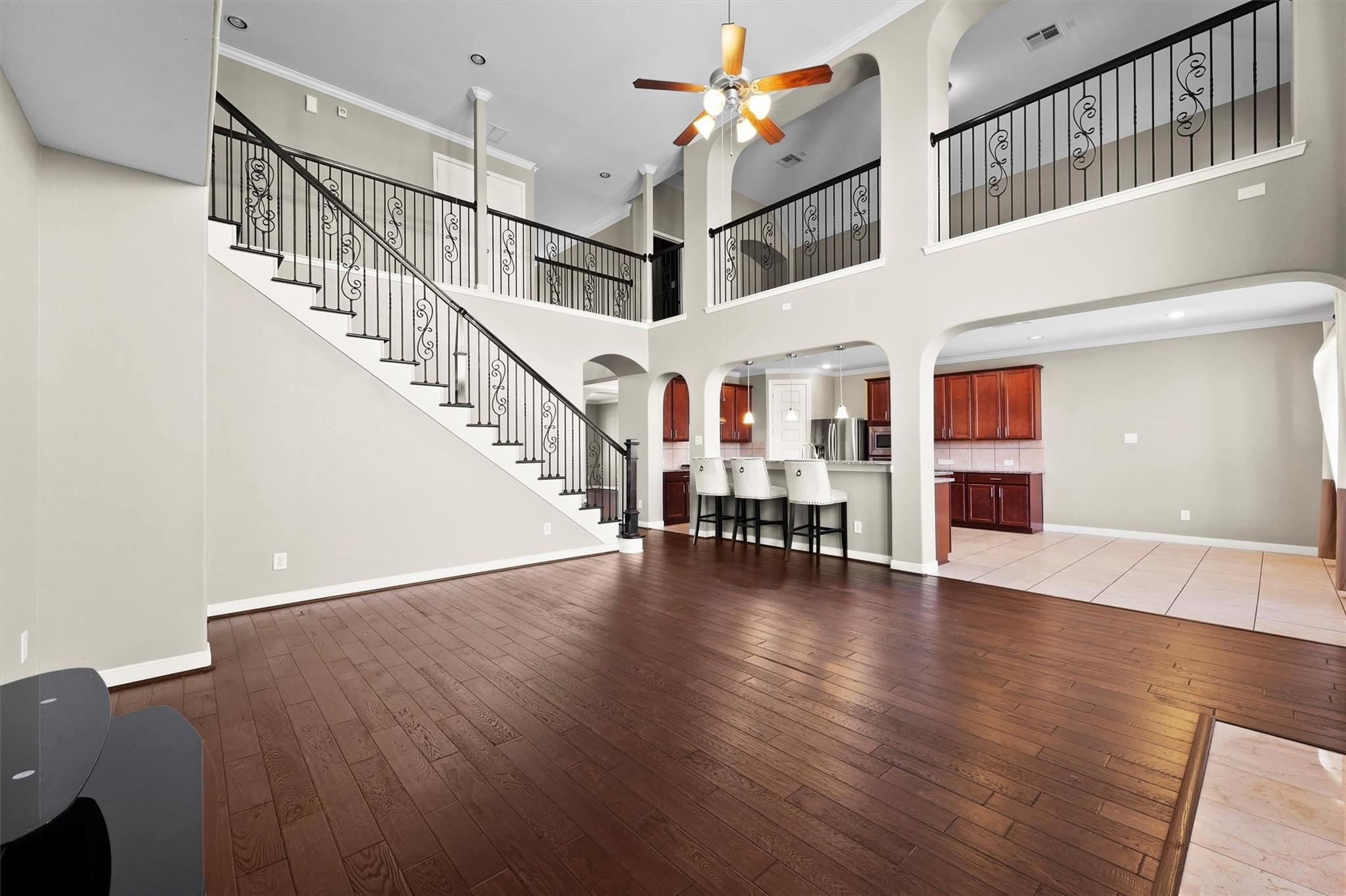 /monthImmaculate two-story home located in the highly desirable Twin Falls community. The elegant front door opens to the formal living, dining, study, & gorgeous hardwood floors. The kitchen boasts espresso cabinetry with crown molding, granite countertops, built-in appliances and a massive island. Relax in the spacious family room, w/ stone fireplace, dramatic high ceilings and tall windows overlooking the backyard, pool, and hot tub. Oversized primary suite/bath; with garden tub, shower, & large closet. Wrought iron balusters & staircase lead to the upstairs game room, media room, secondary bedrooms and access to balconies.The backyard is perfect for year long entertaining with covered patio and the custom heated pool and hot tub.