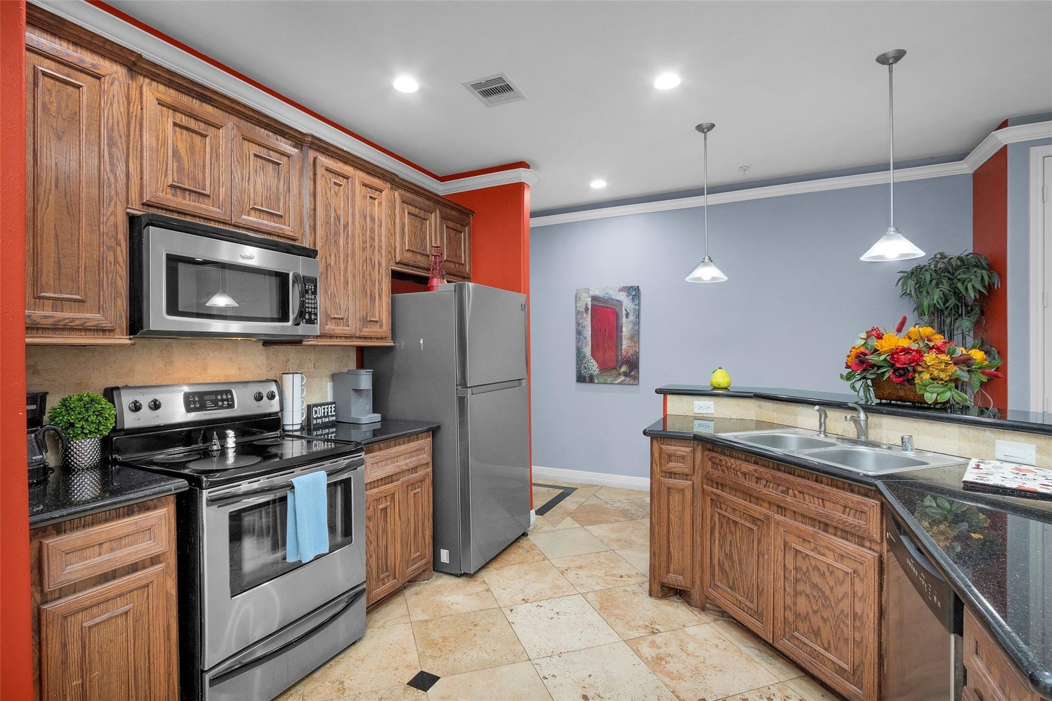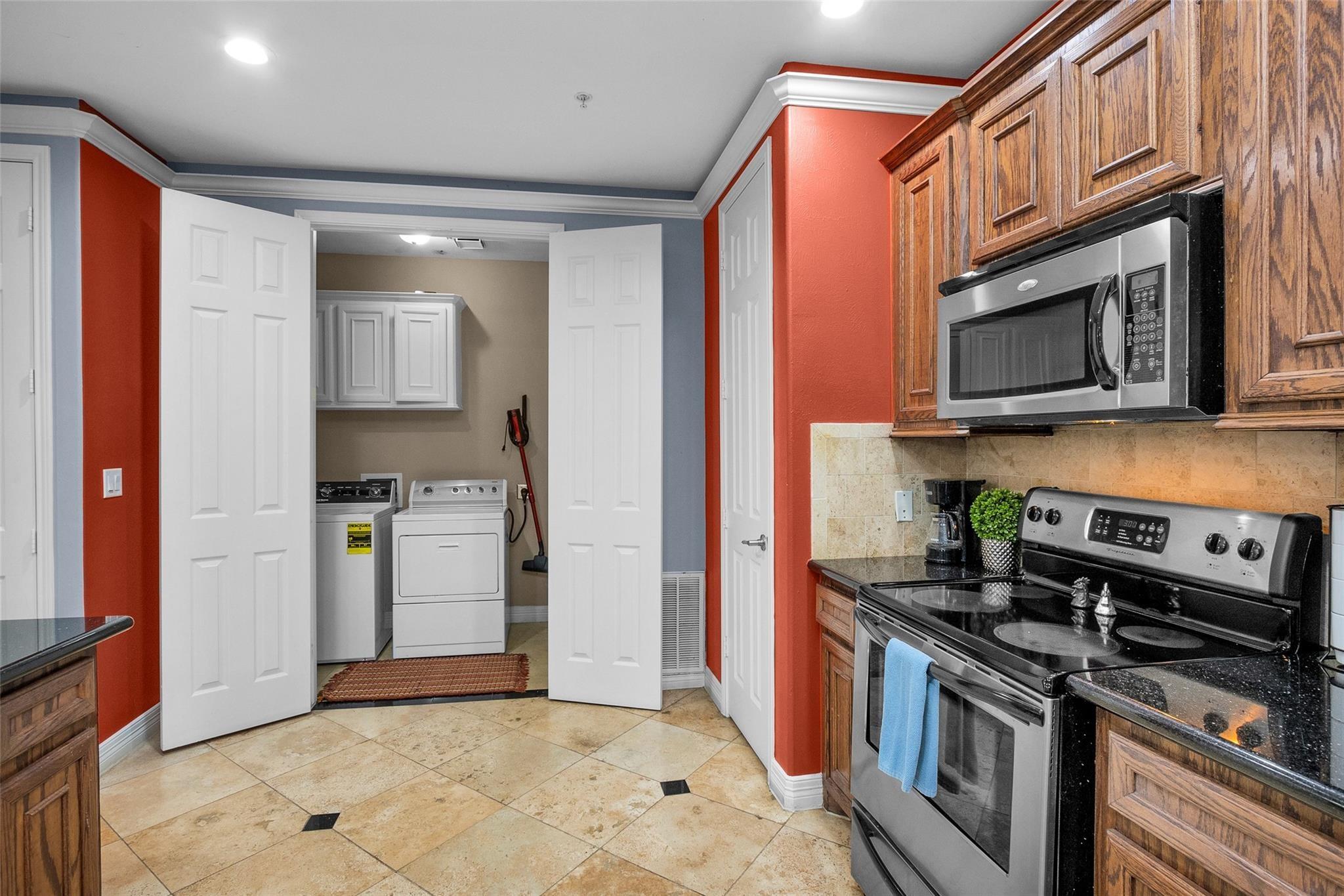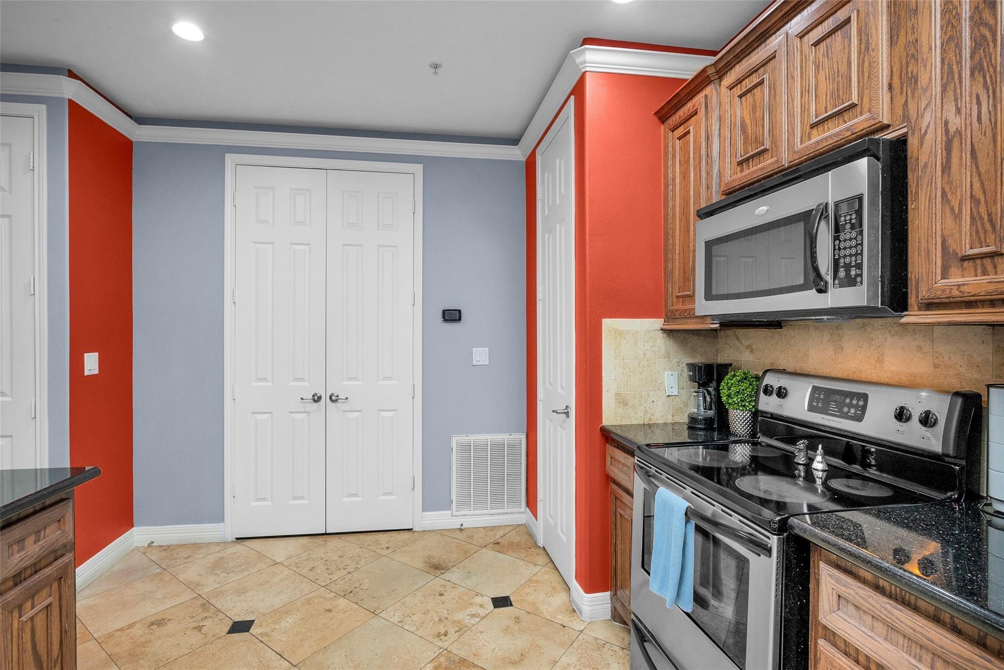 InteriorFloors:Carpet,TravertineCountertop:GraniteBathroom Description:Full Secondary Bathroom Down,Primary Bath: Soaking Tub,Primary Bath: Tub/Shower Combo,Secondary Bath(s): Soaking Tub,Two Primary BathsBedroom Desc:2 Bedrooms Down,2 Primary Bedrooms,All Bedrooms Down,En-Suite Bath,Primary Bed - 1st FloorKitchen Desc:Breakfast Bar,Butler Pantry,Kitchen open to Family Room,PantryRoom Description:1 Living Area,Breakfast Room,Guest Suite,Kitchen/Dining Combo,Utility Room in HouseHeating:Central ElectricCooling:Central ElectricWasher/Dryer Conn:YesDishwasher:YesDisposal:YesCompactor:NoMicrowave:YesRange:Electric RangeOven:Electric OvenIce Maker:NoAppliances:Dryer Included,Electric Dryer Connection,Refrigerator,Washer IncludedEnergy Feature:Ceiling Fans,Digital Program ThermostatInterior:Balcony,Crown Molding,Dry Bar,Elevator,Fire/Smoke Alarm,Refrigerator Included,Window Coverings
