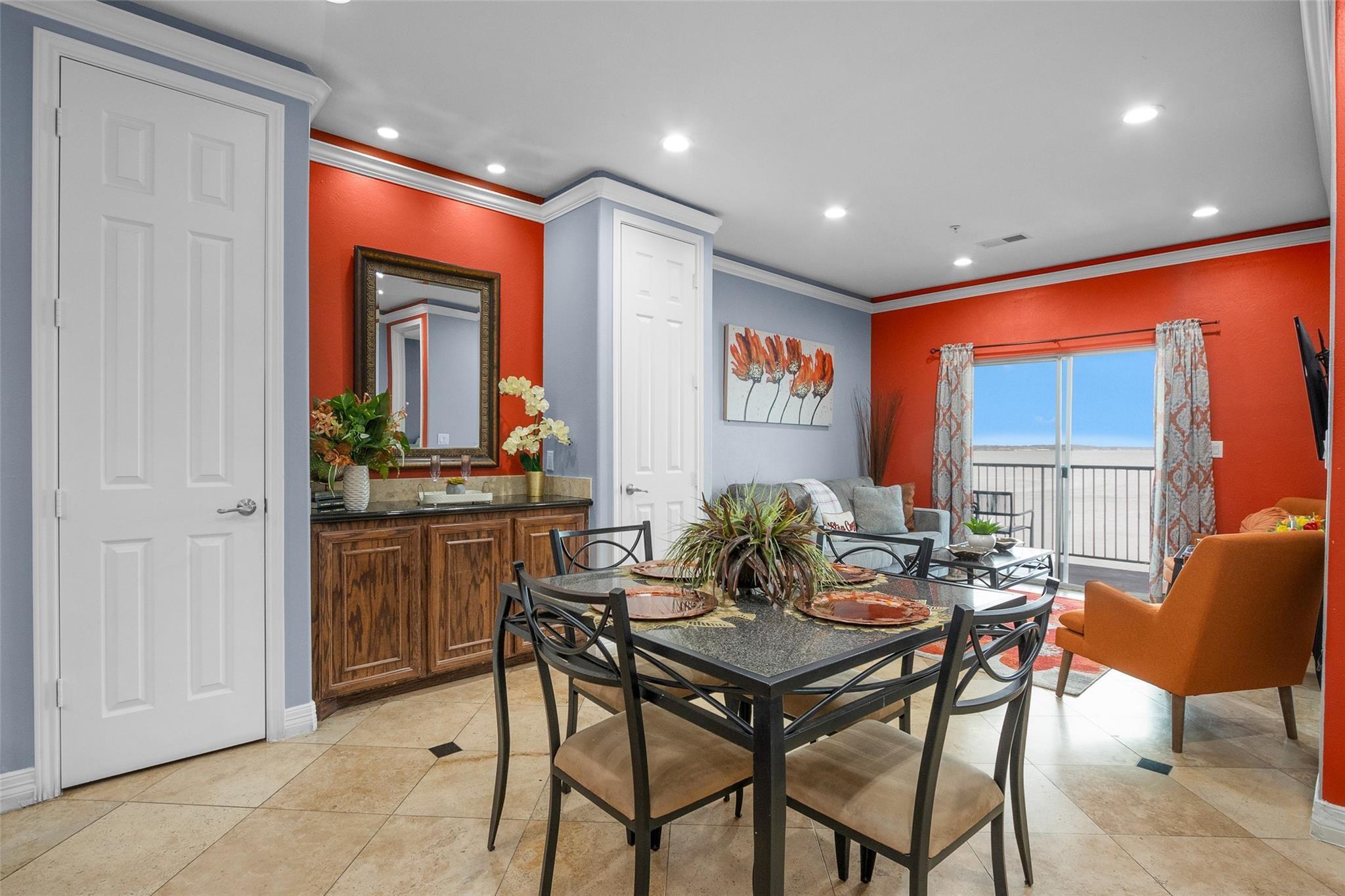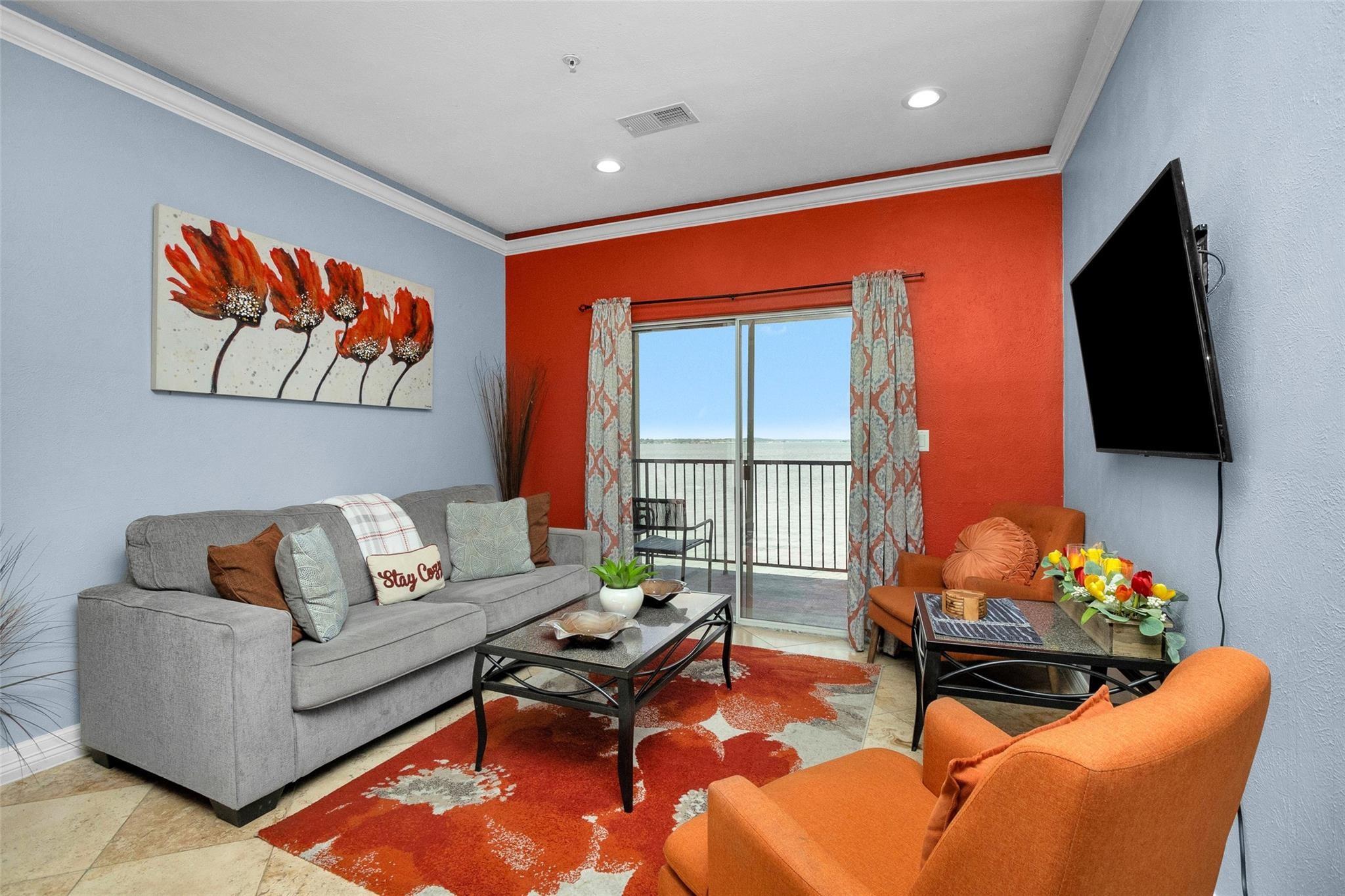 Welcome to Sunset Harbor Luxury Condominiums on Lake Conroe. Continue operating as a short or long term Rental(full Air BNB) or your lake home. Enjoy the pool, marina, basketball & tennis courts, playground, & walking trails that Seven Coves has to offer. The Wave restaurant and pool is Just steps away from your condo & offers Dining right next door. Take the staircase or elevator to this beautifully updated 3rd floor unit. Unique layout offers options to use as a 2/2 combined unit or split to live in one & rent the other with 2 separate entrances. Kitchen is fully equipped with stainless appliances, Custom cabinets, & granite countertops. Granite Coffee/wine bar, with 2 more storage closets. Open concept Kitchen, expansive breakfast bar, dining, and living, all have an open water view of Lake Conroe. Living room and primary bedroom have panoramic views of the lake. Second bedroom Is fully self contained with Kitchenette, dining area, Full Bath and closet. Trash & water are included.