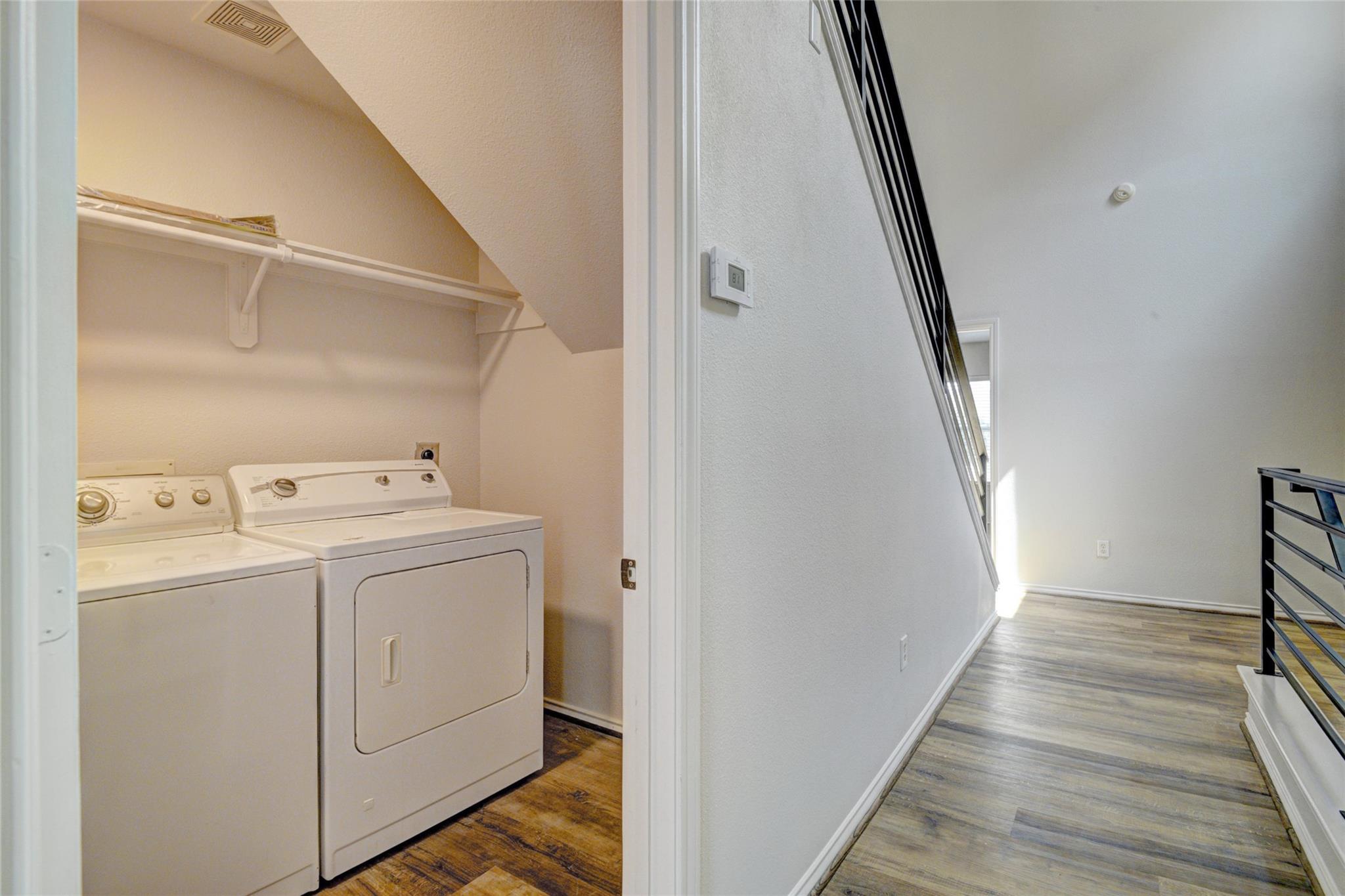 Newly remodeled charming three story home in a private gated community. Features 2 bedroom/ 2 bathroom/ 1 flex room on 3rd floor, could be a 3rd bedroom, game room, office, playroom, or media room. Kitchen renovated with new paint, all new stainless steel appliances, Quartz countertops throughout home, new Sinks, and fixtures. Open floor plan as you enter into dinning room and family room with wood floors throughout, beautiful updated kitchen, breakfast bar, and lots of cabinet space. Massive Master suite, wood floors, high ceilings, remodeled master bathroom with quartz countertops/ sinks/ fixtures/ ceiling fan, huge oversized walk-in closet. Plenty of storage on every level, wash room is located on second floor next to master bedroom and secondary bedroom. Attached 2 car garage, fenced in backyard, and wired for security alarm system. Minutes from UOH, 10 minutes from Downtown attractions, quick & easy access to I-45, 610, the medical center, & Galleria.