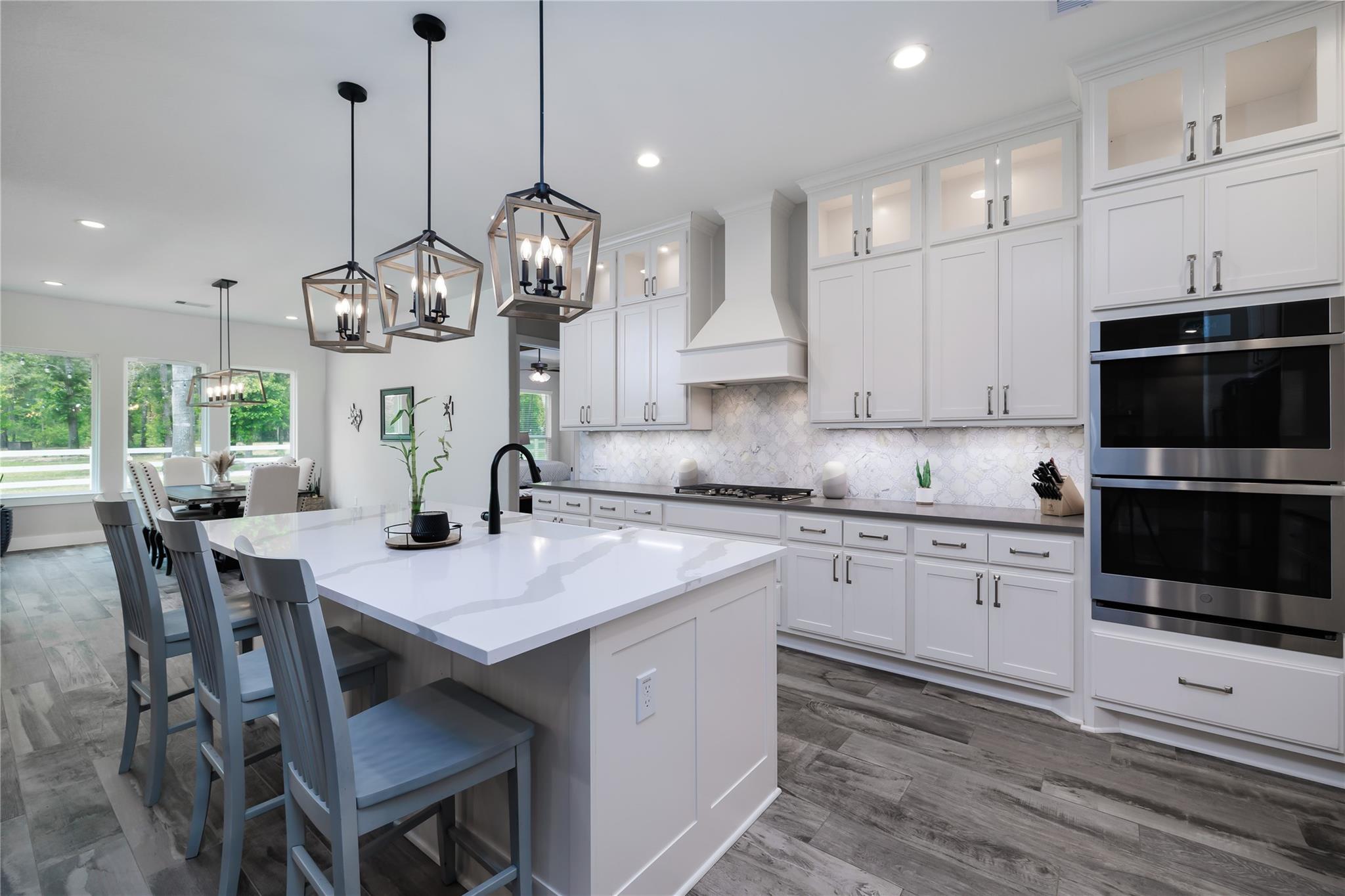 Pristine Saddle Creek Forest GEM! Stunning home built by Trinity in 2022. Spacious open floor plan, perfect for family and entertaining. The impressive family room features high ceilings, exposed beams and a custom fireplace/mantle. The island kitchen is a chef’s dream, boasting stainless steel appliances, a gas range, beautiful cabinetry, custom backsplash, granite countertops, a farmhouse sink, large pantry, and a formal dining area. Enjoy a generously sized primary bedroom RETREAT with a large walk-in closet. The spa-like primary bathroom features double sinks, a freestanding soaking tub, and a glass-enclosed shower. Additional Highlights include Big secondary bedrooms, Dedicated home office/study, Spacious upstairs game room, Designer lighting throughout, Oversized utility room, 3-car, 910 sq ft garage, Large covered back porch, and Sprinkler system. Residents enjoy top-tier amenities including a pool, equestrian center, walking trails, and a private lake. Horses are welcome!