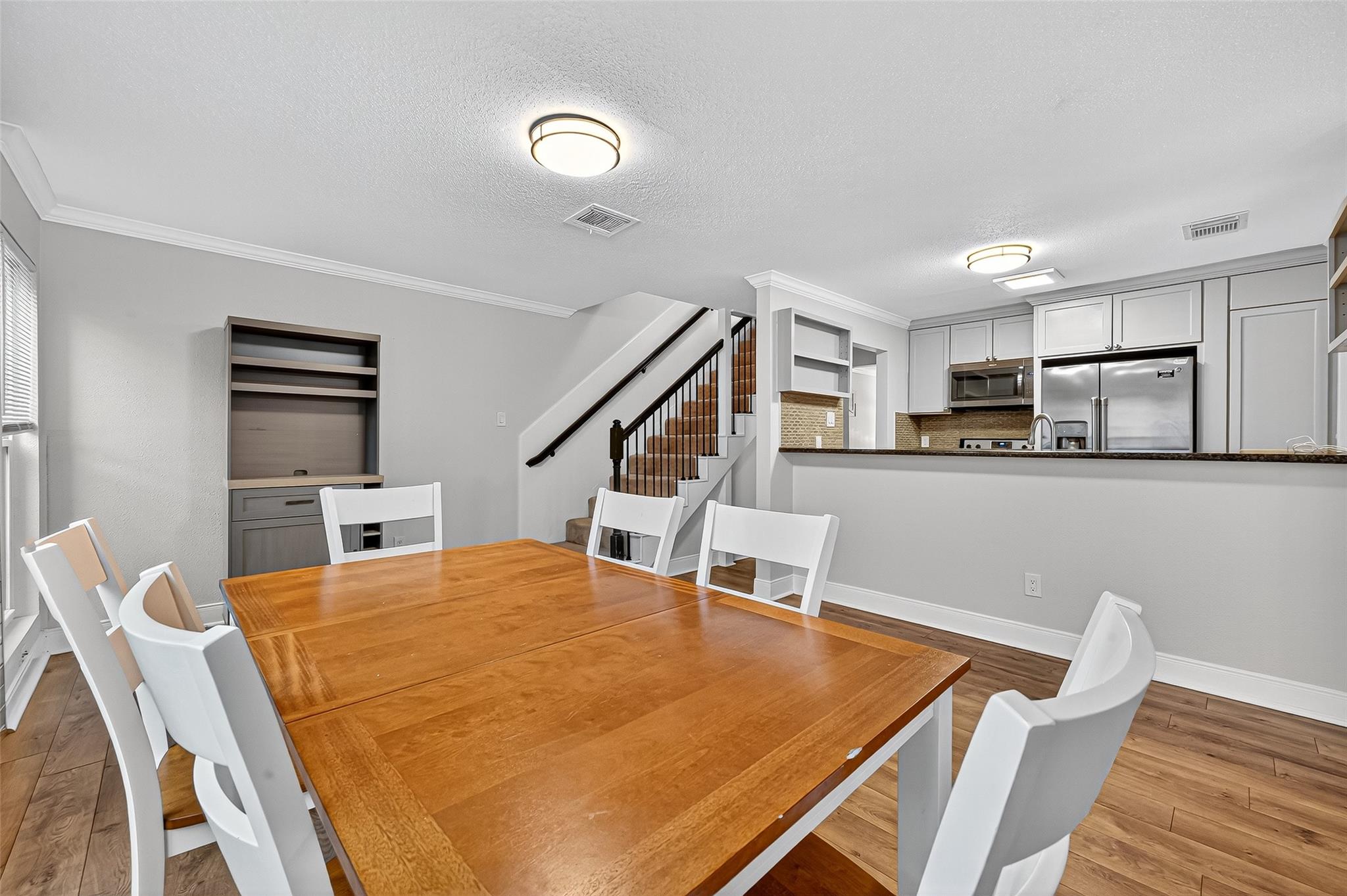 Nestled in Hidden Lake townhomes, 711 Worhshire offers 1695 Sqft of elegant living space. Featuring a beautiful kitchen with granite countertops, custom cabinets, stainless steel appliances, and pantry. The main floor includes a half bath, breakfast area, living and family room with fireplace, laundry space, and a fenced private patio steps away from the pool. Upstairs, bedrooms boast en-suites, with the primary room slightly larger and a walk-in closet. Energy-efficient windows, a new roof, and gutters in 2025. Timbergrove is conveniently located near freeways, shopping, dining, and entertainment in Houston.