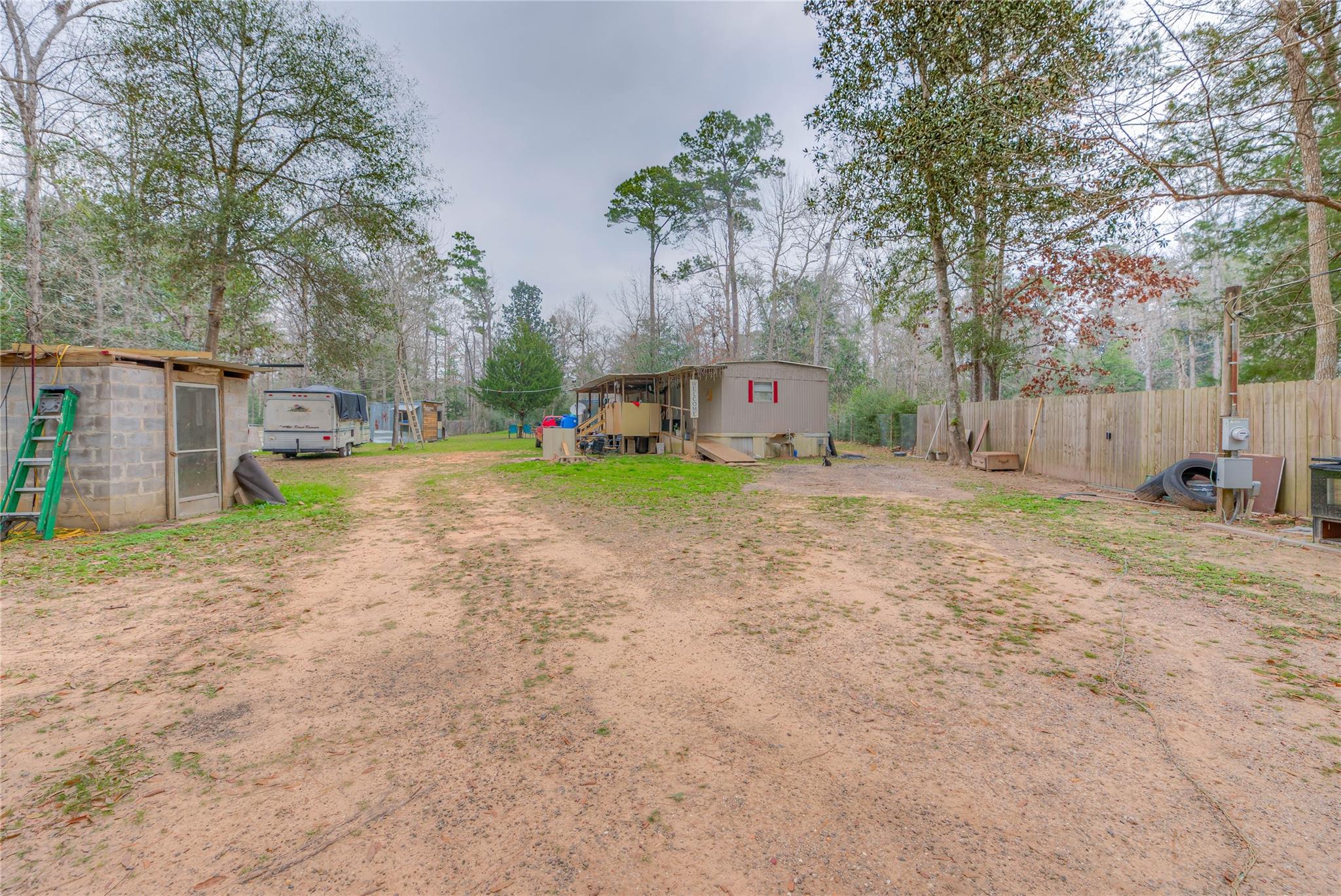 Unrestricted 25,000 sq ft property featuring four cleared lots with all utilities in place. Mobile home is a 2-bedroom, 1-bath and will be conveyed with the sale. Plenty of room to build, expand, or bring additional homes. Endless possibilities with no restrictions!