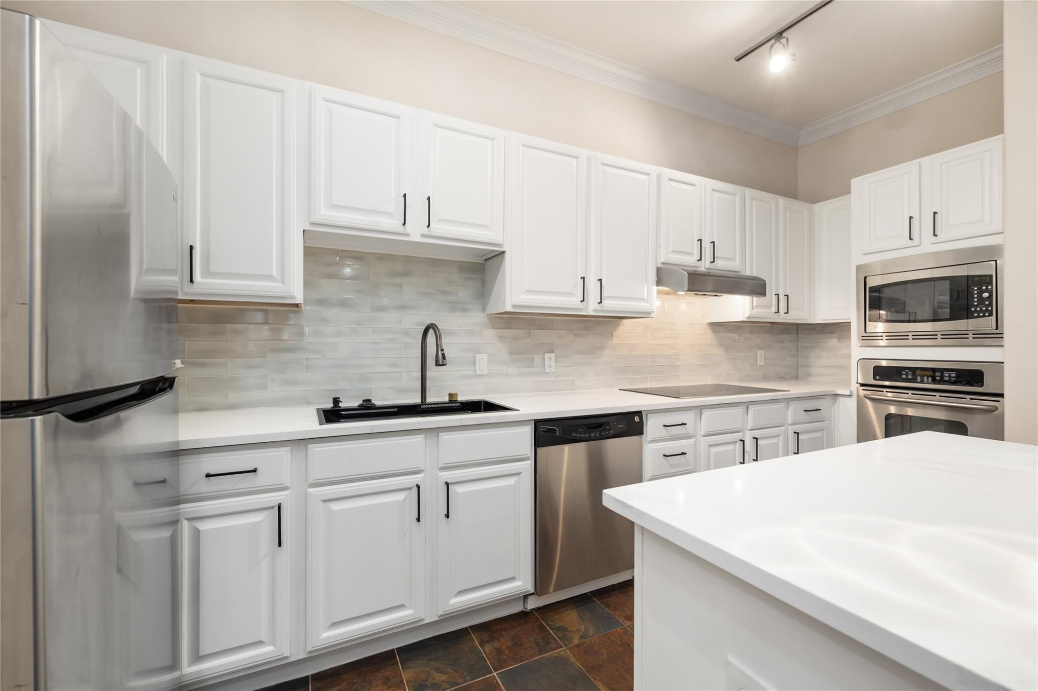REMODELED!!! Extensive list of recent upgrades! The kitchen and both bathrooms were updated with attractive modern finishes in January 2026! New Bosch cooktop and new sink in the kitchen with waterfall feature, and illuminated anti-fog mirrors in both bathrooms! New frameless shower in primary bathroom and new tub, tile and toilet in secondary bathroom. New Carpet in bedrooms and Fresh Paint! Built in 2006, The Bellaire is a 4 story 27 unit condominium building in the heart of the Bellaire area! Walking distance to the Bellaire Recreation Center, and very close to many excellent restaurants and shopping. Bellaire HEB nearby! This location is amazing! Zoned to Condit Elementary School (walking distance), Pershing Middle School and Bellaire High School. Tall ceilings! Very LARGE walk in closet in primary bedroom! Refrigerator, washer and dryer included. Gated and assigned parking in the covered parking garage. Schedule your appointment to see this wonderful home today!
