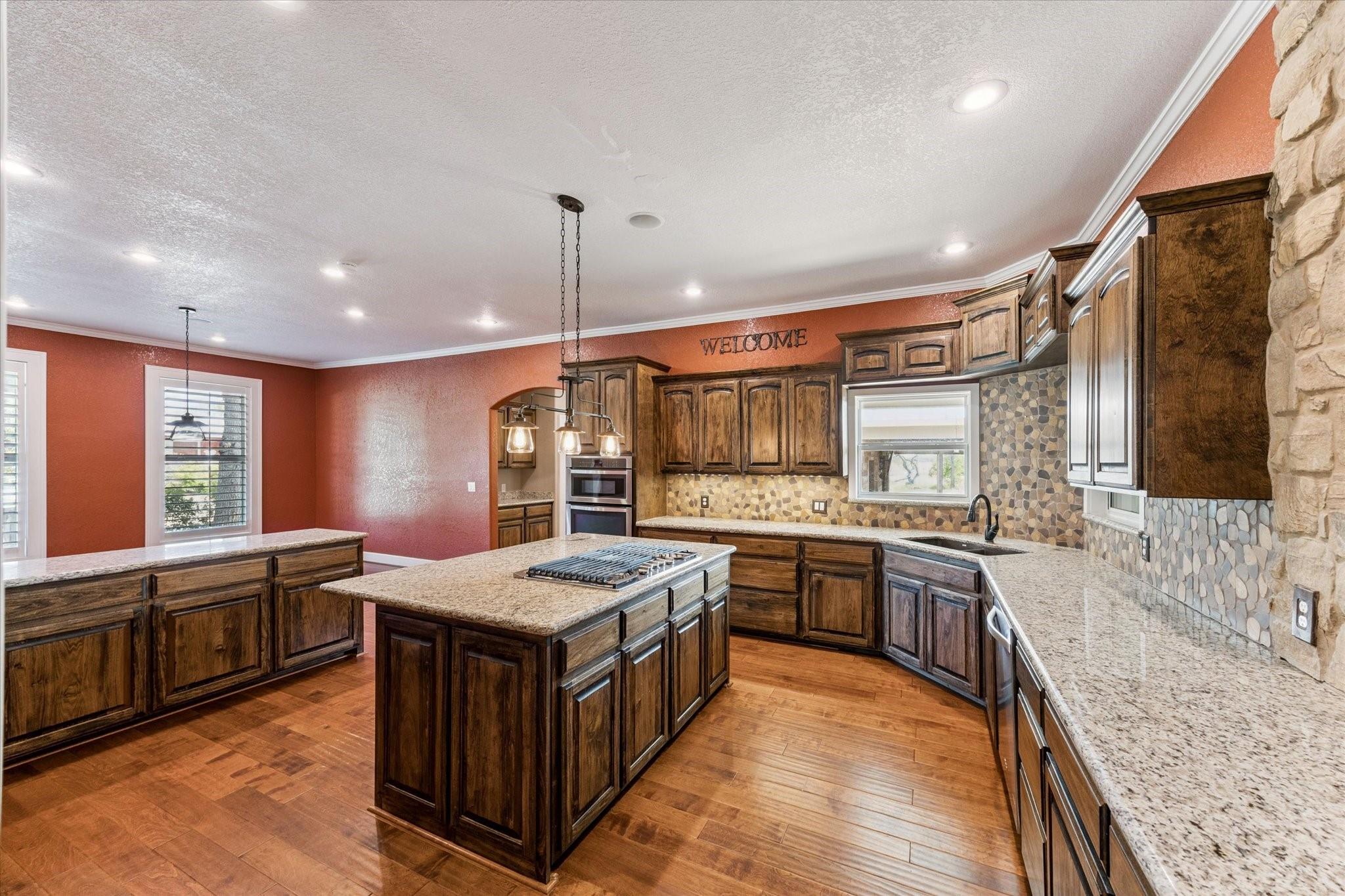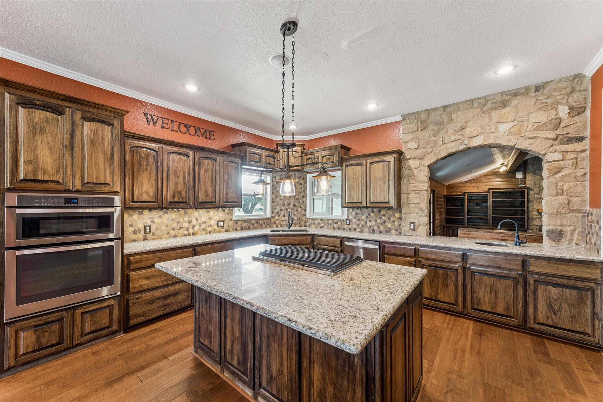 InteriorFireplace:1/Wood Burning FireplaceFloors:Concrete,Engineered Wood,TileBathroom Description:Full Secondary Bathroom Down,Primary Bath: Double Sinks,Primary Bath: Jetted Tub,Primary Bath: Separate Shower,Primary Bath: Soaking Tub,Secondary Bath(s): Double Sinks,Secondary Bath(s): Shower Only,Secondary Bath(s): Tub/Shower ComboBedroom Desc:2 Bedrooms Down,2 Bedrooms Up,Primary Bed - 1st Floor,Walk-In ClosetKitchen Desc:Breakfast Bar,Island w/ CooktopRoom Description:1 Living Area,Entry,Kitchen/Dining Combo,Living Area - 1st Floor,Sun Room,Utility Room in HouseHeating:Central ElectricCooling:Central ElectricConnections:Electric Dryer Connections,Washer ConnectionsDishwasher:YesMicrowave:YesRange:Gas CooktopOven:Electric OvenEnergy Feature:Ceiling FansInterior:Crown Molding,High Ceiling,Vaulted Ceiling