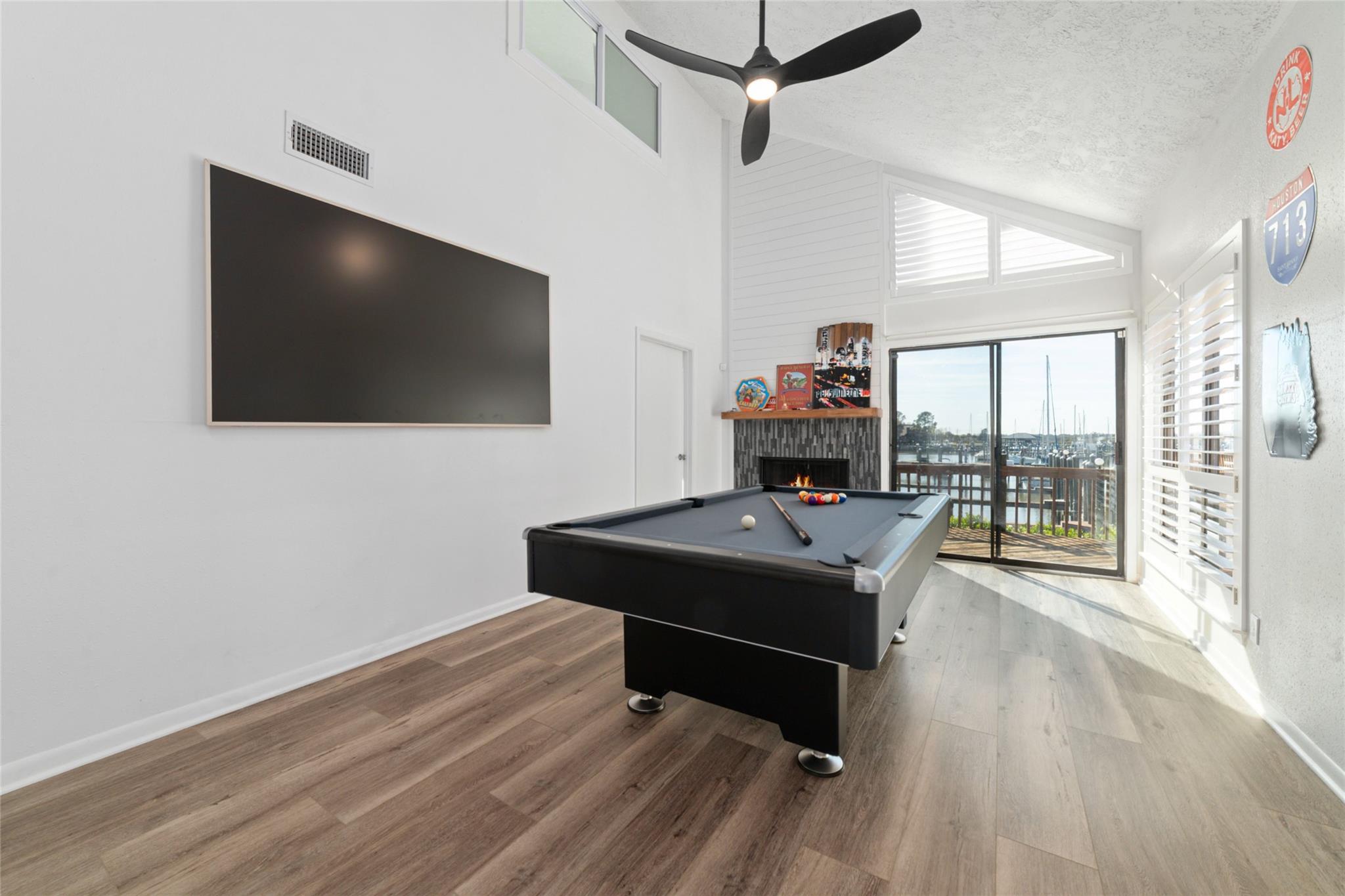 /monthStunningly renovated corner townhome in The Wharf, where waterfront living meets an unbeatable location! This waterfront home offers tranquil views right outside your door. The thoughtful floor plan features two bedrooms on the first floor with a full bath, while the upstairs primary suite offers an en suite bath, walk in closet, and a private balcony overlooking the water! The home is truly move in ready with extensive recent updates including very recent interior paint & sheetrock, quartz countertops, updated lavatories, a beautiful fireplace, new flooring throughout, vaulted ceilings, modern light & plumbing fixtures, & AC systems replaced in 2022. HOA amenities include maintained grounds, water & sewer, trash removal, access to two pools, tennis courts, a walking path around the water, & on site waterway maintenance. Enjoy quick access to I 45, FM 518, and Highway 96, placing shopping, dining, Clear Lake, and waterfront attractions just minutes away. Schedule your showing today!
