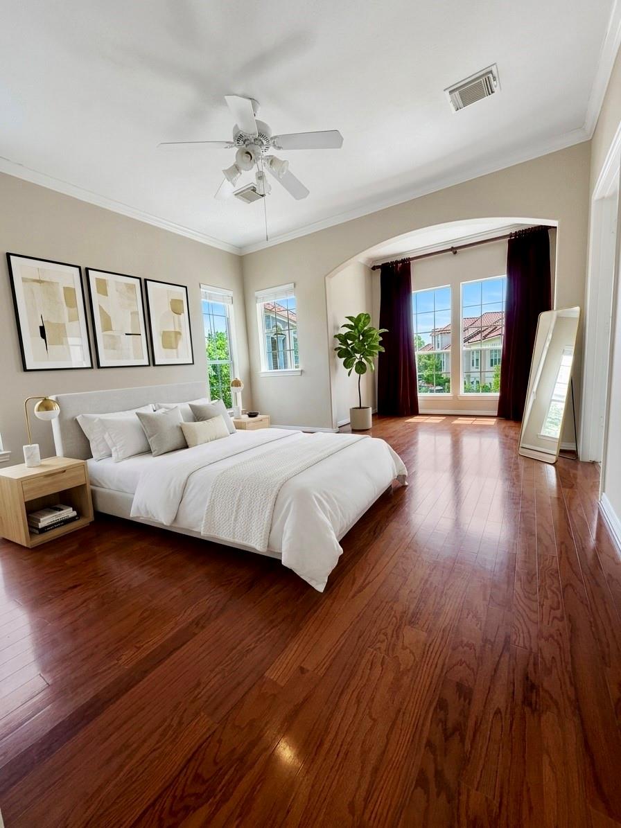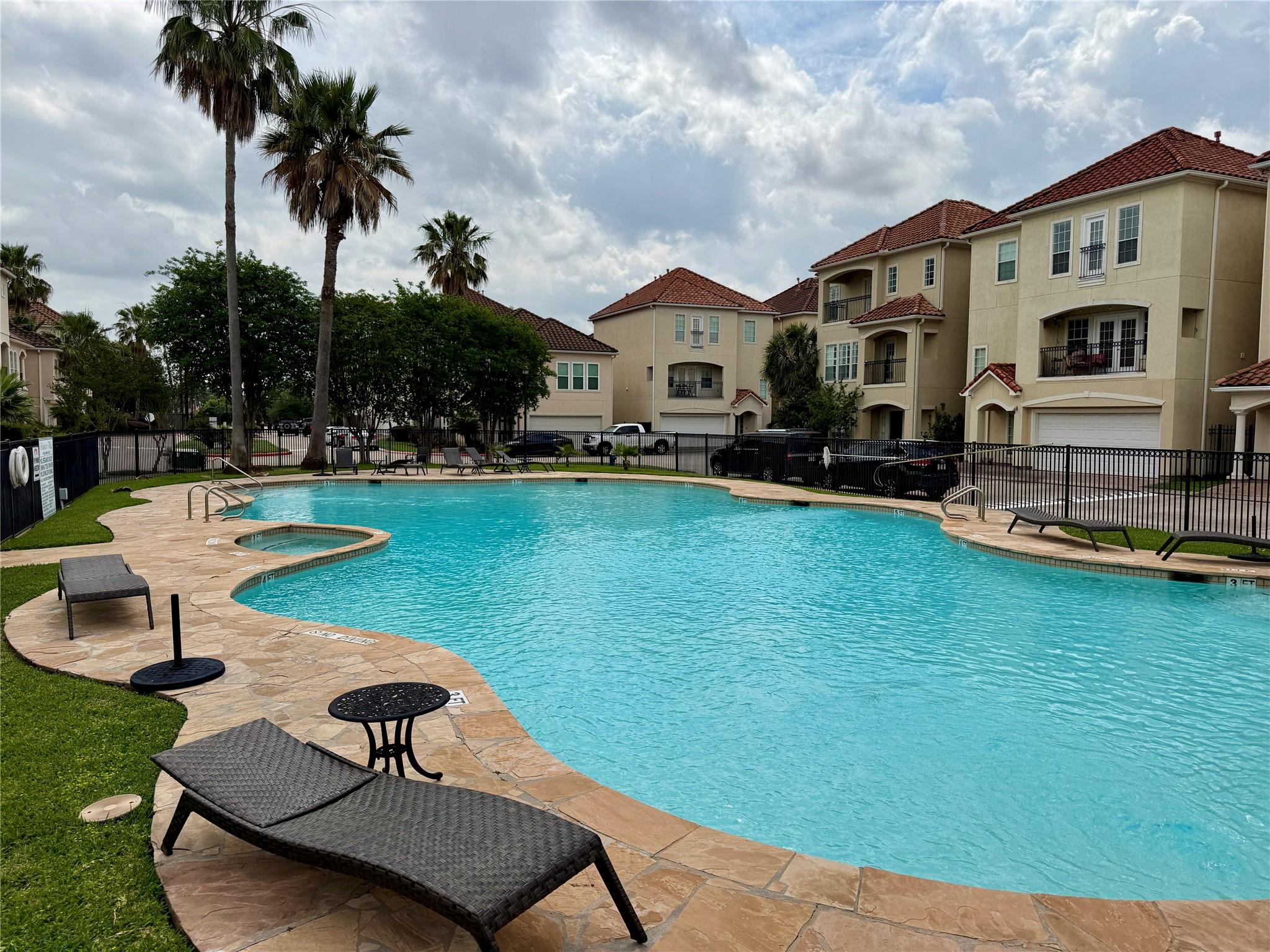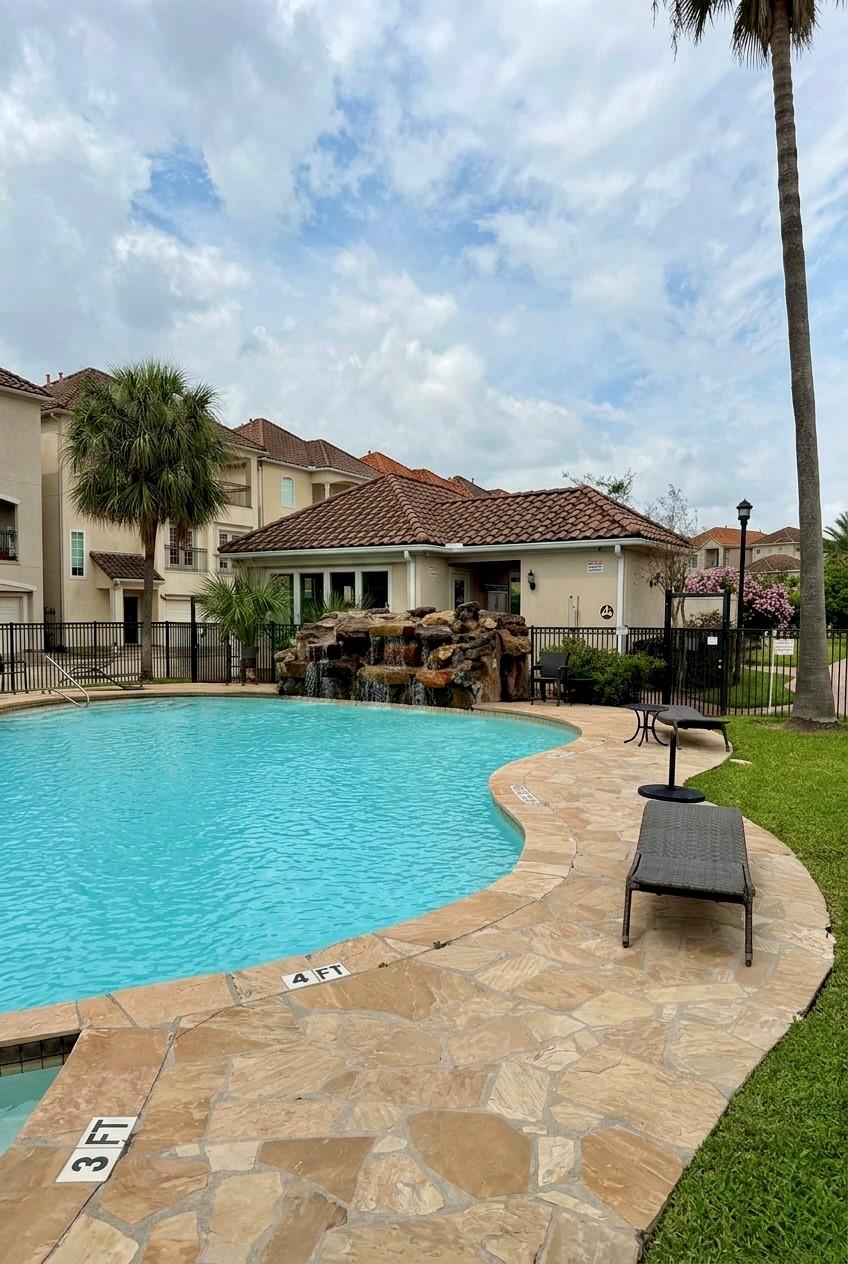 /monthNO PETS ALLOWED. This breathtaking, move-in-ready Mediterranean townhouse is an absolute must-see! Flooded with natural light through vibrant, oversized windows, the home features stunning hardwood floors throughout and a modern layout with main living and dining downstairs and three spacious bedrooms upstairs. The primary suite is a true sanctuary, complete with a luxurious jetted whirlpool tub and updated bathrooms featuring new cabinetry and vanities. Step through the grand double doors to your own private, lushly landscaped courtyard—a magnificent outdoor retreat that truly sets this property apart. Nestled within a prestigious 24-hour man-gated community, you’ll enjoy exclusive access to resort-style amenities, including a professional gym and a sparkling pool. Perfectly located near NRG Stadium, the Medical Center, and the Galleria, this home offers an unparalleled lifestyle of beauty and security. At this level of elegance, it will be gone in a flash!