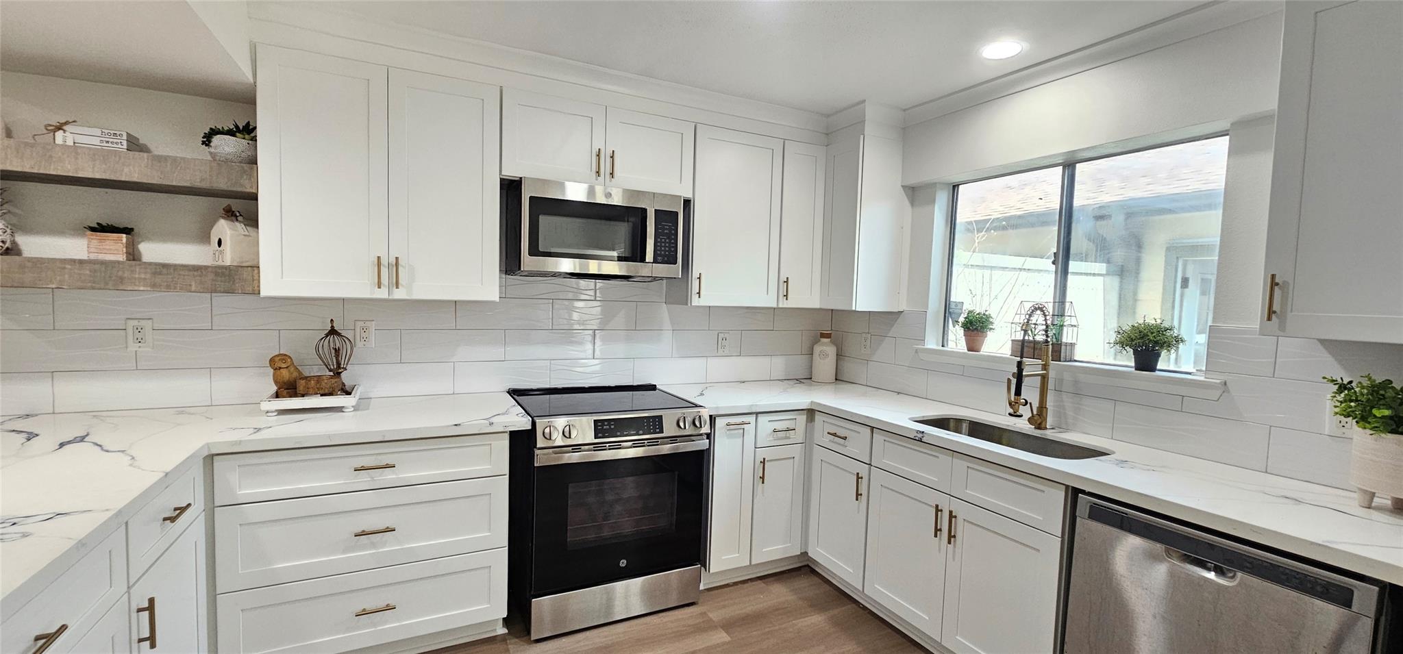 Recently updated townhome in energy corridor. Wonderful schools and close to major petroleum companies in the area. This 2 bedroom 2.5 bath town home has open concept floor plan. Kitchen open to large living area with breakfast bar is fully updated with new soft close drawers and cabinets. Corner fore place to for the warm and cozy evenings to read a book next to. Unique pet area Under the stairs for canine or feline friends to lounge around or just flr storage. As you walk up the stairs you will find two humungous bedrooms that can accomodate bed and sitting area. Lots of windows keep these bedrooms light and bright. High ceiling make it feel extra spacious. Downstairs leads to a small covered patio area through the double doors. Don't miss the storage on the right when you step out. Extra spacious garage also has room for more storage. Perfect little oasis waiting for you.