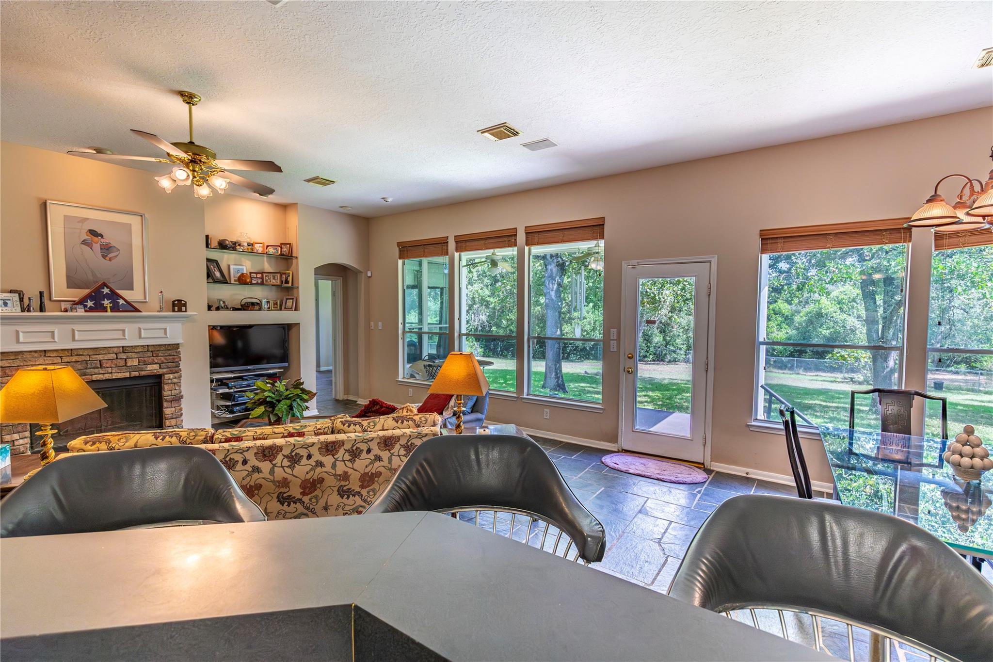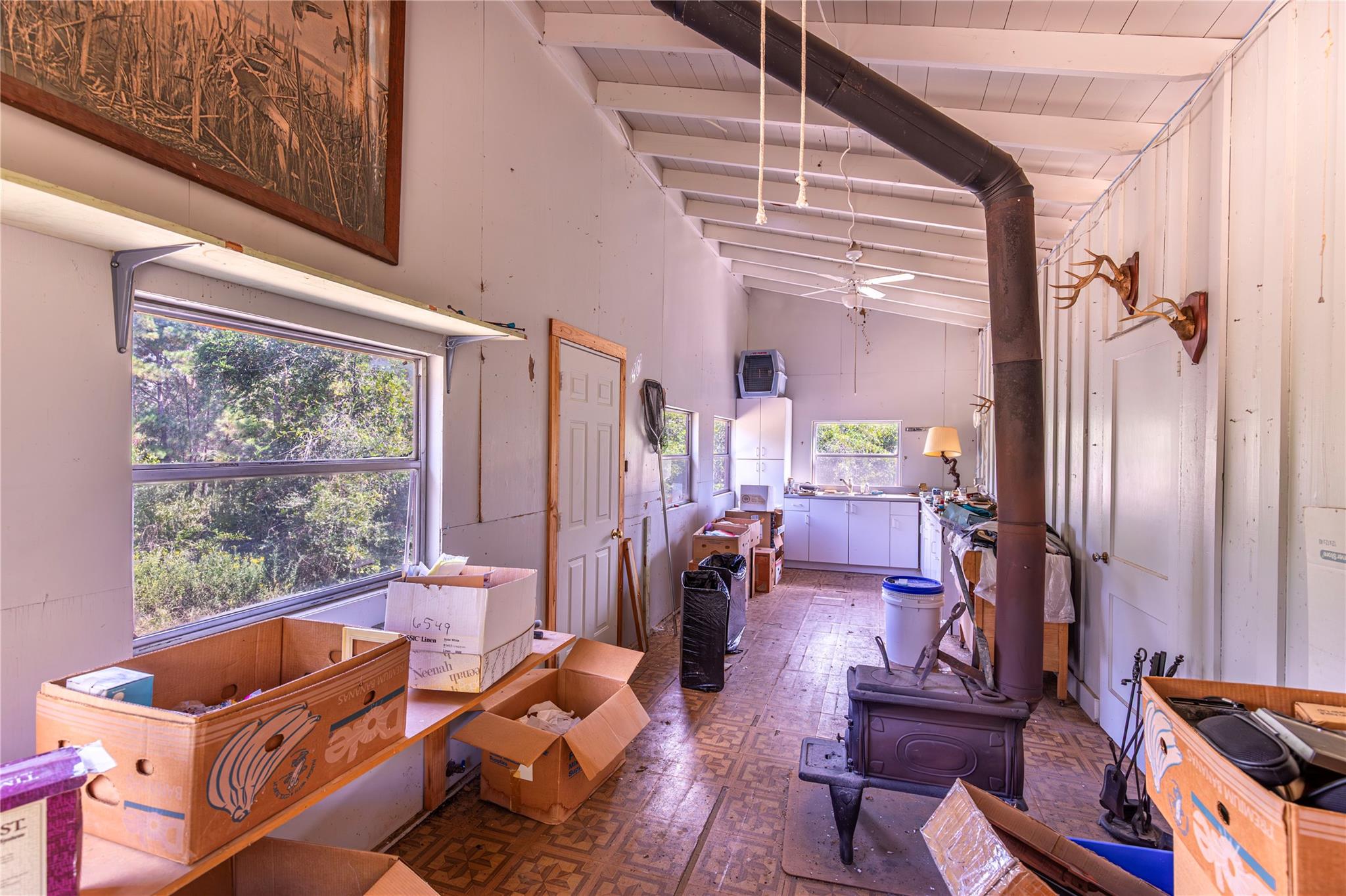 Welcome to the Quilted Trail! This rare find offers 5.95 acres of natural beauty with a perfect mix of woods with trails, a peaceful meadow, and a small pond that could be expanded. Nestled within this setting is a lovely 4-bedroom, 3-bath home featuring expansive windows designed to capture the surrounding views and bring the outdoors in. One of the standout features is the ±2,600 sq. ft. air-conditioned shop, equipped with three-phase underground electricity and a walk-in safe room. This could serve as a hobby space, workshop, or guest house. The property also includes a camp house, a chicken coop, and two fruit trees in the shaded, fully fenced backyard. With its trails, privacy, and thoughtful extras, this little estate is truly one you must see to appreciate all that the Quilted Trail has to offer.