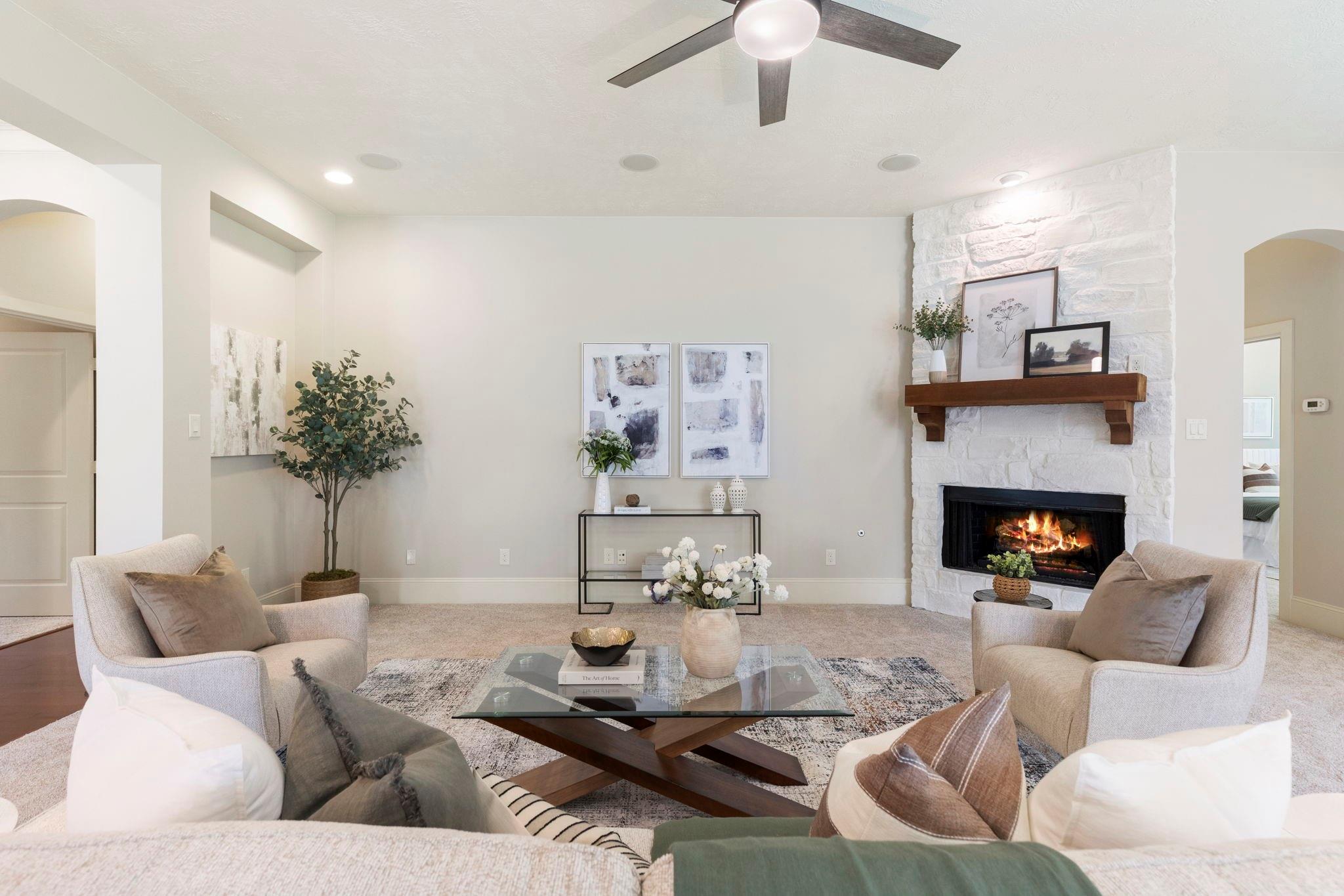 InteriorFireplace:1/Gas Connections,Gaslog FireplaceFloors:Carpet,Tile,WoodCountertop:QuartzBathroom Description:Primary Bath: Double Sinks,Primary Bath: Separate Shower,Secondary Bath(s): Tub/Shower ComboBedroom Desc:All Bedrooms Down,Primary Bed - 1st Floor,Walk-In ClosetKitchen Desc:Breakfast Bar,Island w/ Cooktop,Kitchen open to Family Room,Pantry,Pots/Pans Drawers,Soft Closing Cabinets,Walk-in PantryRoom Description:Entry,Family Room,Formal Dining,Home Office/Study,Kitchen/Dining Combo,Living Area - 1st Floor,Sun Room,Utility Room in HouseHeating:Central GasCooling:Central ElectricConnections:Electric Dryer Connections,Washer ConnectionsDishwasher:YesDisposal:YesMicrowave:YesRange:Electric Cooktop,Gas RangeOven:Single OvenEnergy Feature:Attic Vents,Ceiling Fans,Digital Program ThermostatInterior:Fire/Smoke Alarm,High Ceiling,Refrigerator Included,Water Softener - Owned