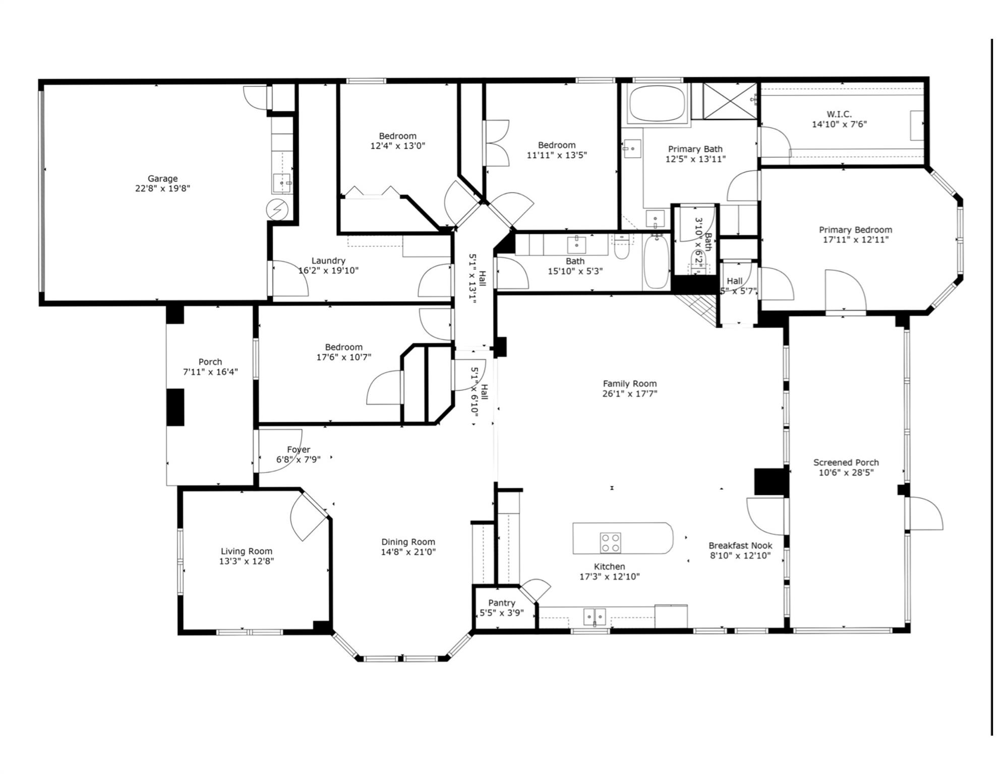 First FloorFamily Room:23 x 17Dining:12 x 12Kitchen:12 x 16Primary Bedroom:12 x 17Primary Bedroom 2:12 x 12Bedroom:11 x 12Bedroom 2:12 x 10Home Office/Study:12 x 12Exterior Porch/Balcony:30 x 10