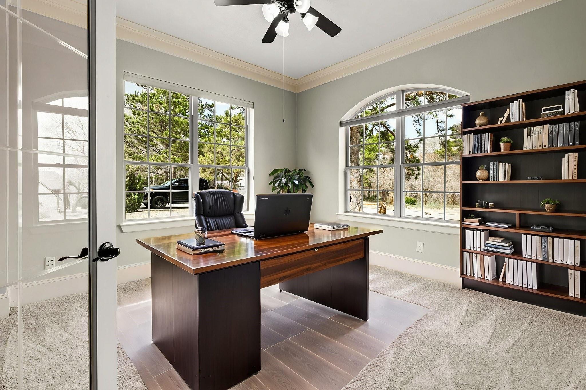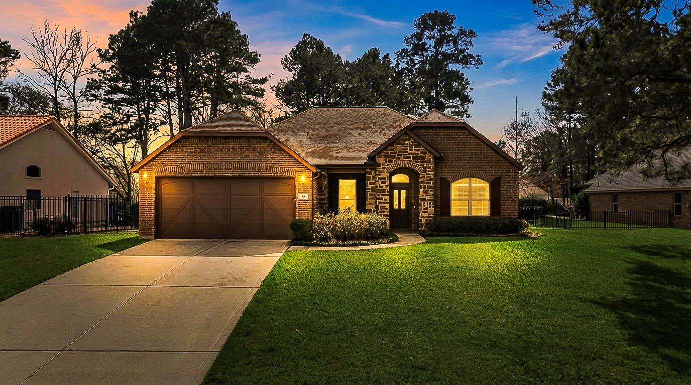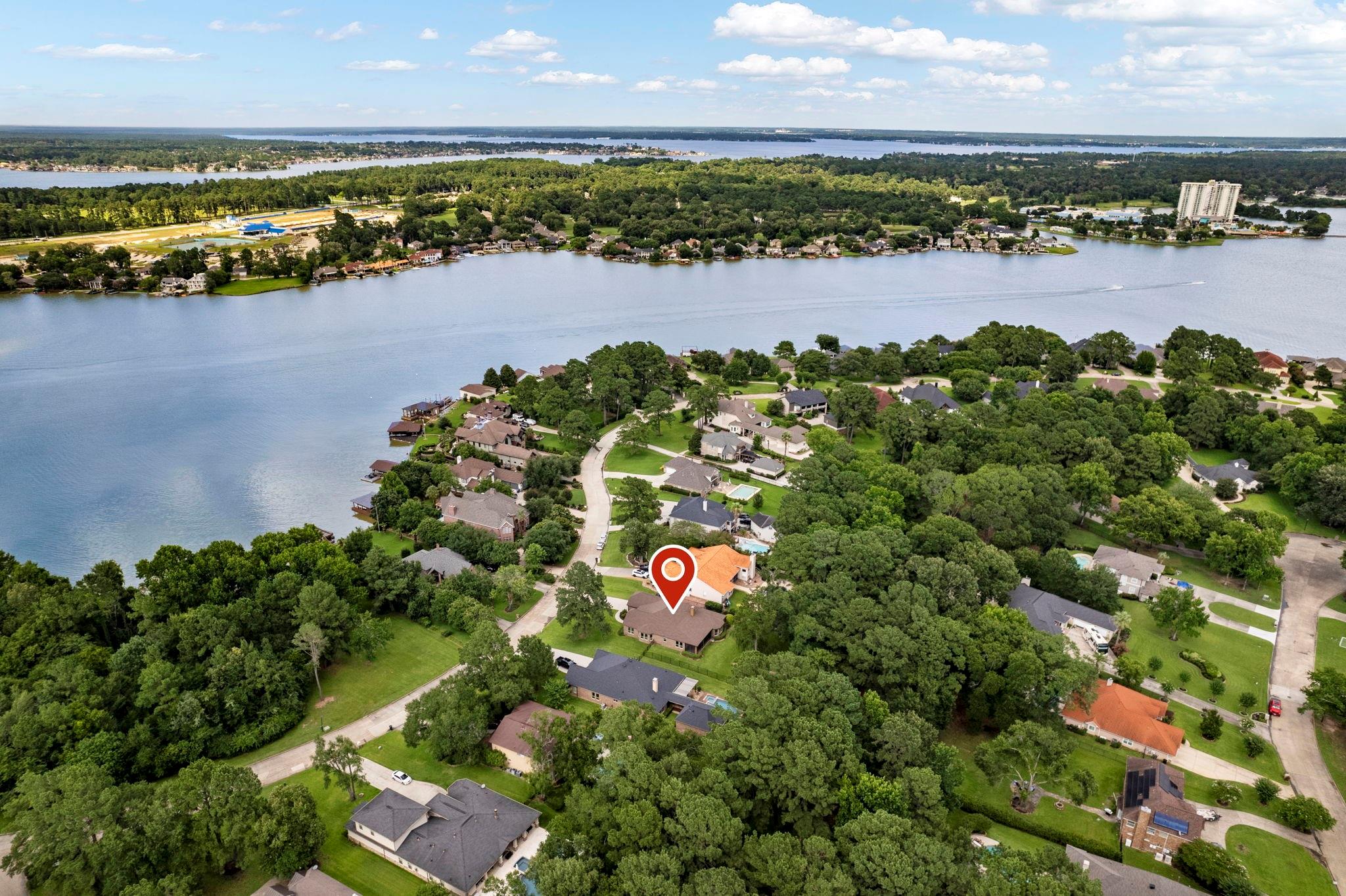 Located in the gated, Waterfront community of Del Lago Estates, this one-story home on 1/2 acre with Water Views offers refined comfort w/ Lake Access. Featuring 4 bedrooms, 2 baths, the home showcases high ceilings, rich walnut flooring & updated lighting. French doors open to a private office, while the formal dining room includes custom built-ins & natural light. The open-concept kitchen & living area is ideal for entertaining, featuring a large island w/ quartz countertops, electric range w/ gas option, glass-front cabinetry, recessed lighting & storage. Fresh interior paint & new carpet enhance the Move-In Ready appeal. The primary suite offers private access to the huge 30x10 screened porch overlooking the fenced backyard w/ mature trees. Add’l highlights include a whole-home Generator & water softener (over 20k value) & staircase attic access. Residents enjoy a Private Boat Ramp & Green Space. Watch the video tour to experience this Luxury Home & Lake Lifestyle! MISD schools!