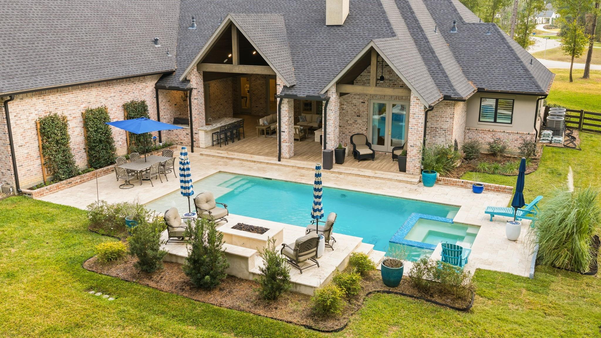 ExteriorRoof:CompositionFoundation:SlabPrivate Pool:YesPrivate Pool Desc:Gunite,Heated,In Ground,Pool With Hot Tub AttachedExterior Type:Stone,StuccoLot Description:Cul-De-Sac,WoodedGarage Carport:Additional Parking,Auto Garage Door Opener,Boat Parking,Golf Cart Garage,RV Parking,WorkshopGarage Size:28.9X40.1Water Sewer:Aerobic,Public Water,WellFront Door Face:SouthArea Pool:YesExterior:Back Green Space,Back Yard,Back Yard Fenced,Covered Patio/Deck,Outdoor Fireplace,Outdoor Kitchen,Porch,Sprinkler System,Workshop