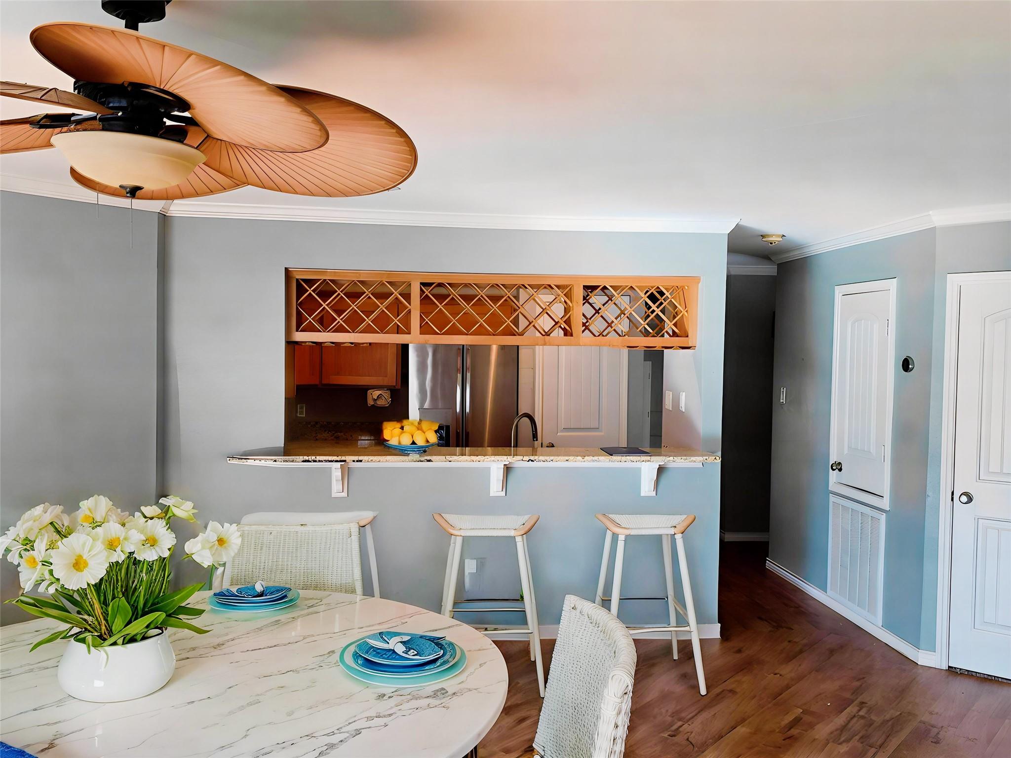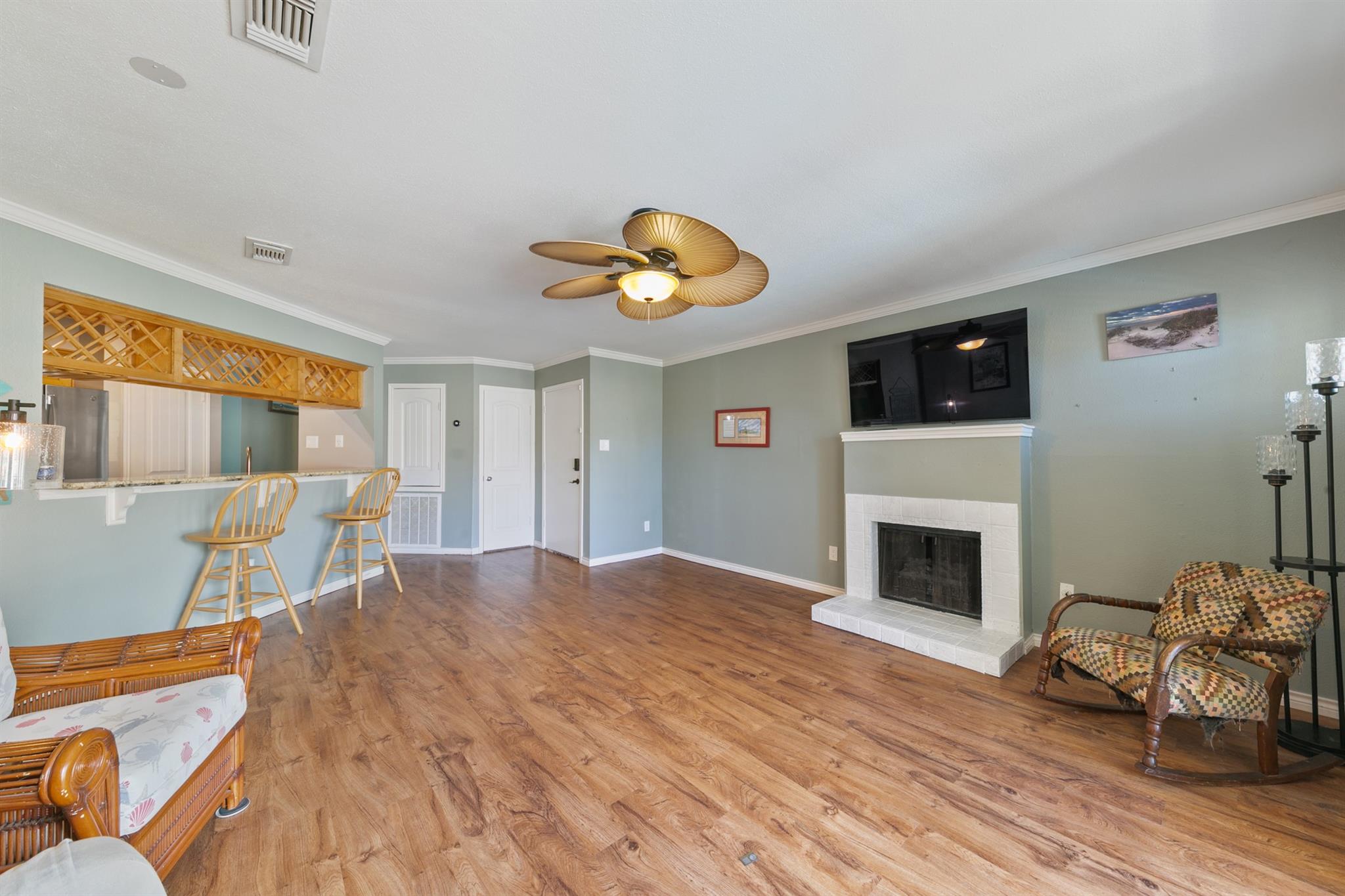 Gulf Views from every Window! You can be on the beach in minutes. Enjoy the sounds of the ocean from your second story Private Balcony or common balcony on the first floor. The pool/outdoor cooking are a great spaces to cool down with loved ones. Conveniently, 2 assigned parking places near the stairs. Private storage area on the ground floor to keep bikes, beach toys, etc. In the cooler months Cozy up by the fireplace. This open concept living kitchen area highlighted with crown molding are perfect for entertaining. The kitchen has custom cabinets, granite counter tops, illuminated wine rack, and stainless steel appliances. The primary bedroom has walk in closet and en suite. There are Updated doors throughout the Condo. The 2nd bedroom has a Murphy bed for convenience. The 2 bathrooms has custom cabinetry, tile, and granite. The full-size utility has stack-able washing machine and drier. HVAC replaced 2023 This is a gated community/no short term rentals- very exclusive environment.