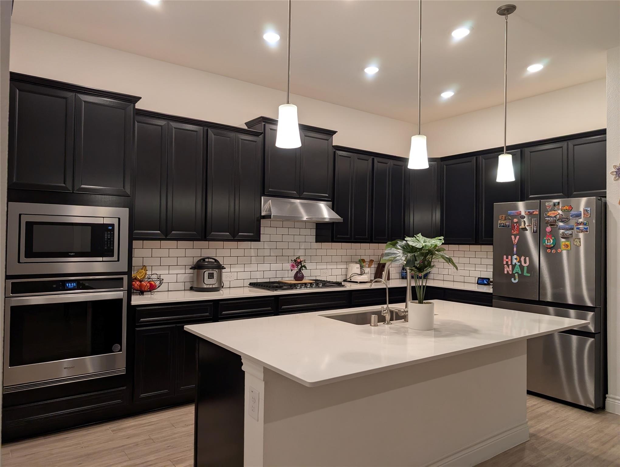 InteriorFireplace:1Floors:Carpet,Tile,VinylCountertop:QuartzBathroom Description:Primary Bath: Double Sinks,Primary Bath: Separate Shower,Primary Bath: Tub/Shower ComboBedroom Desc:2 Bedrooms Down,Primary Bed - 1st FloorKitchen Desc:Island w/o Cooktop,Kitchen open to Family Room,Pantry,Walk-in PantryRoom Description:Family Room,Home Office/Study,Living/Dining Combo,Utility Room in HouseHeating:Central GasCooling:Central ElectricConnections:Electric Dryer Connections,Gas Dryer Connections,Washer ConnectionsDishwasher:YesDisposal:YesCompactor:NoMicrowave:YesRange:Gas RangeOven:Electric OvenIce Maker:NoEnergy Feature:HVAC>13 SEER,Radiant Attic BarrierInterior:Alarm System - Owned,Dryer Included,Refrigerator Included,Washer Included