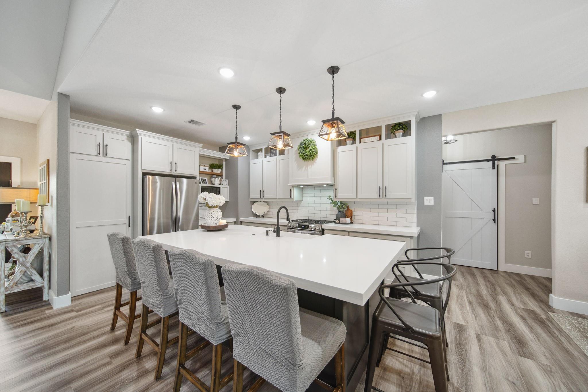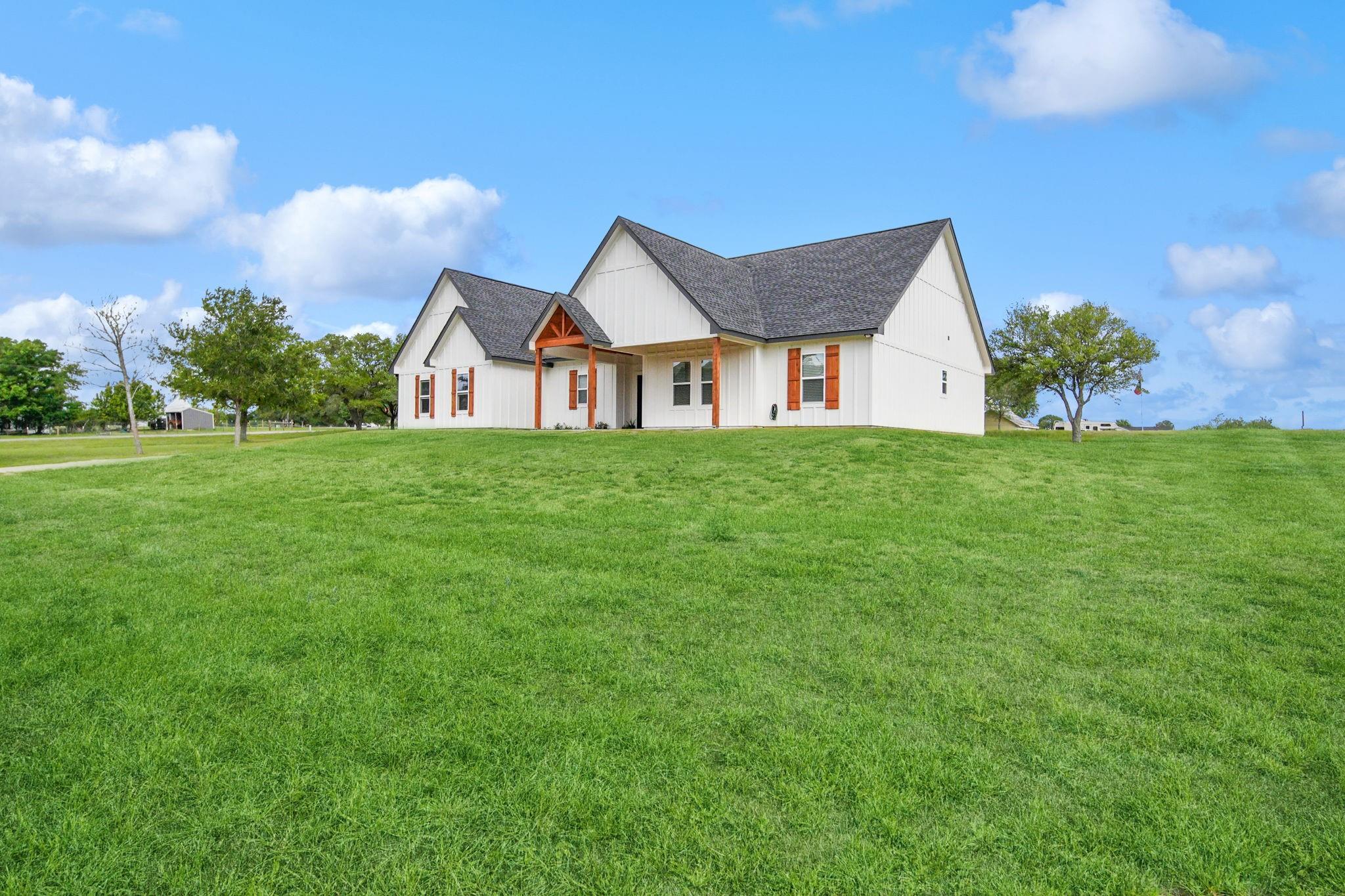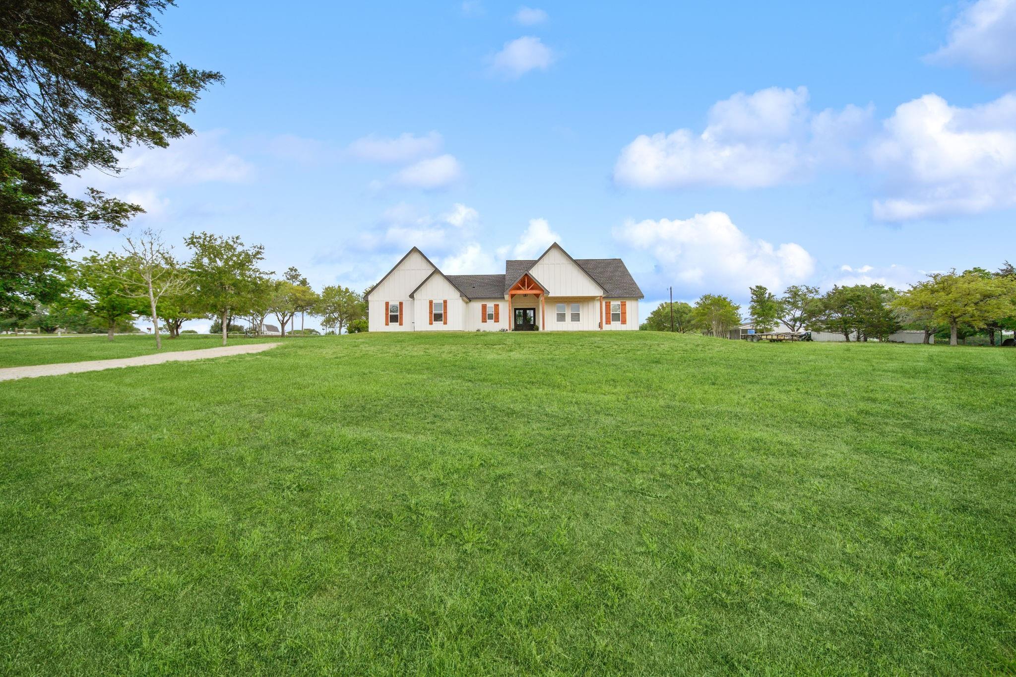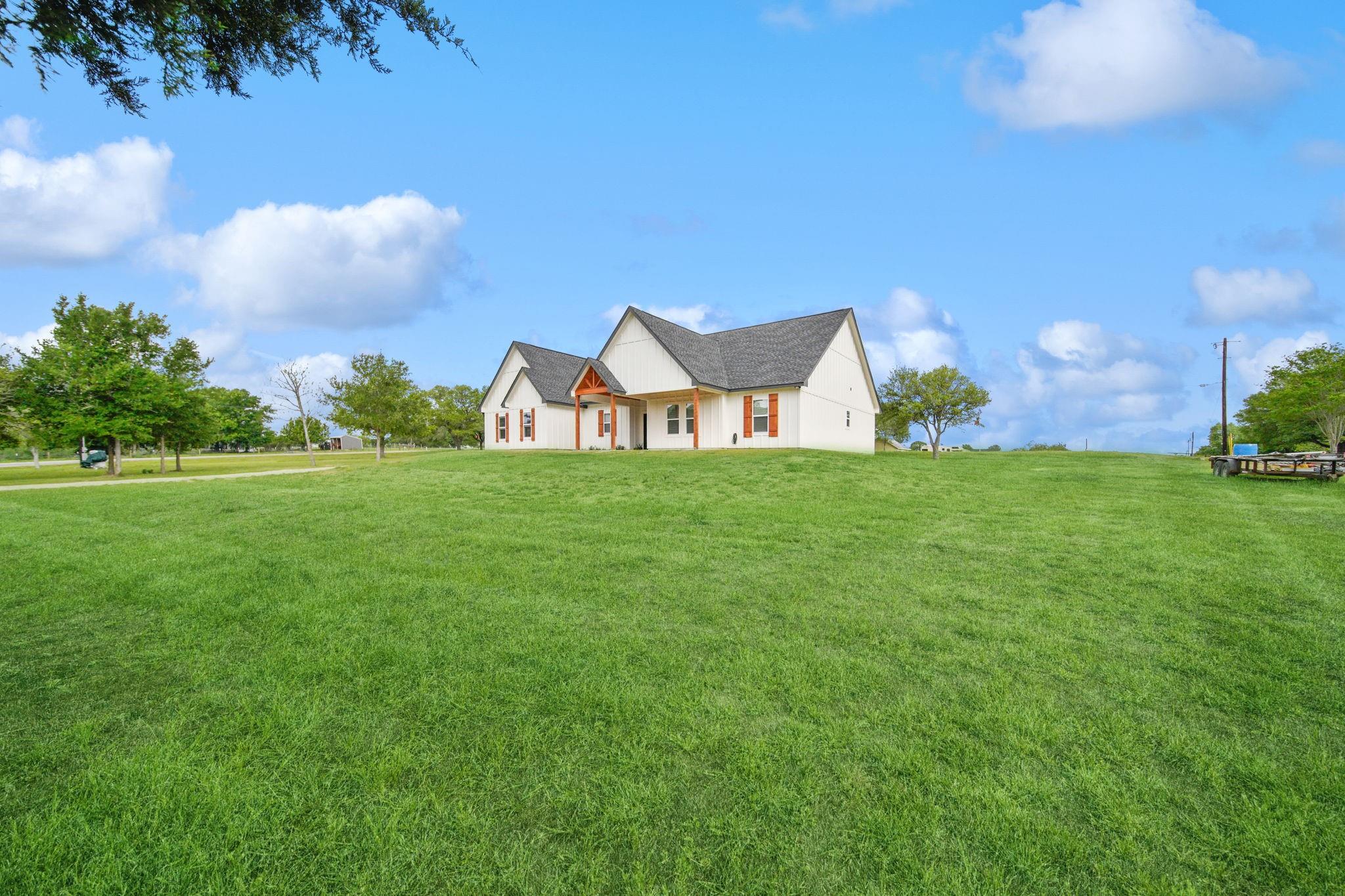 Nestled in the back of the desirable Bluebonnet Hills neighborhood is this new, custom-built home boasting 2,750 sq ft with 5 bedrooms and 3 bathrooms on a beautifully treed 1.47 acres. The vaulted ceiling highlights the open living, kitchen, and dining area, while several windows showcase the views of the greenery outside. There is plenty of room for everyone with the 5 bedrooms, including an upstairs room with vaulted ceilings. The large master bedroom is a true retreat with the marble-tiled accent wall, glass-enclosed shower, and chandelier over a spacious soaking tub in the bathroom suite. Located off of the modern and elegant kitchen is a massive, walk-in butler's pantry offering storage and meal prep out of sight. Future owners will also enjoy the large utility room with a sink and space for an additional refrigerator. This spacious and newly-built home on acreage in Bluebonnet Hills is turn-key and ready for new owners to make it their own. Schedule your private showing today!