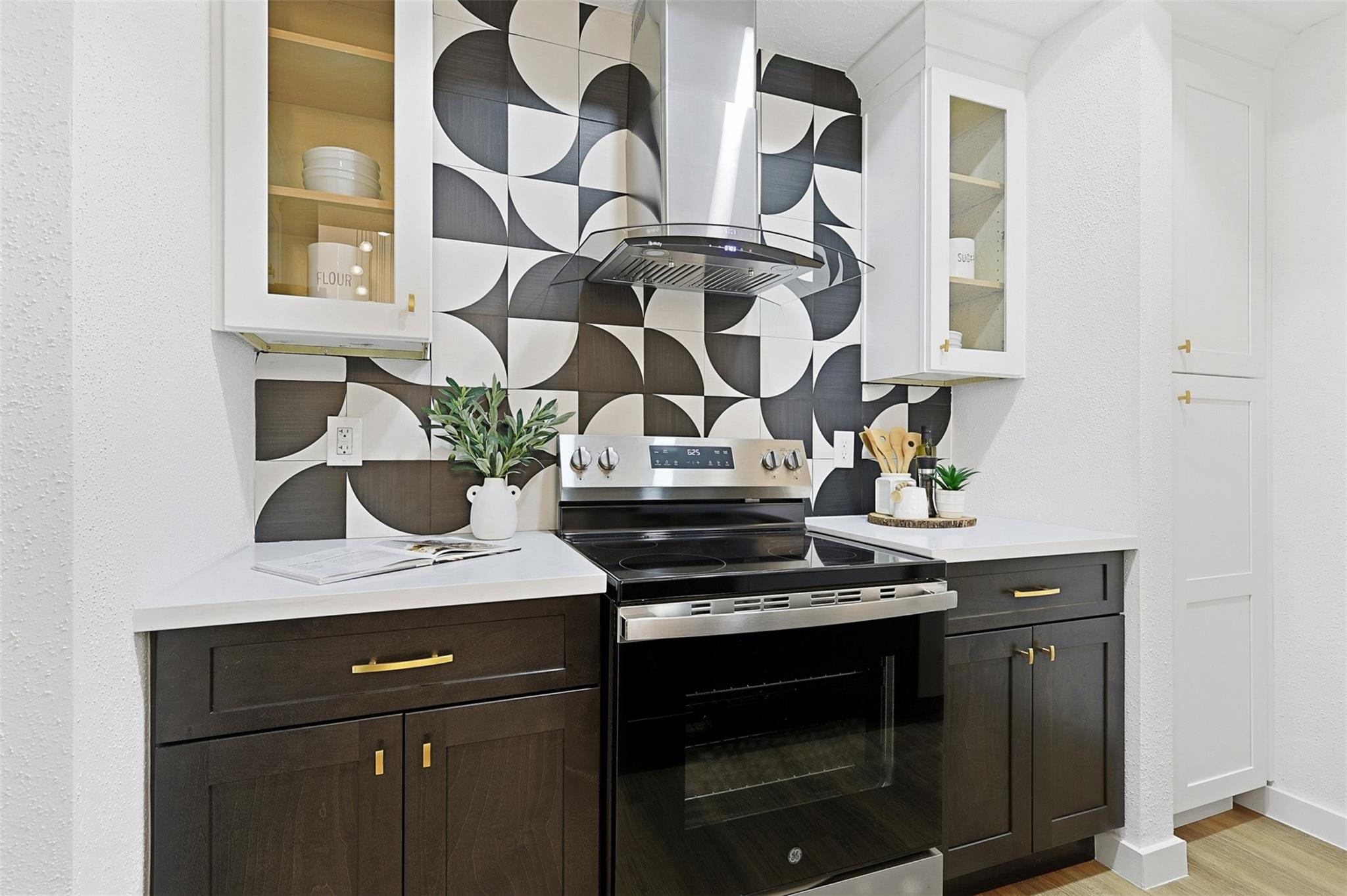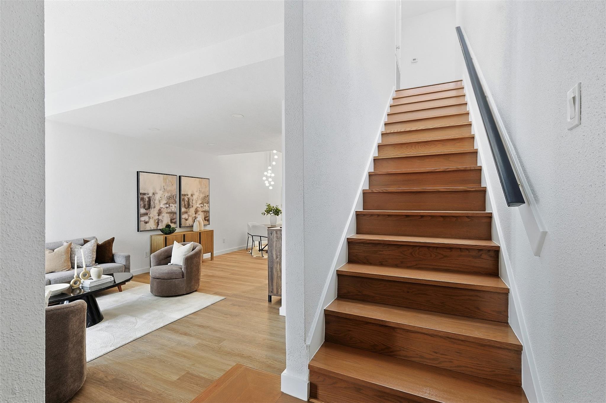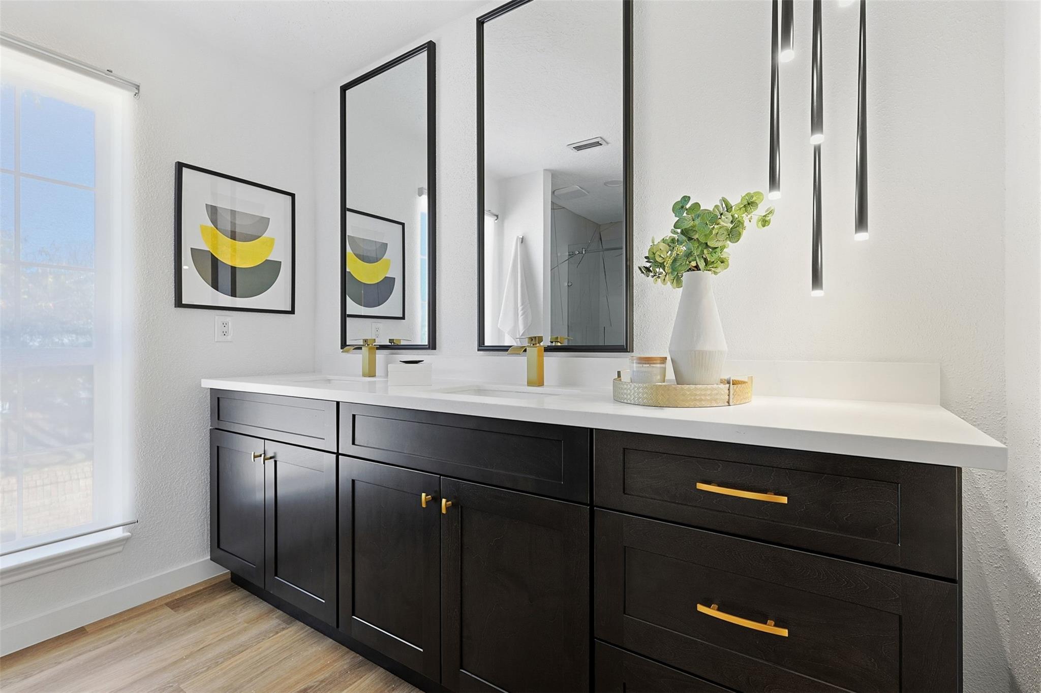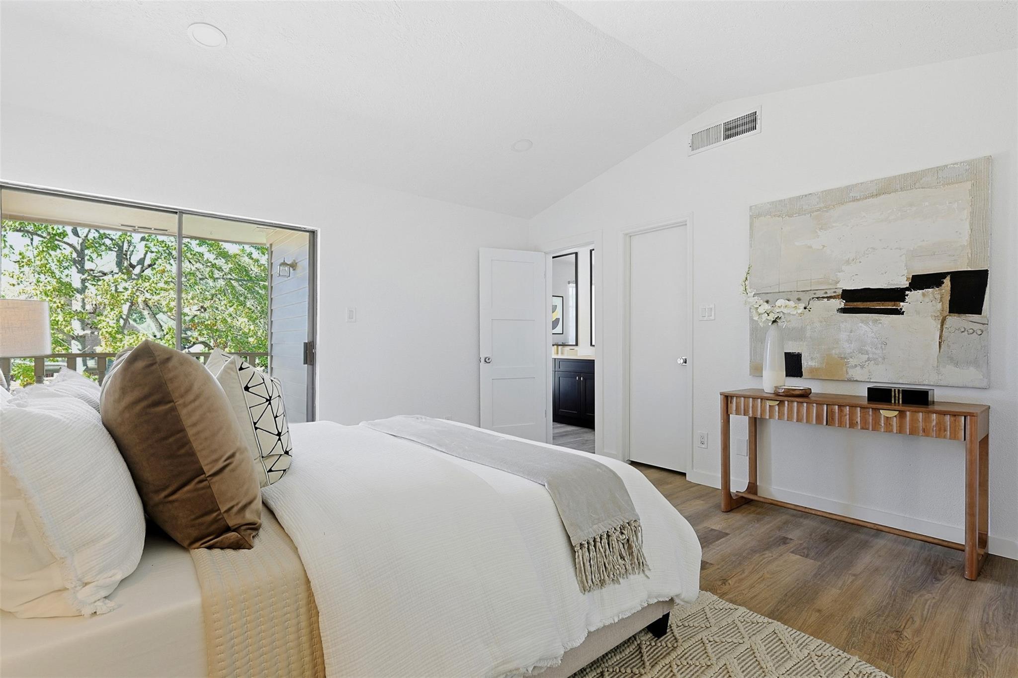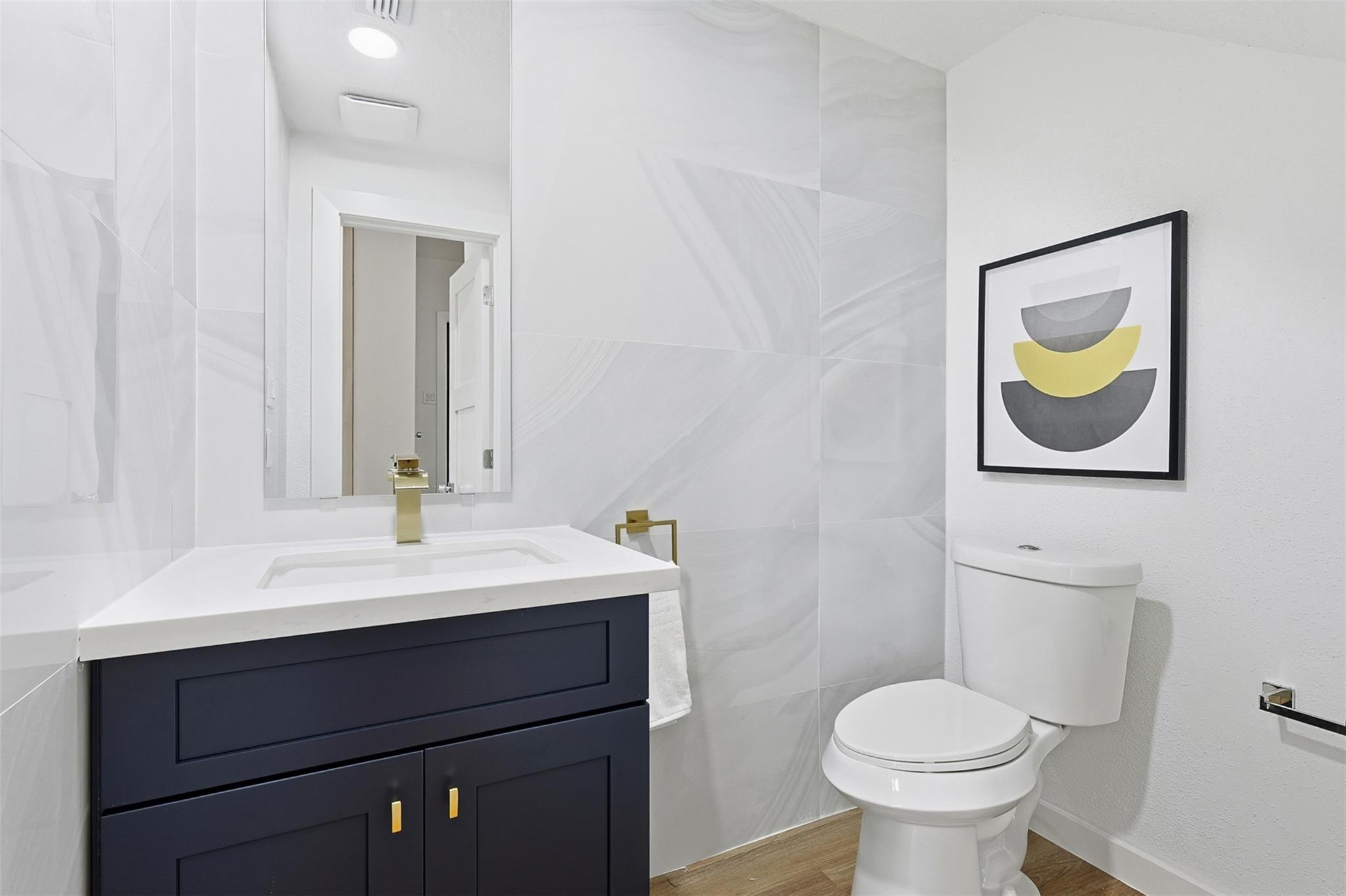 Exquisitely updated home in the highly sought after community of The Bradford! In an unmatched location, this pristine home sits in a quiet oasis, minutes away from fine dining, shopping and entertainment. A lovely foyer leads to the living room, with wooden floors and a beautiful fireplace. French doors facing the front open to a lovely terrace, and tall ceilings bring openness to the area. The completely new kitchen has beautiful soft closing cabinets and quartz countertops. The contrasting backsplash enhances the huge island. Adjacent to the living room, there is a completely renovated, conveniently located half bathroom. A stunning wood stair leads to the spacious main bedroom with a generously sized closet and an enchanting little balcony. The luxurious ensuite main bathroom has a double sink with quartz countertop, modern accent lighting and glass enclosed shower. The second floor also has a well-sized secondary bedroom, and another completely renovated bathroom.
