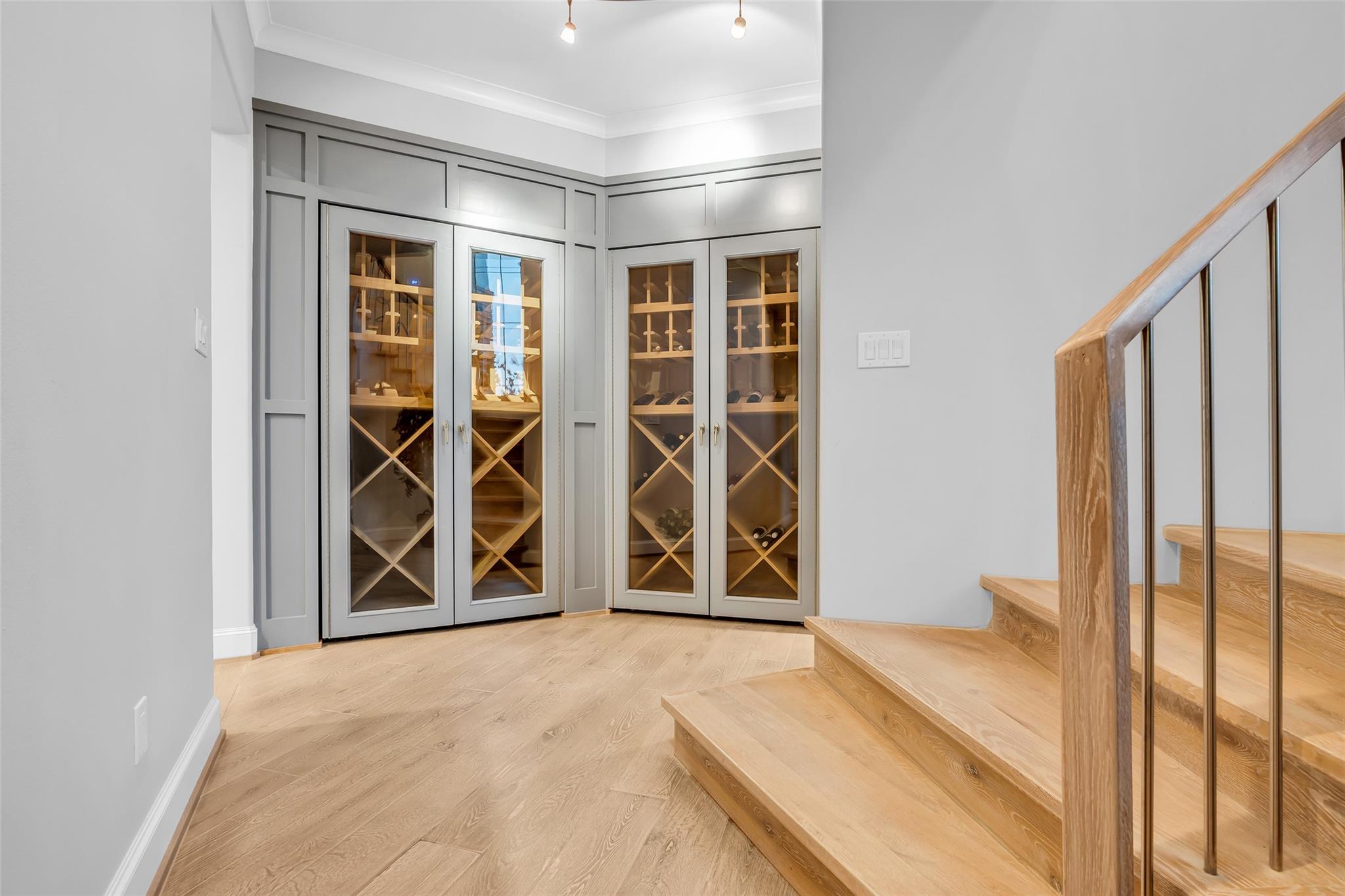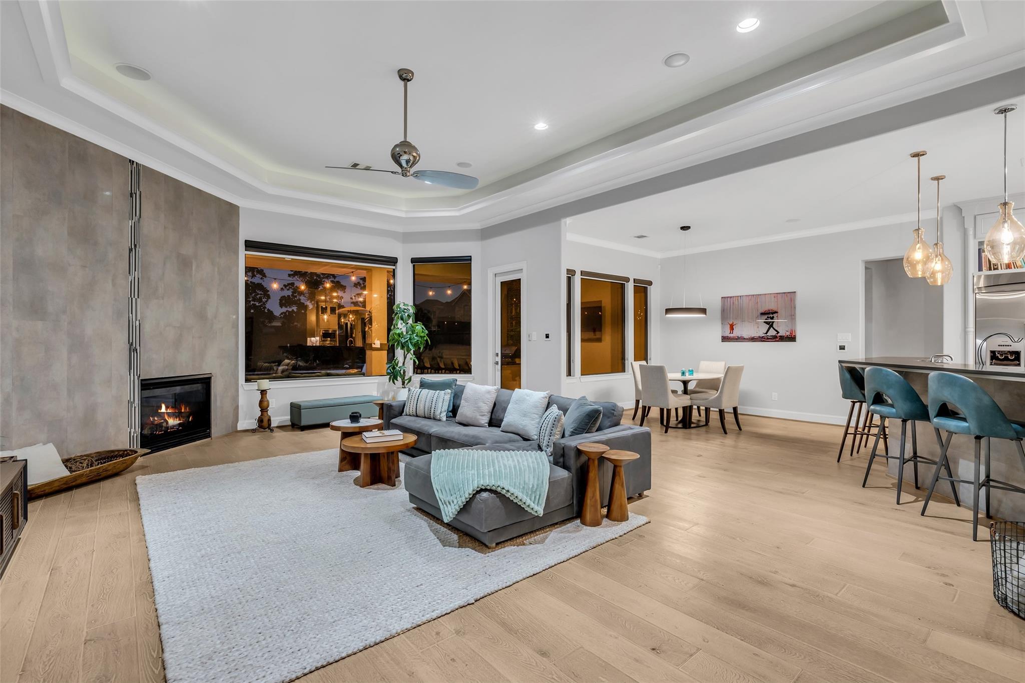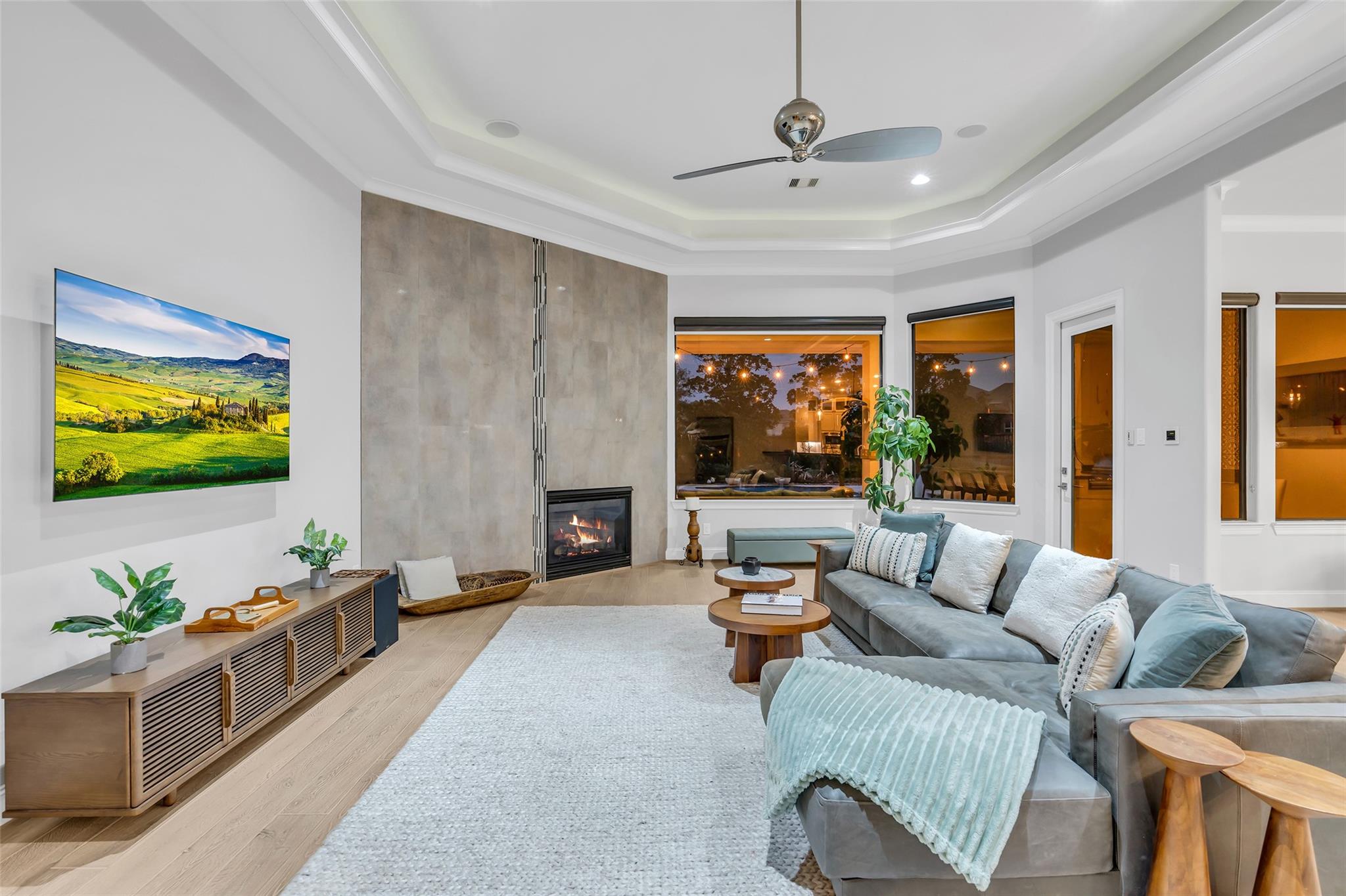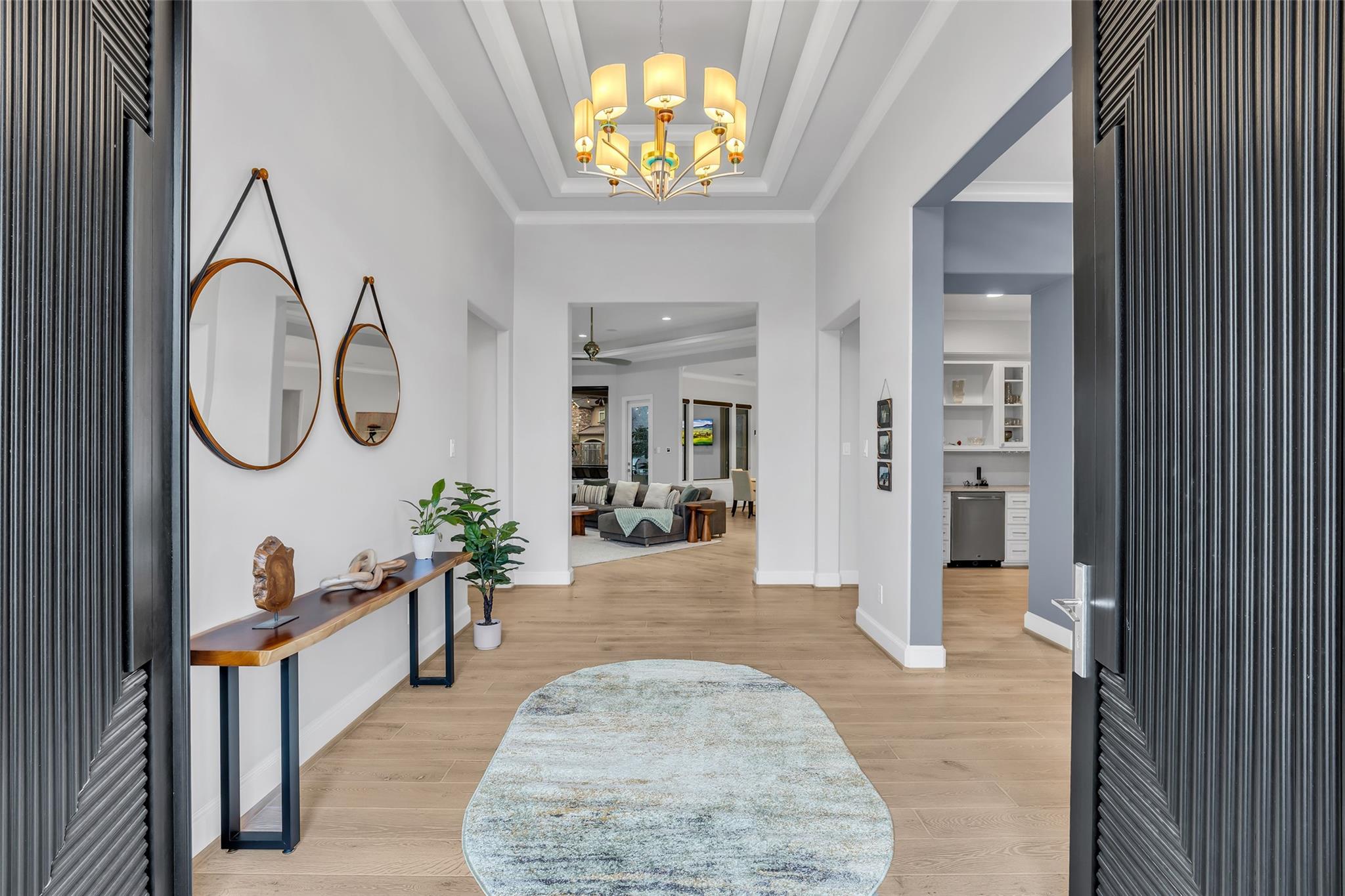 Striking custom home on an oversized corner lot in Creeks of Augusta Pines blends clean lines with thoughtful modern design. Features 4 bedrooms, 4 full and 2 half baths, including a private first-floor guest suite. It offers French oak floors, soaring ceilings, whole-house audio, water filtration, a generator, and a state-of-the-art theater with a 110” screen and dedicated cinema seating. The gourmet island kitchen showcases Thermador appliances, two sinks, display cabinets, and a walk-in pantry. Includes a full bar and dual wine cellars for 300+ bottles. The luxurious primary suite includes a sitting area, fireplace, spa-like bath with steam shower, oversized jetted tub, dual sinks, and an expansive closet. Outdoors, enjoy a covered patio with a summer kitchen, pool, spa, firepit, mosquito system, sprinklers, and a 3-car garage. Experience luxury living with all these amenities in one stunning property.