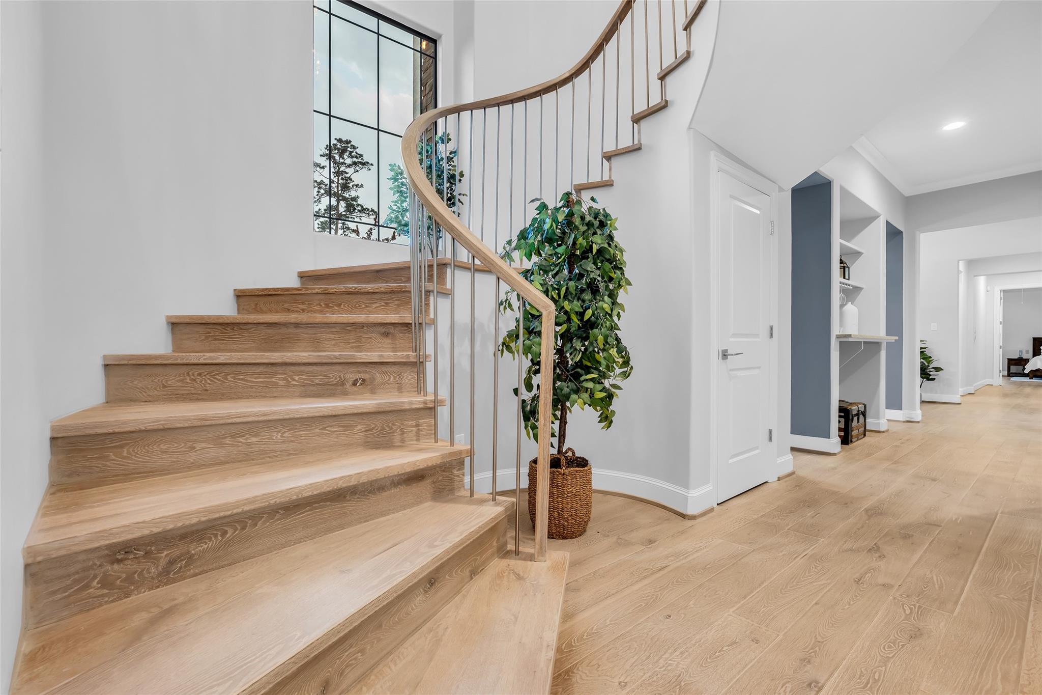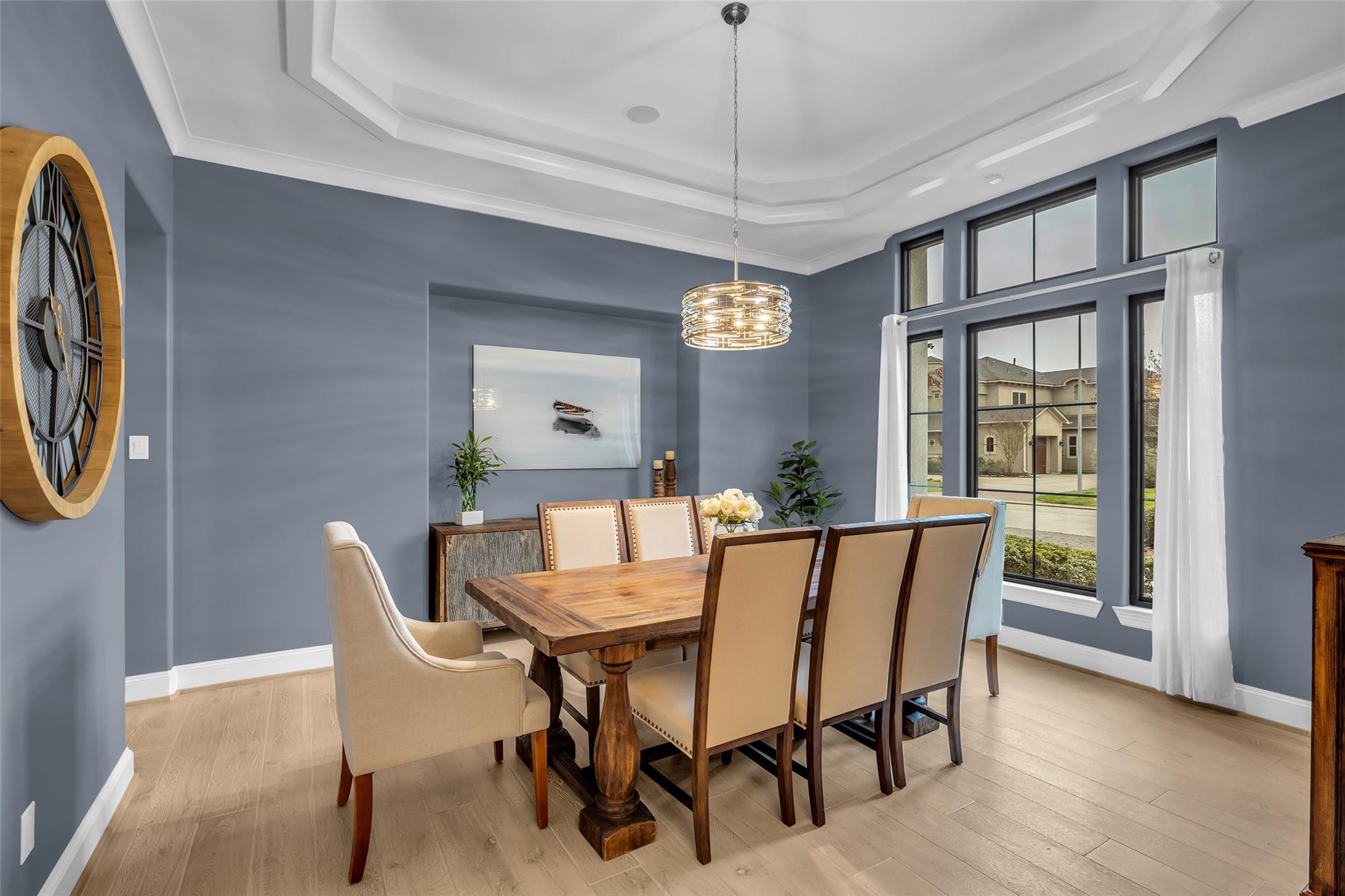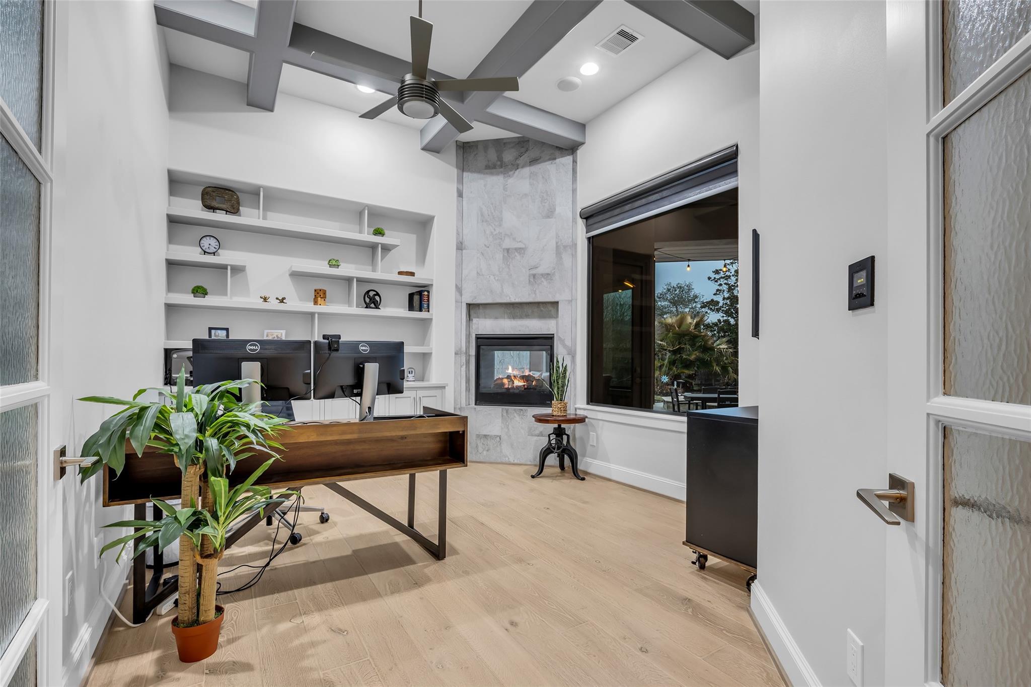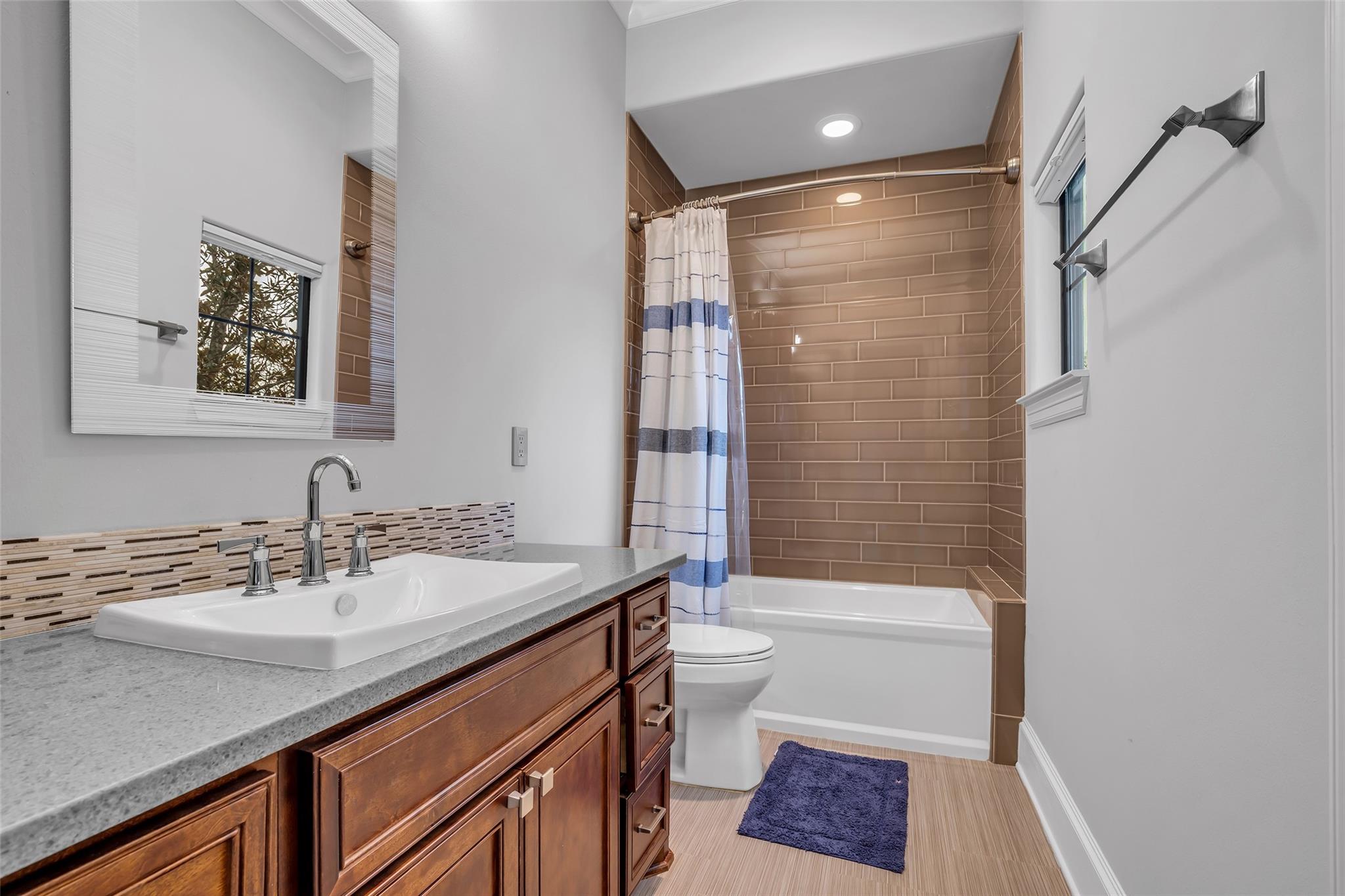 Striking custom home on an oversized corner lot in Creeks of Augusta Pines blends clean lines with thoughtful modern design. Features 4 bedrooms, 4 full and 2 half baths, including a private first-floor guest suite. It offers French oak floors, soaring ceilings, whole-house audio, water filtration, a generator, and a state-of-the-art theater with a 110” screen and dedicated cinema seating. The gourmet island kitchen showcases Thermador appliances, two sinks, display cabinets, and a walk-in pantry. Includes a full bar and dual wine cellars for 300+ bottles. The luxurious primary suite includes a sitting area, fireplace, spa-like bath with steam shower, oversized jetted tub, dual sinks, and an expansive closet. Outdoors, enjoy a covered patio with a summer kitchen, pool, spa, firepit, mosquito system, sprinklers, and a 3-car garage. Experience luxury living with all these amenities in one stunning property.
