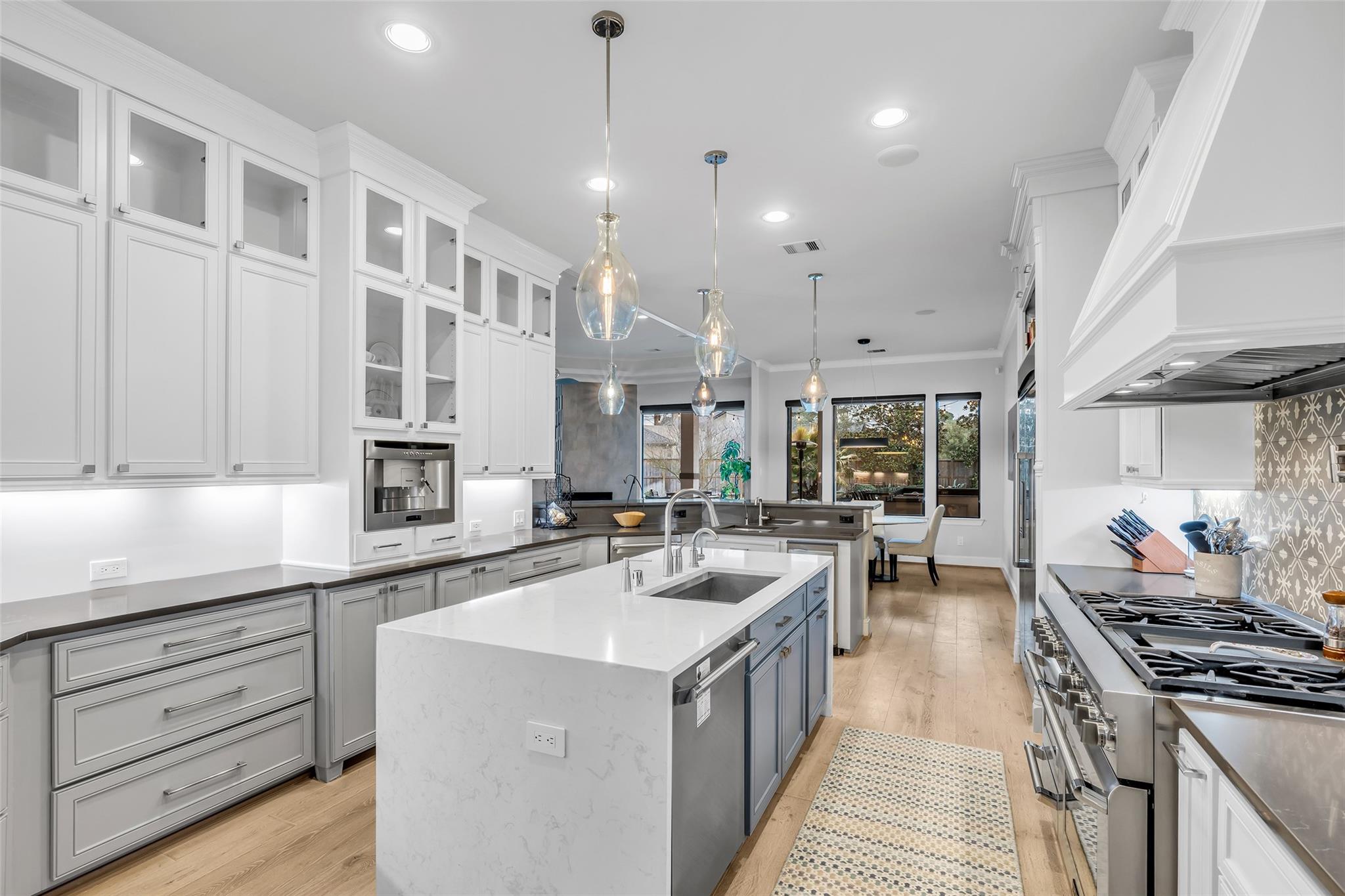 InteriorFireplace:3/Gaslog FireplaceFloors:Carpet,Tile,WoodBathroom Description:Full Secondary Bathroom Down,Half Bath,Primary Bath: Double Sinks,Primary Bath: Jetted Tub,Primary Bath: Separate Shower,Secondary Bath(s): Tub/Shower Combo,Vanity AreaBedroom Desc:2 Bedrooms Down,2 Bedrooms Up,En-Suite Bath,Primary Bed - 1st Floor,Sitting Area,Walk-In ClosetKitchen Desc:Breakfast Bar,Island w/o Cooktop,Kitchen open to Family Room,Pot Filler,Reverse Osmosis,Second Sink,Soft Closing Cabinets,Soft Closing Drawers,Under Cabinet Lighting,Walk-in PantryRoom Description:Breakfast Room,Entry,Family Room,Formal Dining,Gameroom Up,Guest Suite,Home Office/Study,Library,Living Area - 1st Floor,Media,Utility Room in HouseHeating:Central GasCooling:Central Electric,ZonedConnections:Electric Dryer Connections,Gas Dryer Connections,Washer ConnectionsDishwasher:YesDisposal:YesCompactor:NoMicrowave:YesRange:Gas RangeOven:Convection Oven,Double Oven,Freestanding Oven,Gas OvenIce Maker:NoEnergy Feature:Attic Vents,Ceiling Fans,Digital Program Thermostat,Generator,High-Efficiency HVAC,Insulated/Low-E windows,Insulation - Spray-Foam,Tankless/On-Demand H2O HeaterInterior:Alarm System - Owned,Crown Molding,Fire/Smoke Alarm,Formal Entry/Foyer,High Ceiling,Refrigerator Included,Spa/Hot Tub,Water Softener - Owned,Window Coverings,Wine/Beverage Fridge,Wired for Sound