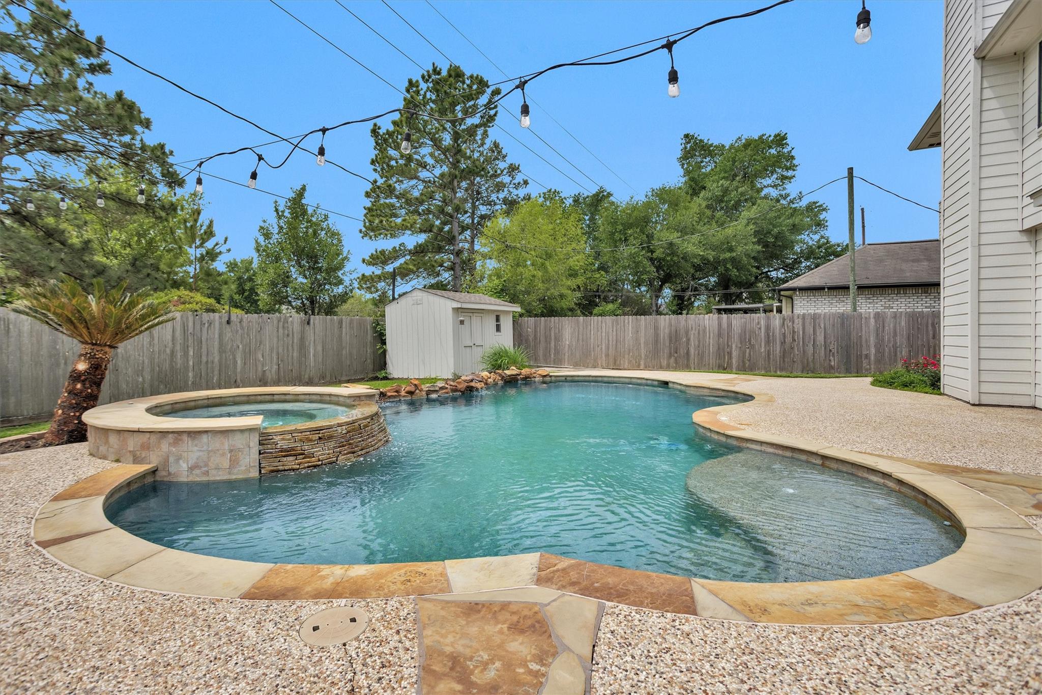 ExteriorRoof:CompositionFoundation:SlabPrivate Pool:YesPrivate Pool Desc:Gunite,Heated,In Ground,Pool With Hot Tub AttachedExterior Type:Brick,WoodLot Description:Subdivision LotWater Sewer:Water DistrictArea Pool:YesExterior:Back Yard,Back Yard Fenced,Patio/Deck,Side Yard,Spa/Hot Tub,Sprinkler System,Storage Shed