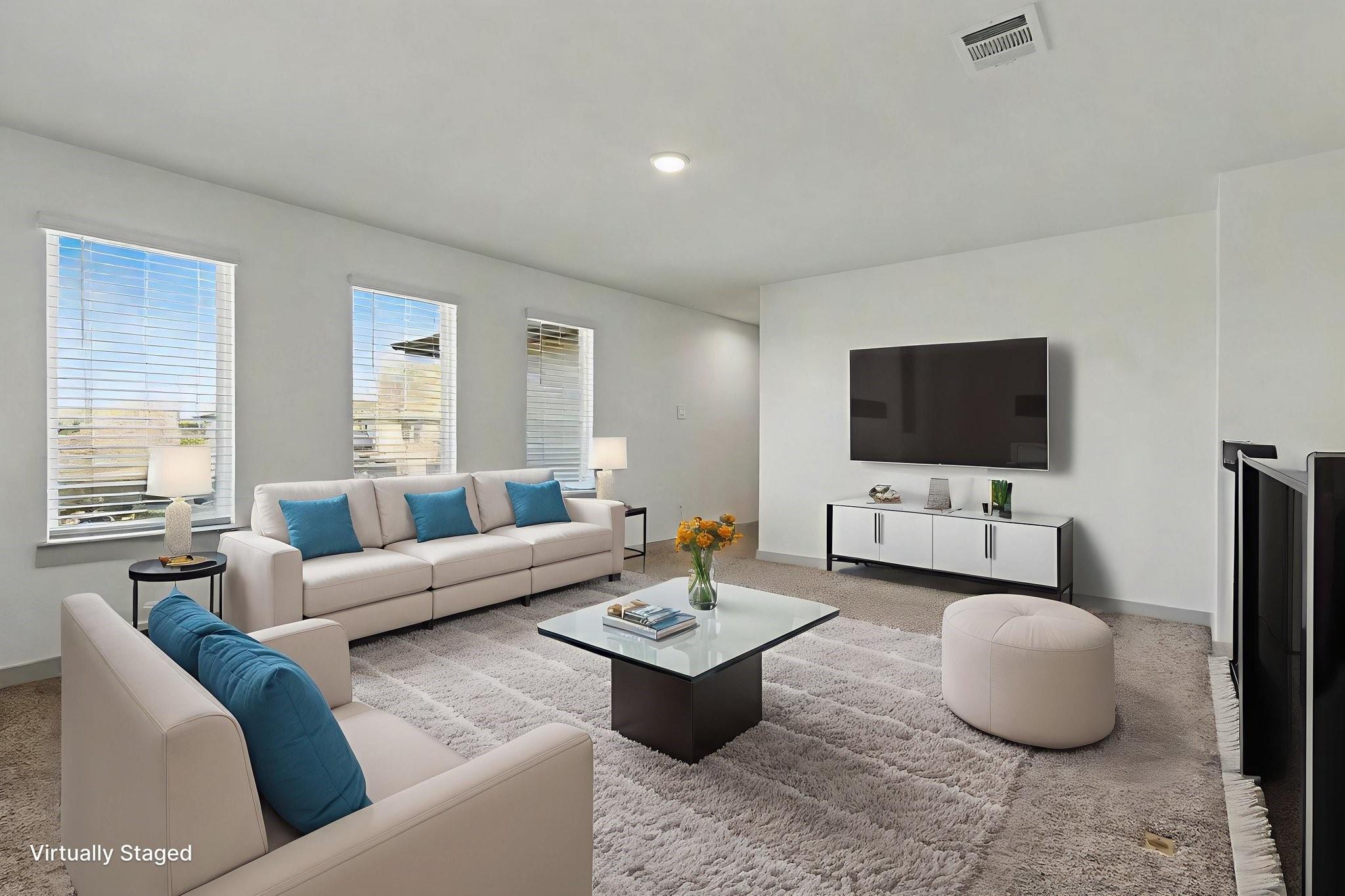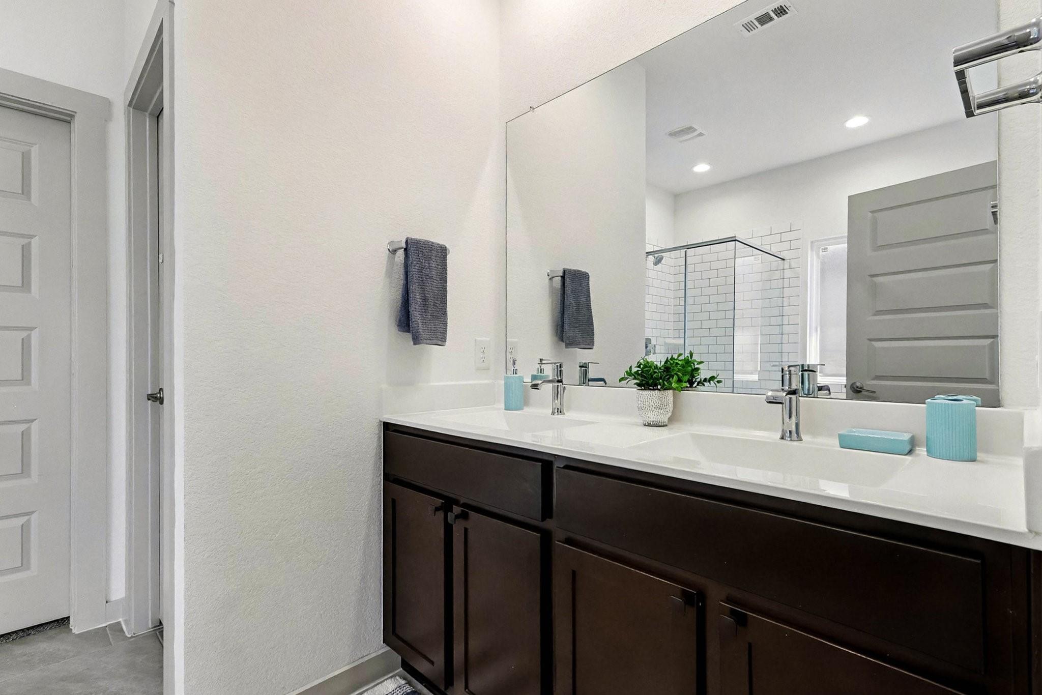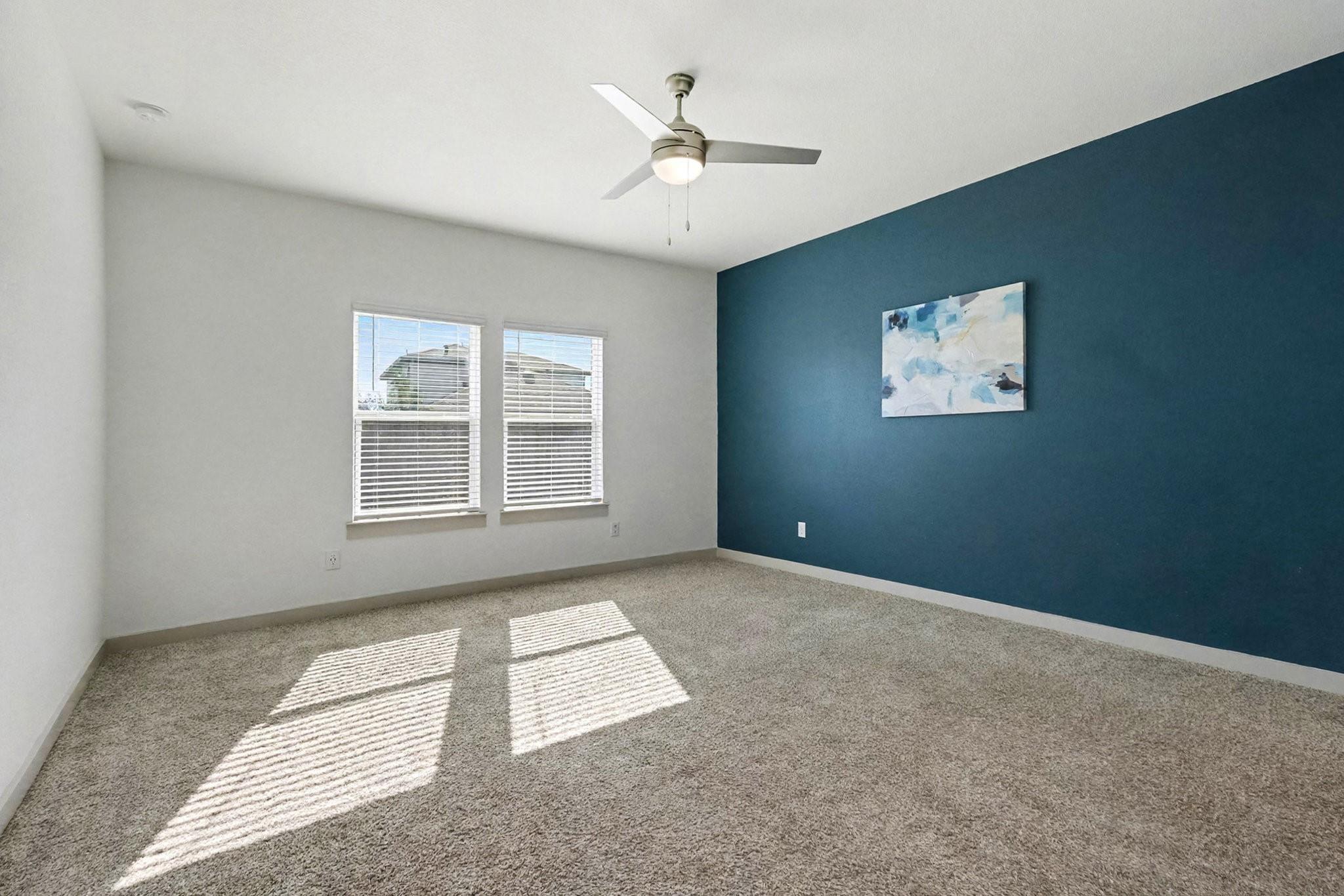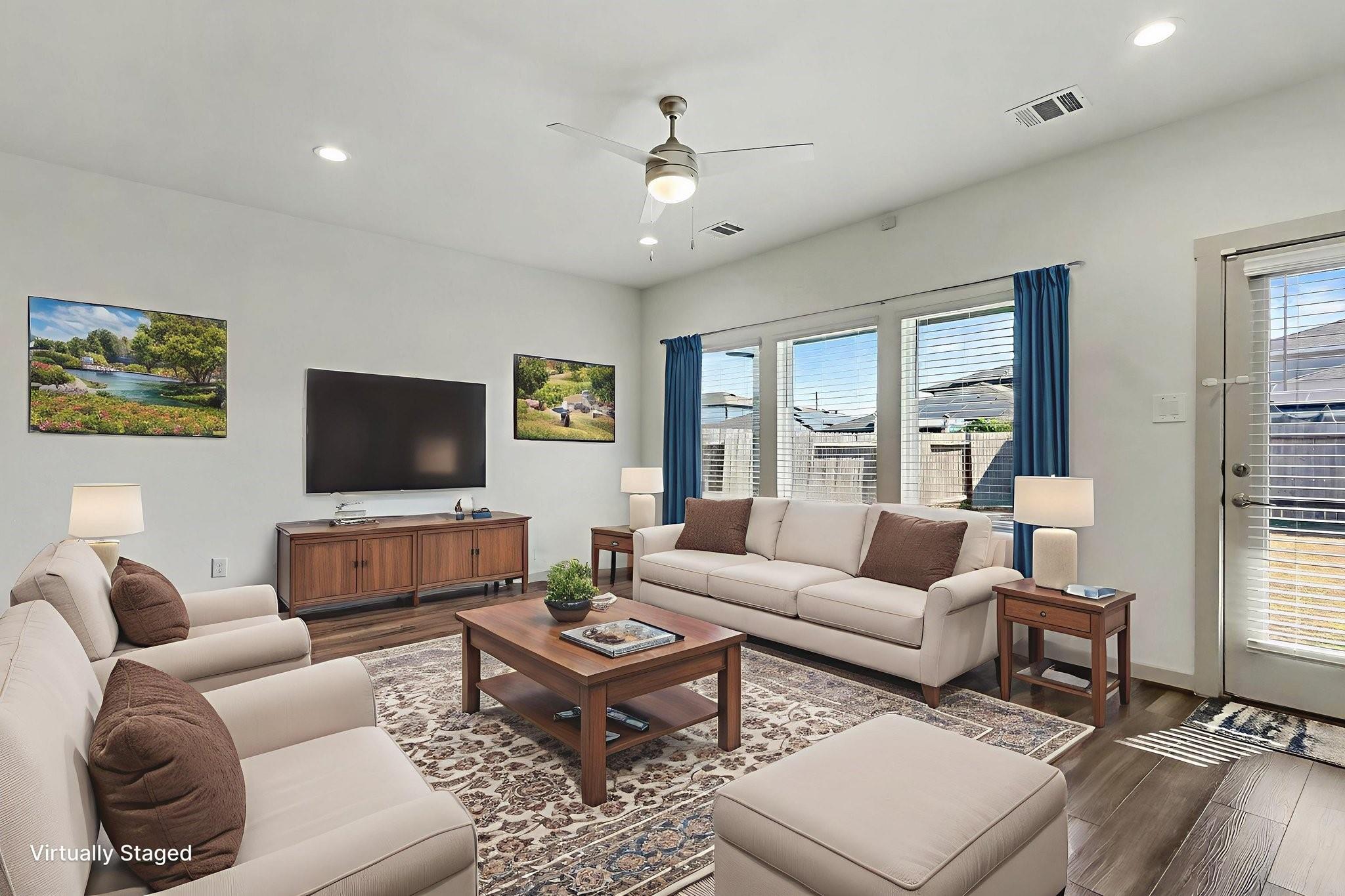 IMMACULATE 4 bedroom, 3 full bath home in popular Richmond, TX! Eco-friendly solar panels let the new owner enjoy lower electric bills and energy savings! Featuring BOTH an Owner's Suite AND a Guest Suite on the first floor, this two-story home boasts upgraded vinyl plank flooring downstairs and carpet in bedrooms. The open-concept family room flows into a gourmet kitchen with quartz countertops, tile backsplash, tall cabinets, drinking water filtration system, stainless steel appliances, and a BRAND NEW stove. The owner's suite includes a dual-sink vanity, soaking tub, separate shower, and huge walk-in closet. Upstairs, enjoy a game room, two secondary bedrooms, and a third full bath. Outside, enjoy BBQs under your covered patio and a large backyard which has a full sprinkler system. Modern tankless water heater, Smart Home system, and great community amenities with a pool, splash pad, and more! THIS HOME FEELS BRAND NEW! Super convenient location, easy access to the Westpark Tollway!