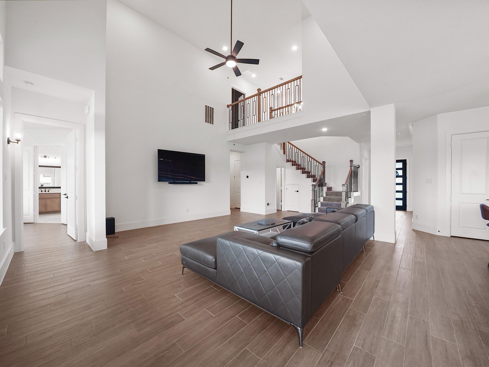 Welcome to this impressive Cane Island home on a quiet cul-de-sac, offering 5 bedrooms, 4.5 baths, and a 3-car tandem garage. A soaring foyer with wood-look tile floors leads into an open layout where the family room, dining area, and chef’s kitchen come together seamlessly. The kitchen delights with granite countertops, a generous island, double ovens, gas cooktop, and walk-in pantry. A private home office at the front of the home provides a quiet retreat for work or study. The main level also includes the spacious primary suite with a spa-like bath and a secondary bedroom with its own ensuite—perfect for guests or multigenerational living. Upstairs, enjoy a large game room, separate media room designed for entertainment and relaxation, and 3 additional bedrooms! Step outside to a covered patio and expansive backyard ready for gatherings. Residents of Cane Island enjoy resort-style pools, a fitness center, pickleball, café, trails, and vibrant community events.