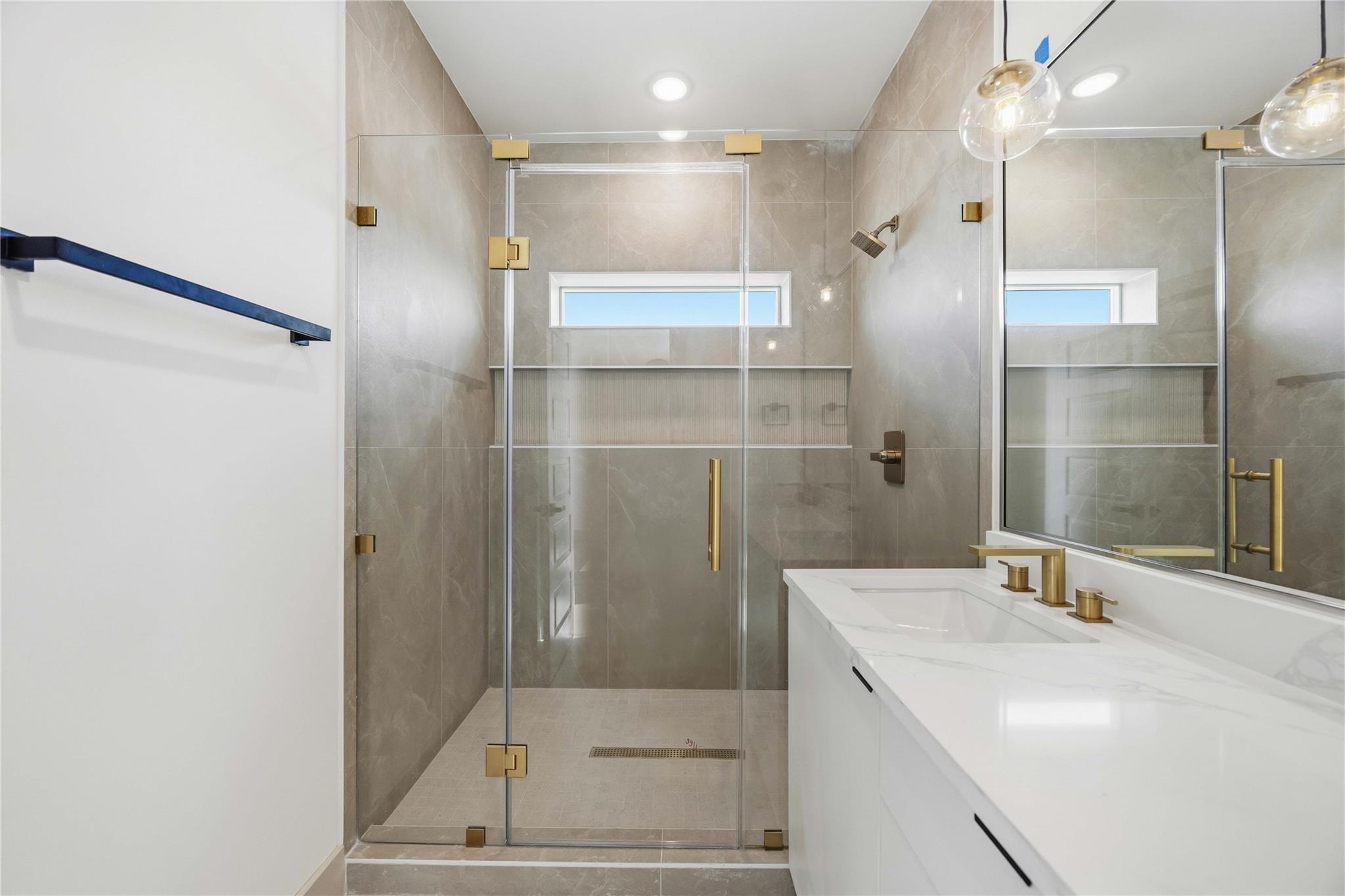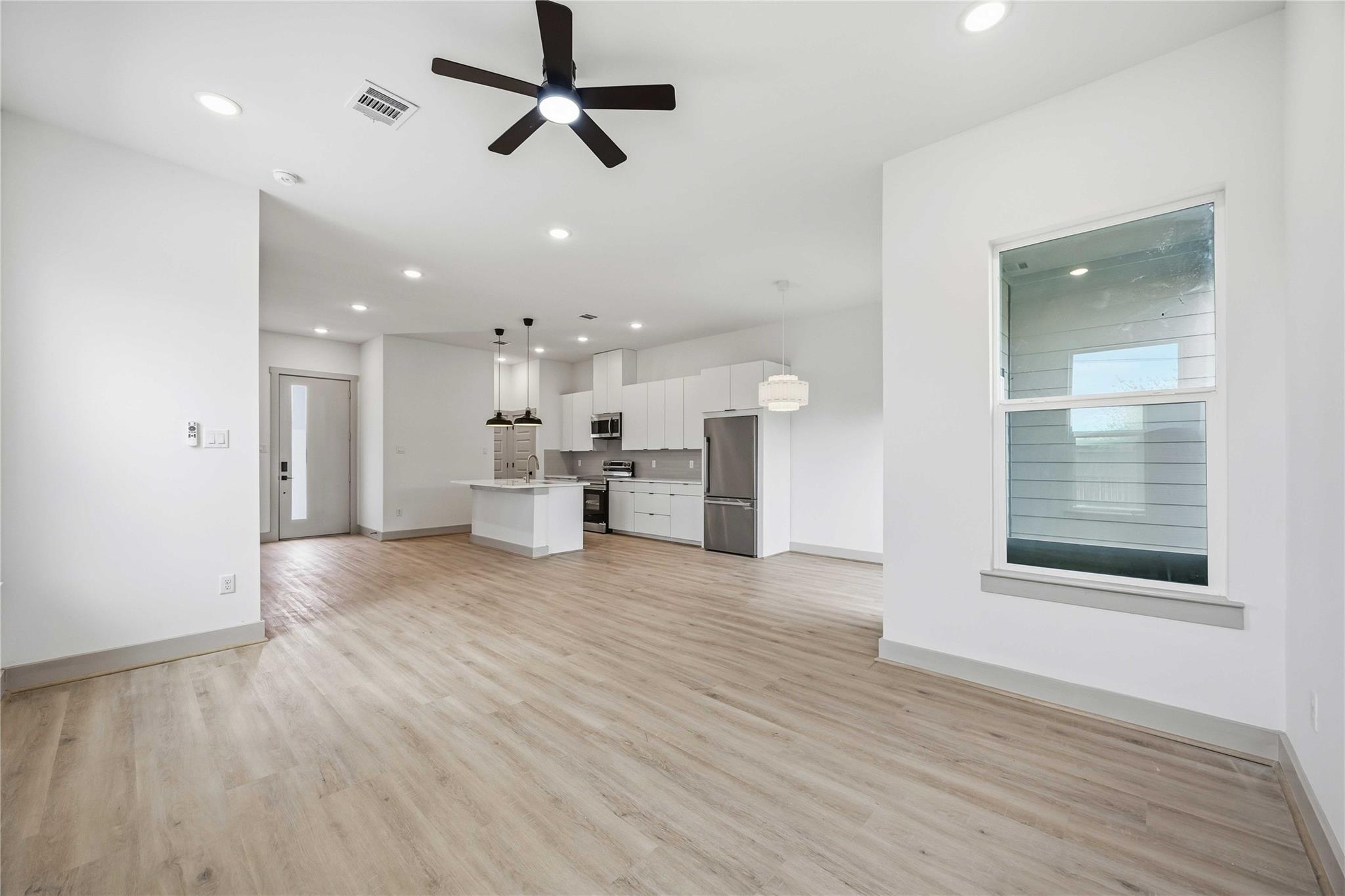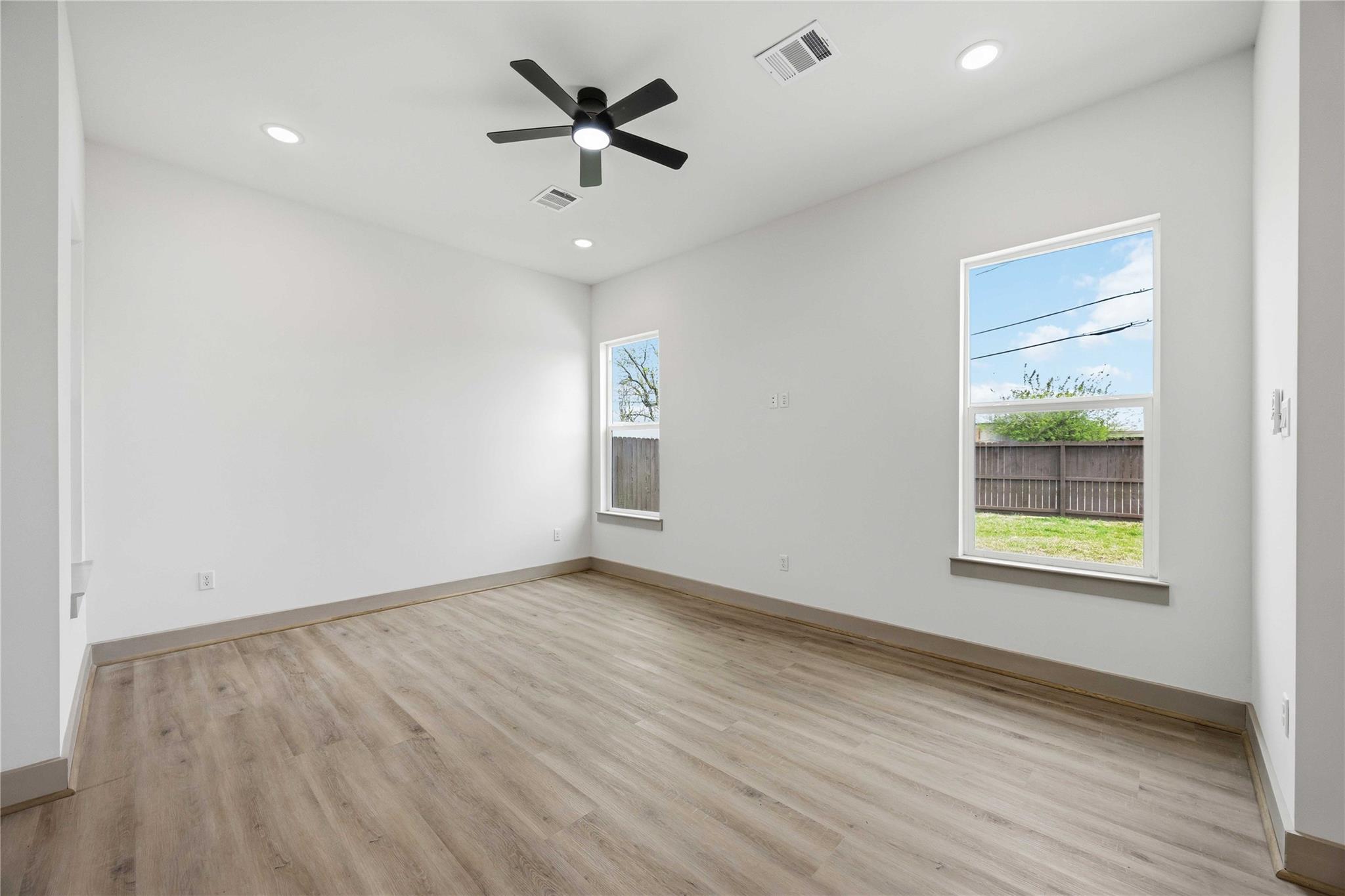 Modern new construction offering 3 bedrooms, 2.5 bathrooms, and 2,768 sqft of thoughtfully designed living space on an approximately 7,000 sqft lot. This gated property features a private driveway and expansive yard space, ideal for outdoor entertaining, pets, or future additions. Inside, the home showcases an open-concept layout with designer lighting, and contemporary finishes throughout. The kitchen features sleek countertops, modern fixtures, and ample space for cooking and entertaining. The spacious primary suite includes a double vanity, glass-enclosed shower, and elegant finishes. Stylish staircase design and large windows provide abundant natural light. Conveniently located near Downtown Houston and the Texas Medical Center, offering easy access to major highways, dining, and city amenities.