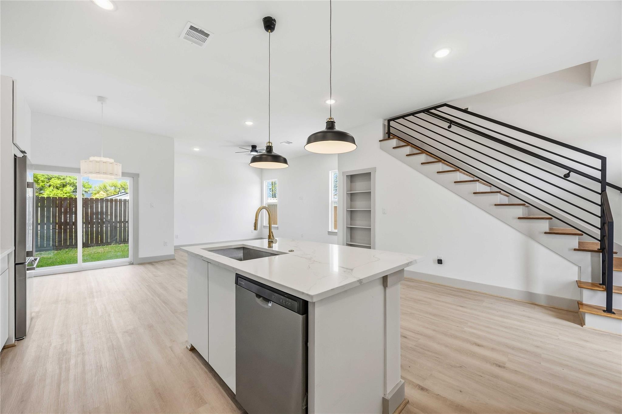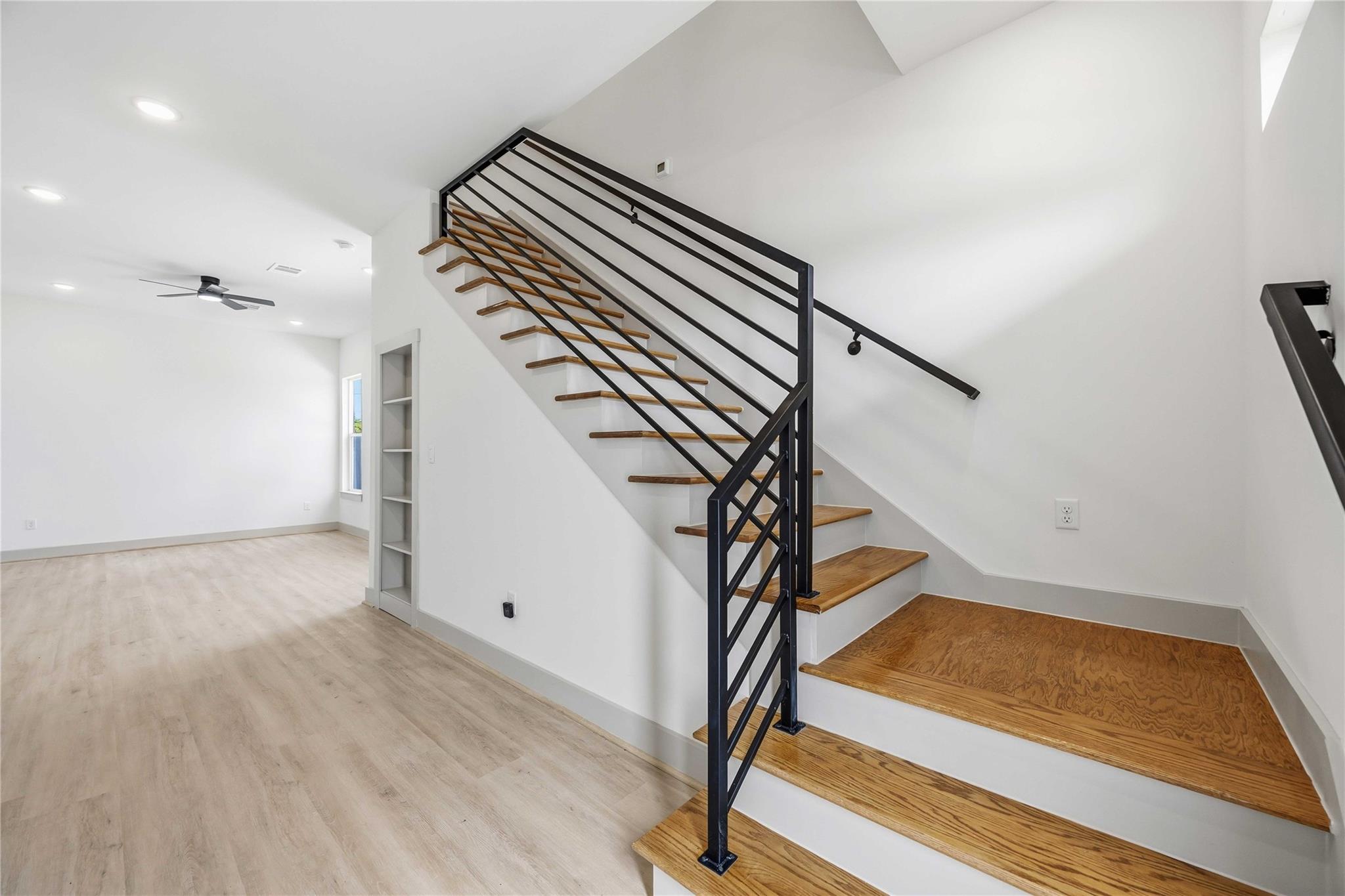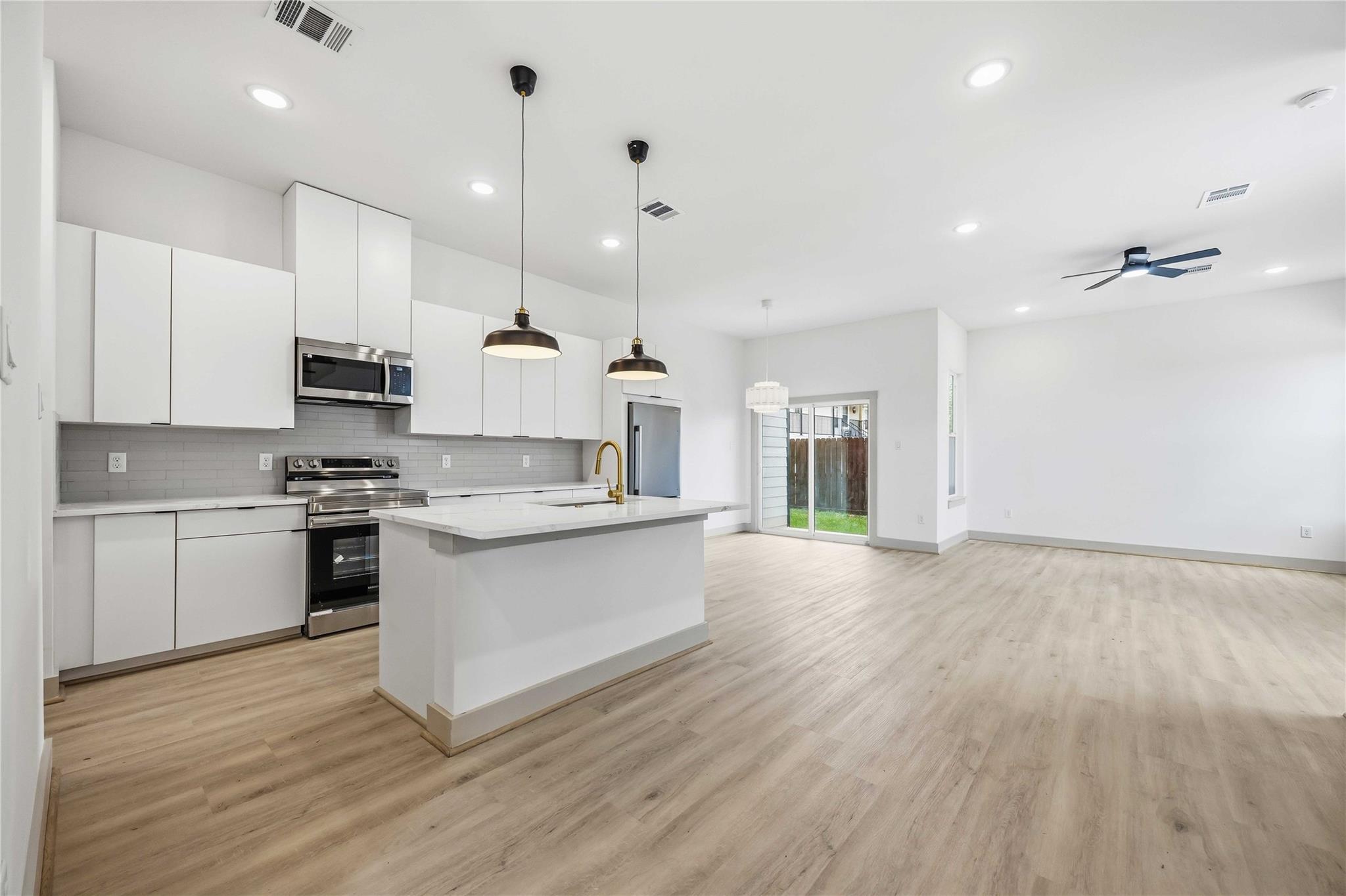 Modern new construction offering 3 bedrooms, 2.5 bathrooms, and 2,768 sqft of thoughtfully designed living space on an approximately 7,000 sqft lot. This gated property features a private driveway and expansive yard space, ideal for outdoor entertaining, pets, or future additions. Inside, the home showcases an open-concept layout with designer lighting, and contemporary finishes throughout. The kitchen features sleek countertops, modern fixtures, and ample space for cooking and entertaining. The spacious primary suite includes a double vanity, glass-enclosed shower, and elegant finishes. Stylish staircase design and large windows provide abundant natural light. Conveniently located near Downtown Houston and the Texas Medical Center, offering easy access to major highways, dining, and city amenities.
