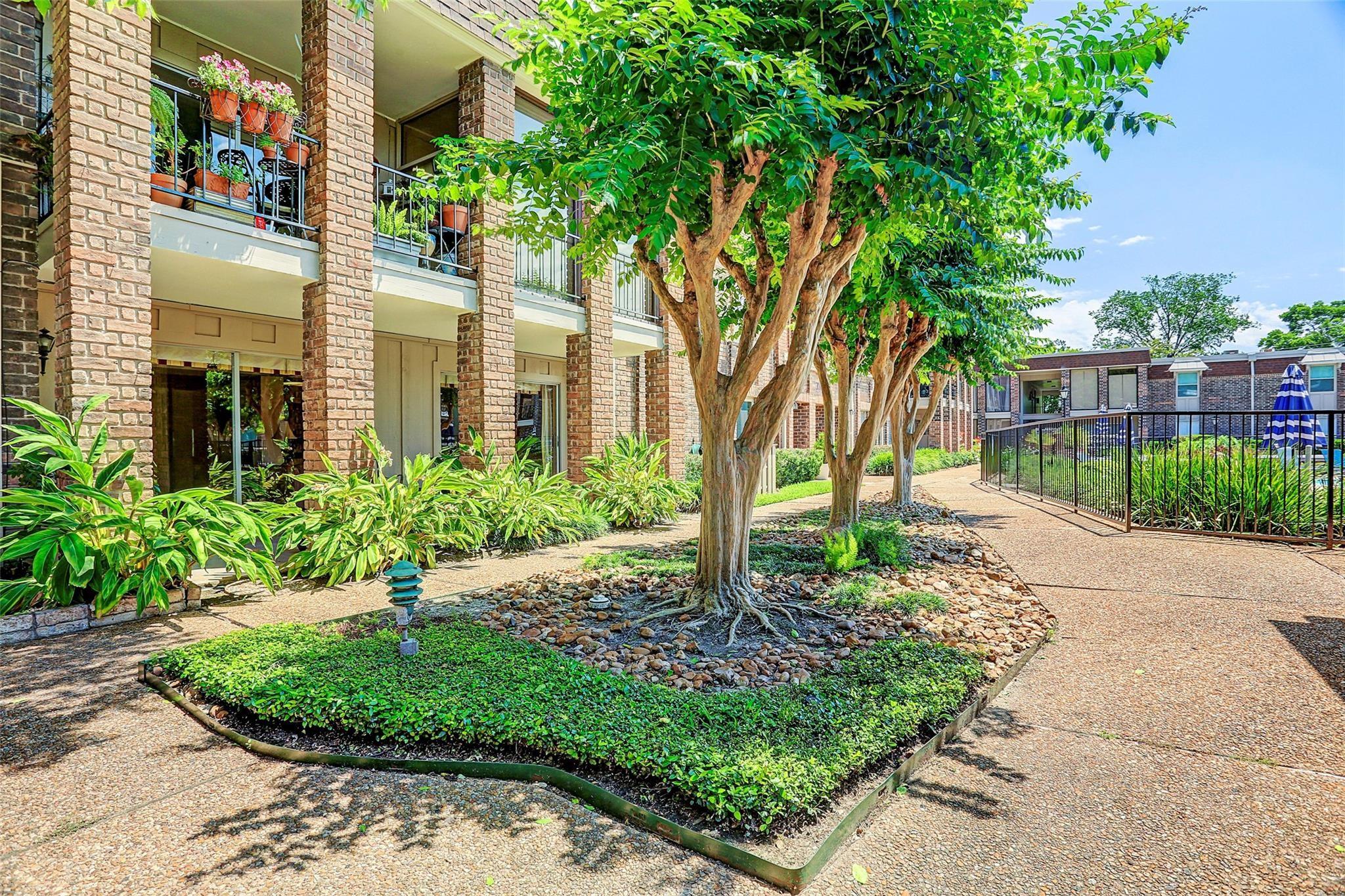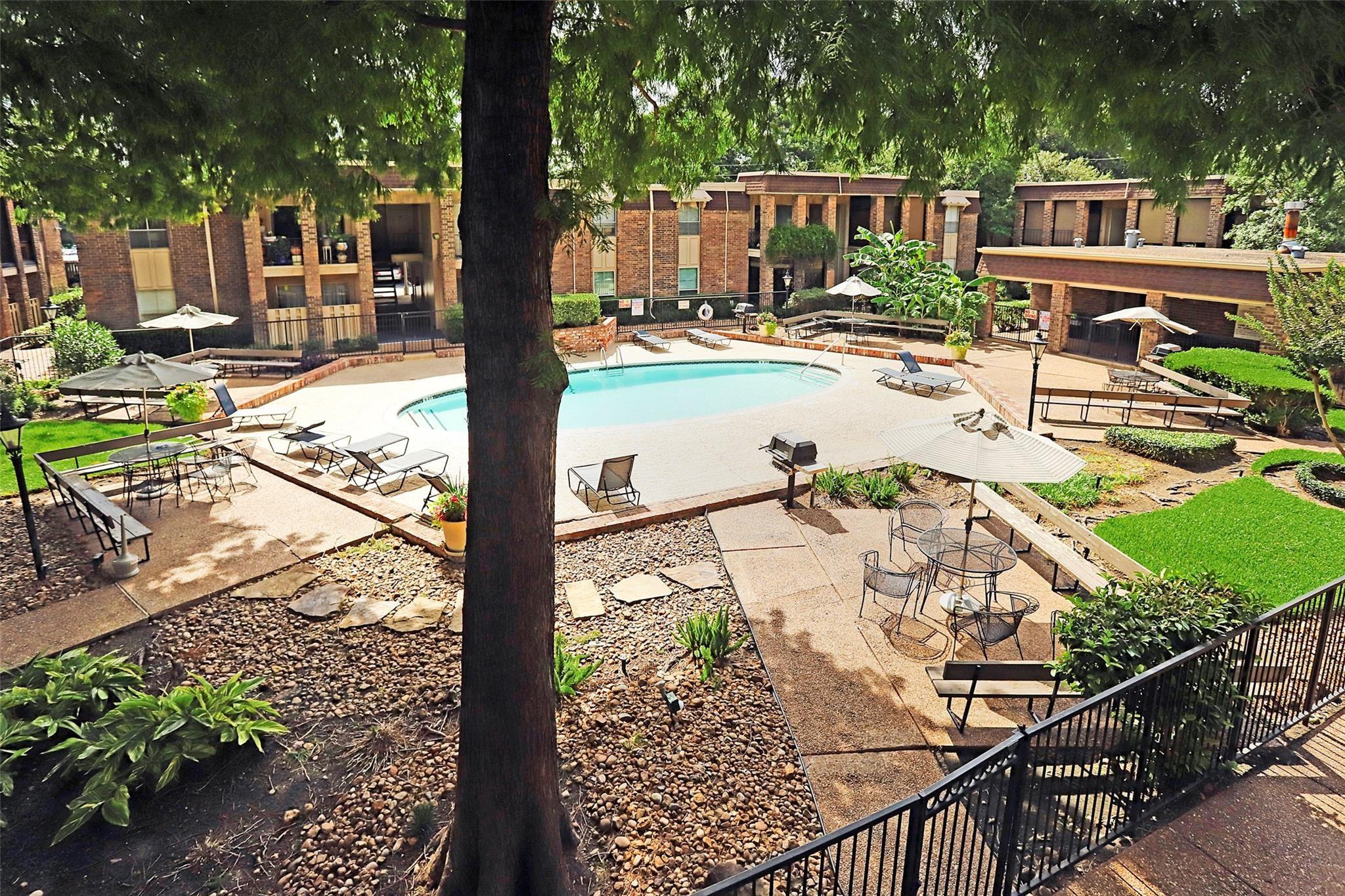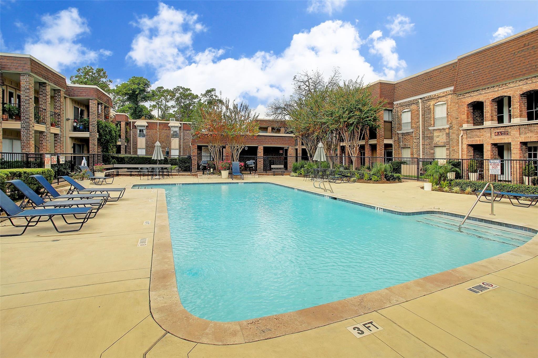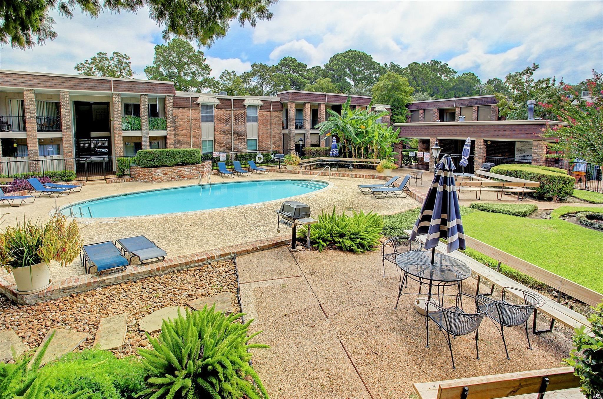 Prime Memorial location, gated with a tasteful and classy Renovation. This corner unit with only one connecting wall has a balcony, double crown, molding, tall baseboards, beautiful chandeliers, engineered hardwood throughout with tiled bath, lovely foyer with bookcases, beautiful window, coverings, complete kitchen renovation, recent appliances in Stone countertops, living room, joints, a spacious home office/study and it has a closet and could be converted into a second bedroom, primary bedroom with double closets and primary bath has lovely stone counter vanity and tub/shower stacked washer and dryer off hallway. Carport has assigned parking and an extra storage closet downstairs easy access to I-10 & 610 Loop there are two pools clubhouse and on site management. Management management fees, cover cable grounds, pool, gates, clubhouse, exterior insurance, electricity, water, sewer, and trash. It’s close to all the memorial amenities and schools, and less than 10 miles from downtown.
