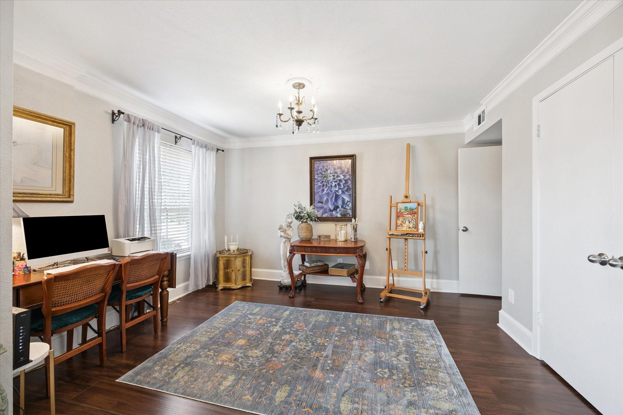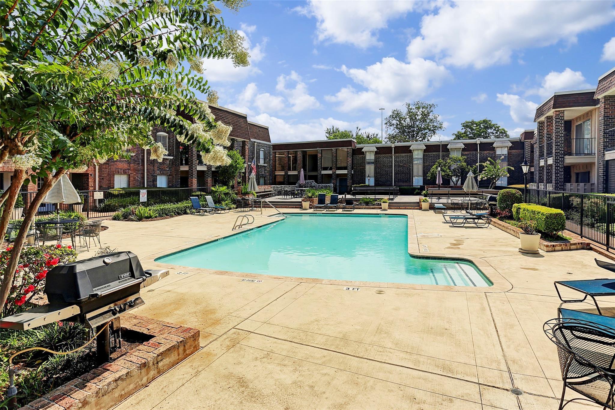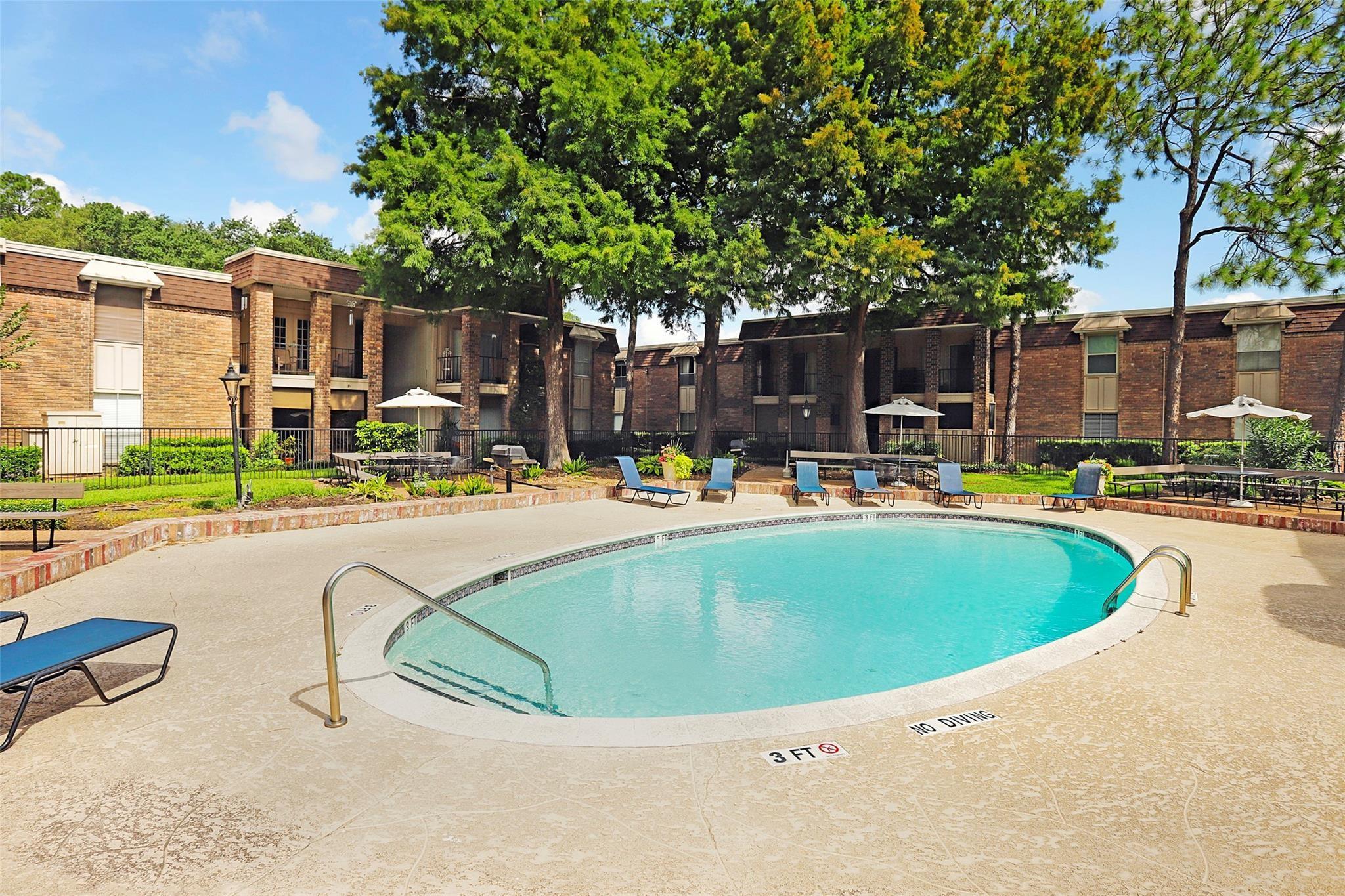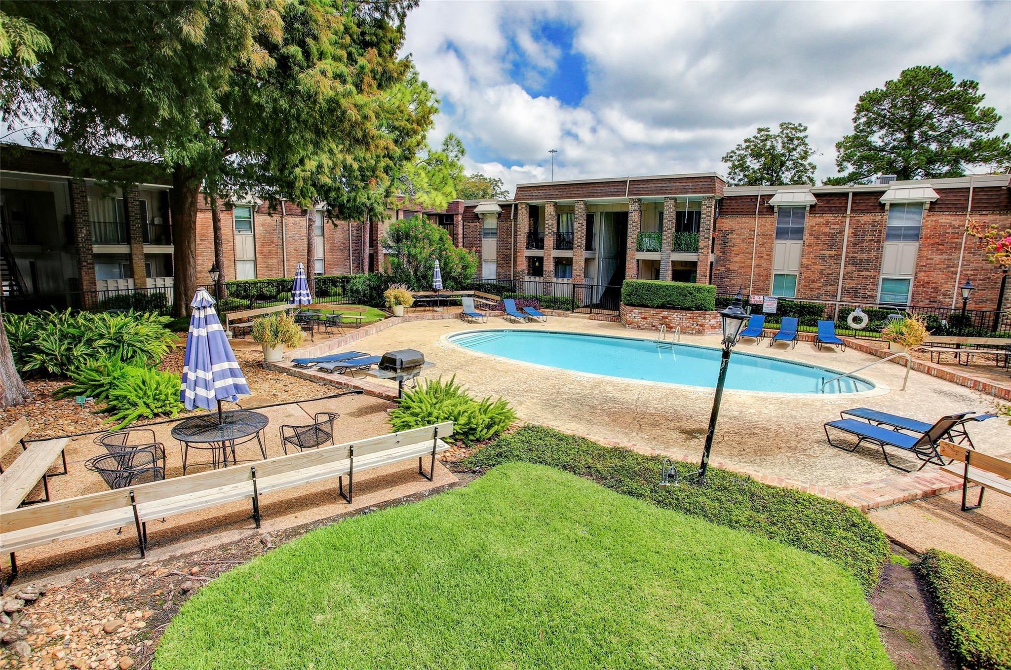 Prime Memorial location, gated with a tasteful and classy Renovation. This corner unit with only one connecting wall has a balcony, double crown, molding, tall baseboards, beautiful chandeliers, engineered hardwood throughout with tiled bath, lovely foyer with bookcases, beautiful window, coverings, complete kitchen renovation, recent appliances in Stone countertops, living room, joints, a spacious home office/study and it has a closet and could be converted into a second bedroom, primary bedroom with double closets and primary bath has lovely stone counter vanity and tub/shower stacked washer and dryer off hallway. Carport has assigned parking and an extra storage closet downstairs easy access to I-10 & 610 Loop there are two pools clubhouse and on site management. Management management fees, cover cable grounds, pool, gates, clubhouse, exterior insurance, electricity, water, sewer, and trash. It’s close to all the memorial amenities and schools, and less than 10 miles from downtown.