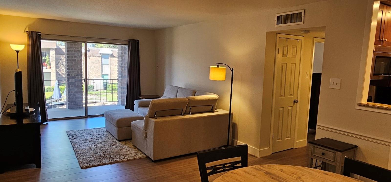 Welcome home to this charming 1 bedroom, 1 bathroom condo located in a sought-after guard-gated community conveniently situated near the Katy Freeway in Houston. Enjoy easy access to shopping, dining, and major commuter routes while still tucked away in a secure, peaceful neighborhood. Step inside to find a bright and functional layout featuring plenty of counter space in the kitchen, perfect for cooking and entertaining. The home comes fully equipped with all appliances included — refrigerator, washer, and dryer, and two covered parking spaces making move-in a breeze. Relax on your private balcony with a beautiful view overlooking the sparkling community pool, creating the perfect spot for morning coffee or evening unwinding. Whether you're a first-time buyer, investor, or looking for low-maintenance living in a prime location, this condo offers comfort, convenience, and lifestyle all in one!