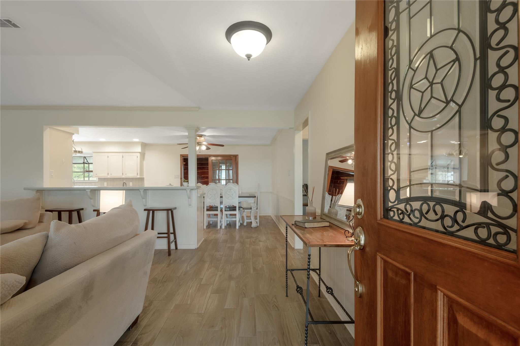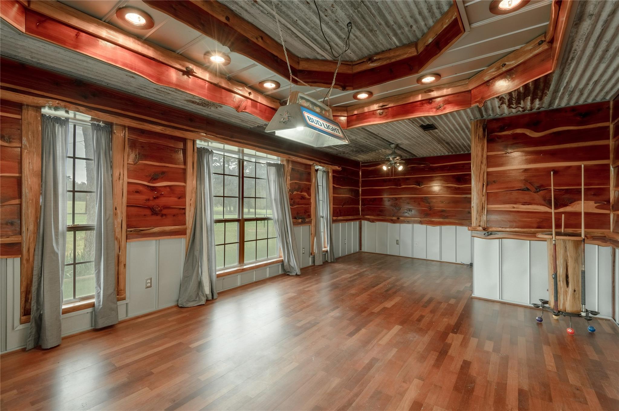 Located in a serene, rural area of Huntsville, this stunning property offers a rare opportunity to experience authentic ranch life. Featuring expansive hay pastures, this land spans 30 acres of unrestricted enjoyment. From a fully stocked pond to a large, multi-use barn, and livestock barn, every detail supports a lifestyle rooted in nature and self-sufficiency. Nestled at the end of a long, private driveway, the 3-bedroom, 2-bath farmhouse sits within a beautifully manicured yard, offering a sense of seclusion. Inside, thoughtful updates were made to blend modern comfort with rustic charm. The inviting living room provides a warm gathering space while the dedicated kitchen is designed for optimal counterspace and ample cabinet storage. A custom game room, adorned in rich cedar and rustic finishes, adds a unique touch of character and entertainment. With its combination of usable land, scenic surroundings, and versatile improvements, this property presents limitless potential!