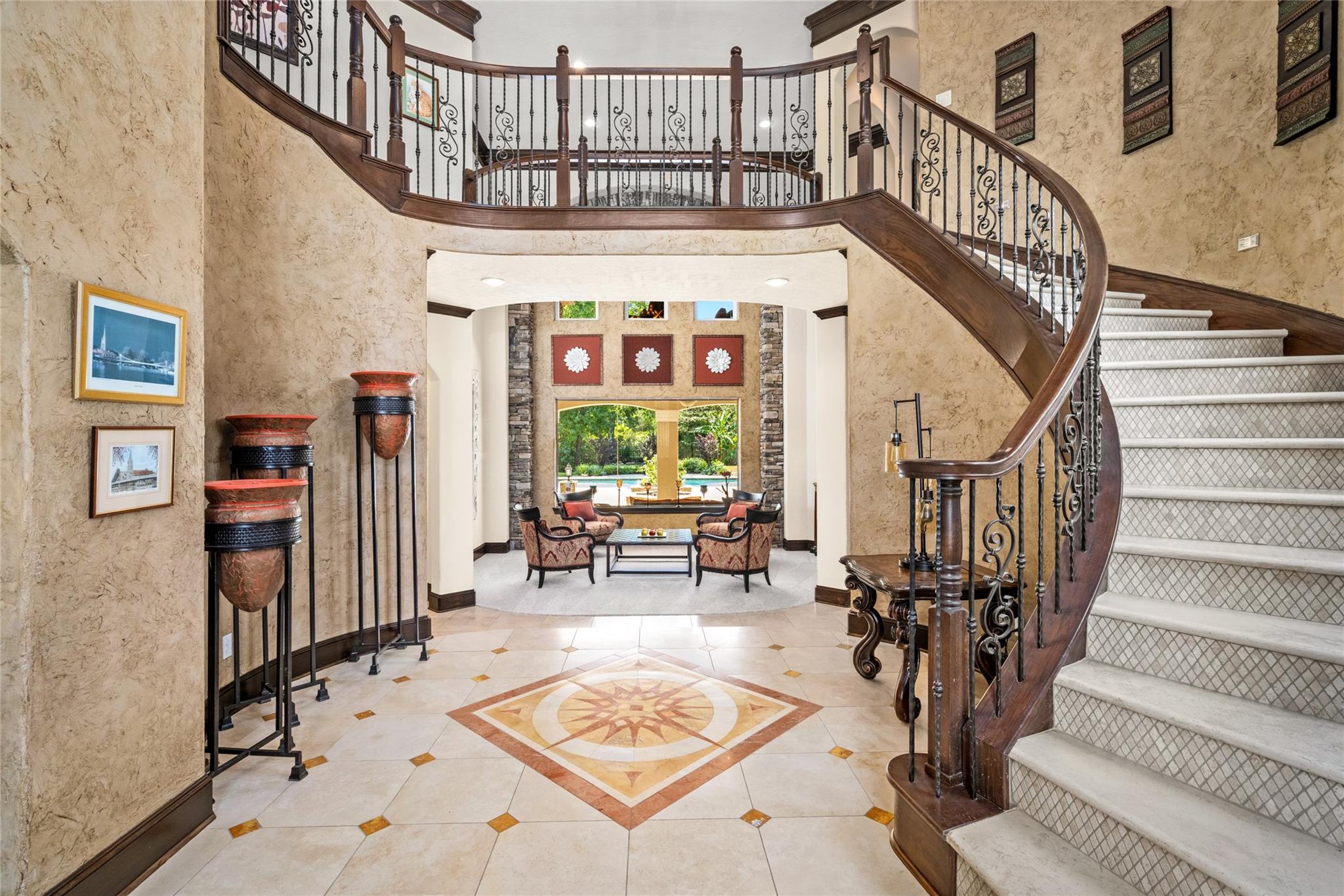InteriorFireplace:3/Gaslog FireplaceFloors:Carpet,Slate,Tile,Travertine,WoodBathroom Description:Full Secondary Bathroom Down,Primary Bath: Double Sinks,Primary Bath: Jetted Tub,Primary Bath: Separate Shower,Secondary Bath(s): Shower Only,Secondary Bath(s): Tub/Shower ComboBedroom Desc:1 Bedroom Down - Not Primary BR,3 Bedrooms Up,En-Suite Bath,Primary Bed - 1st Floor,Walk-In ClosetKitchen Desc:Breakfast Bar,Island w/o Cooktop,Kitchen open to Family Room,Pantry,Second Sink,Walk-in PantryRoom Description:Entry,Family Room,Formal Dining,Formal Living,Gameroom Up,Guest Suite,Home Office/Study,Media,Utility Room in House,Wine RoomHeating:Central GasCooling:Central ElectricConnections:Electric Dryer Connections,Gas Dryer Connections,Washer ConnectionsDishwasher:YesDisposal:YesCompactor:NoMicrowave:YesRange:Gas CooktopOven:Double Oven,Electric OvenIce Maker:NoEnergy Feature:Attic Vents,Ceiling Fans,Digital Program Thermostat,Generator,Radiant Attic BarrierInterior:2 Staircases,Crown Molding,Formal Entry/Foyer,High Ceiling,Refrigerator Included,Spa/Hot Tub,Vaulted Ceiling,Wine/Beverage Fridge