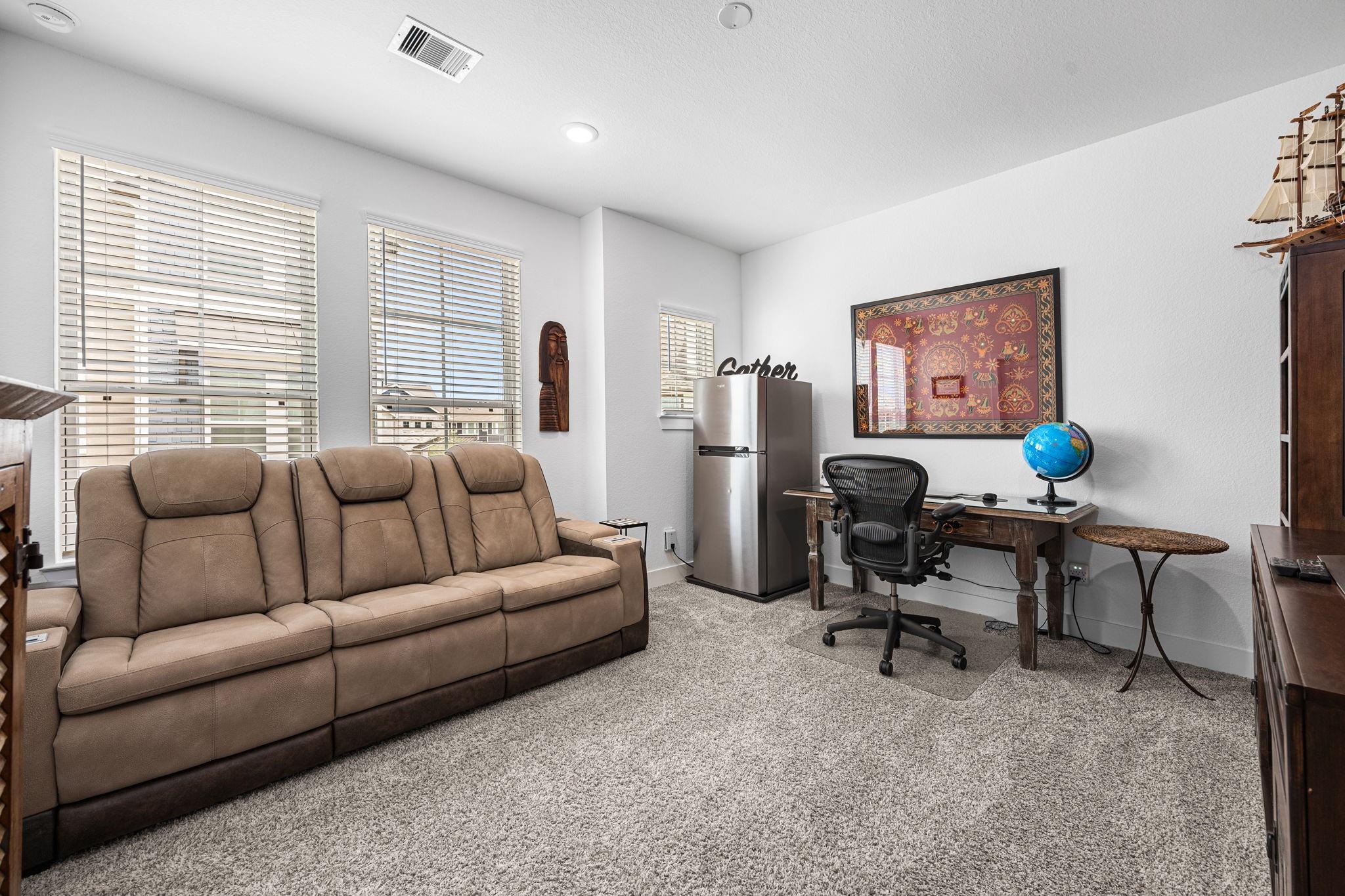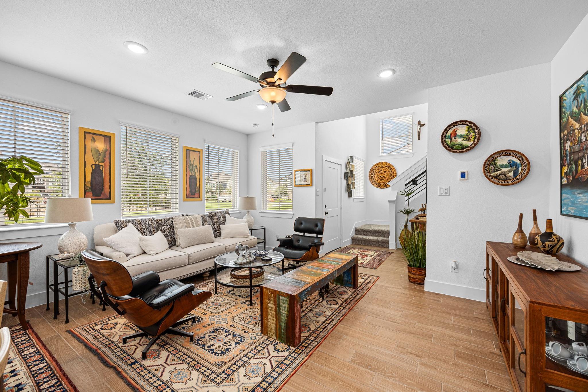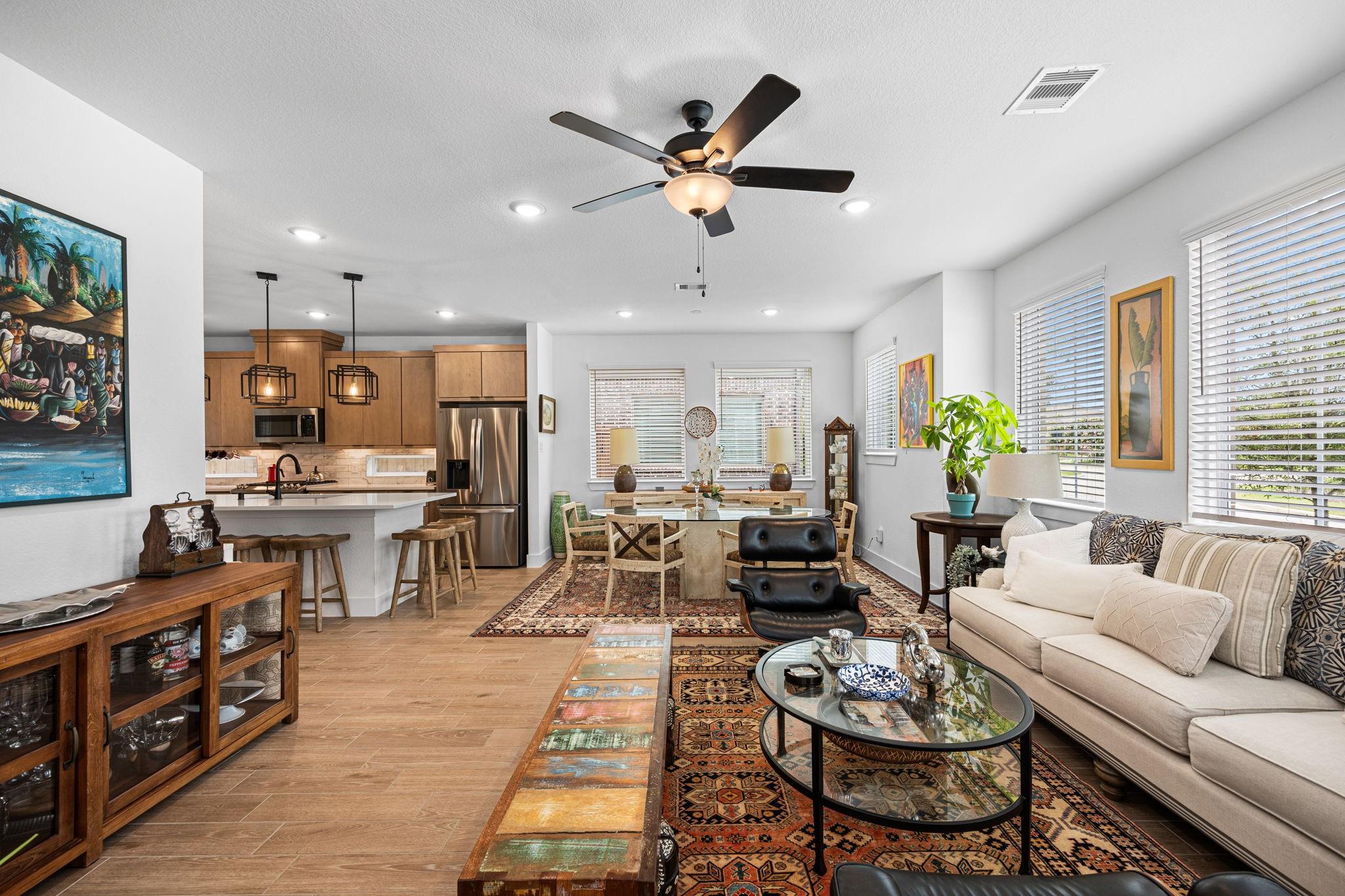 Timing is everything--Seller's loss is YOUR rare chance to snap up a property for LESS than the original purchase price! Constructed in 2024, this Chesmar home is better than new! Boasting all of the same energy efficient construction of a new build, this home benefits from owner upgrades including water softener, professional landscaping, epoxy patio and garage flooring, and no ongoing construction in this section of the neighborhood! Nestled in the heart of Elyson by Newland in a quiet enclave of 4 homes with a gorgeous paver drive, this property benefits from the ideal location overlooking the community green space and neighborhood garden beds surrounded by a walking path. The open concept first floor is dedicated to entertaining, with spacious gathering areas and a kitchen with finishes that rival those found in much higher price points. Upstairs, you will find the private spaces of the home, with a second-floor lounge area, balcony, and 3 generously-sized bedrooms.
