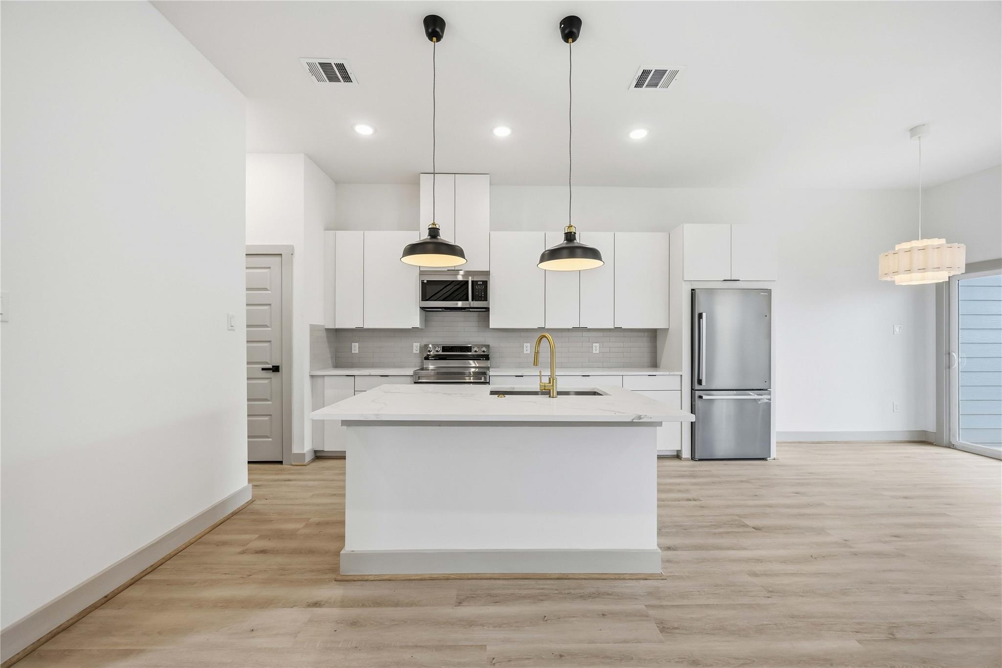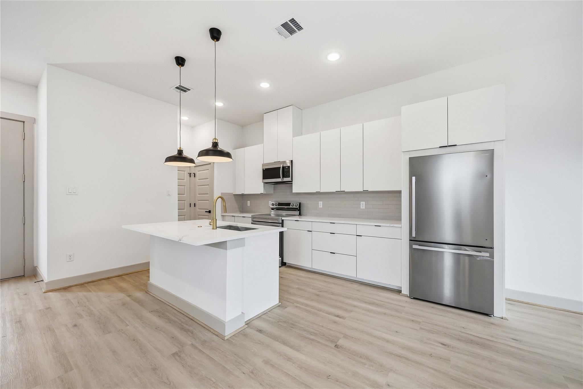 Modern new construction offering 3 bedrooms, 2.5 bathrooms, and 2,768 sqft of thoughtfully designed living space on an 6,000+ sqft lot. This gated property features a private driveway and expansive yard space, ideal for outdoor entertaining, pets, or future additions. Inside, the home showcases an open-concept layout with designer lighting, and contemporary finishes throughout. The kitchen features sleek countertops, modern fixtures, and ample space for cooking and entertaining. The spacious primary suite includes a double vanity, glass-enclosed shower, and elegant finishes. Stylish staircase design and large windows provide abundant natural light. Conveniently located near Downtown Houston and the Texas Medical Center, offering easy access to major highways, dining, and city amenities.